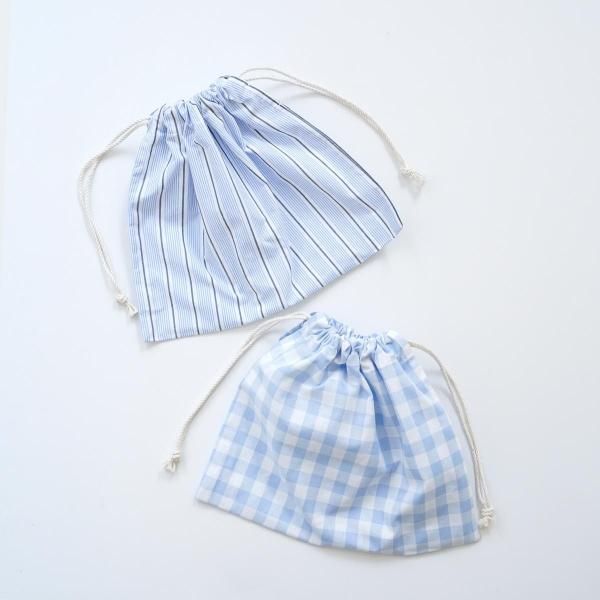 CINQ/巾着(ライトブルー・S)(ストライプ・ギンガムチェック)1,870円(税込)