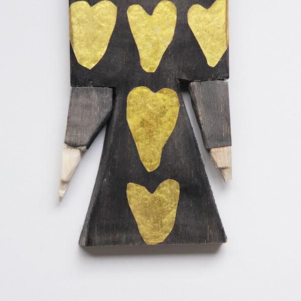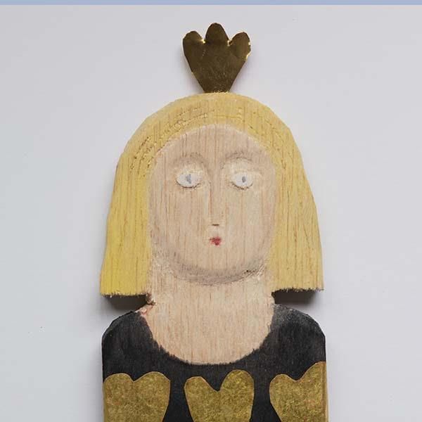 現在は岐阜県多治見を拠点に作家として活動されている、菅祐子さん。柔らかな彫刻に柔らかな色彩が施された作品からは、モチーフに対しての敬意や愛情を感じます。 こちらはブロンズヘアの女の子のオブジェ。身につけているお洋服や髪飾りが特徴的です。 size : W9cm H25cm material : wood