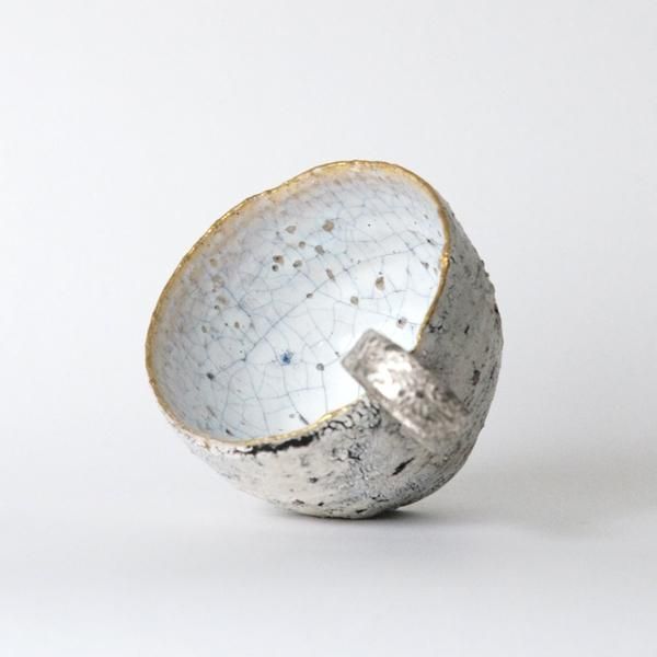 沖縄の美術学校でものづくりを学ばれ、愛知県の瀬戸で制作活動を行う片瀬和宏さん。鋳込みの成形と、沖縄からの感覚的な手捻りとの相反する二つの技法で作品を作られています。 こちらは持ち手に銀、縁取りに金を使用したカップ&ソーサ。 落ち着いた光沢が派手すぎない印象です。 一見持ちにくそうですが、実際に持ってみるととても持ちやすく、しっくりと手に馴染みます。 毎日のコーヒタイムが特別な時間になりそうですね。 size:カップ φ約9×約h6cm/ソーサー φ約15×約h2,5cm お取り扱い店舗・・・ dieci207(南船場店)