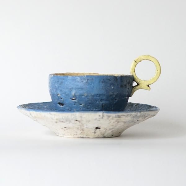 沖縄の美術学校でものづくりを学ばれ、愛知県の瀬戸で制作活動を行う片瀬和宏さん。鋳込みの成形と、沖縄からの感覚的な手捻りとの相反する二つの技法で作品を作られています。 こちらはカップ&ソーサー。 ザラザラとした表面と、大胆に貫入の入ったツルツルした内側のコントラストがとても面白い作品です。 一見持ちにくそうですが、実際に持ってみるととても持ちやすく、しっくりと手に馴染みます。 毎日のコーヒタイムが特別な時間になりそうですね。 カラフルなカラーリングも素敵です。 size:カップ φ約9×約h6cm/ソーサー φ約15×約h2,5cm お取り扱い店舗・・・ dieci207(南船場店)
