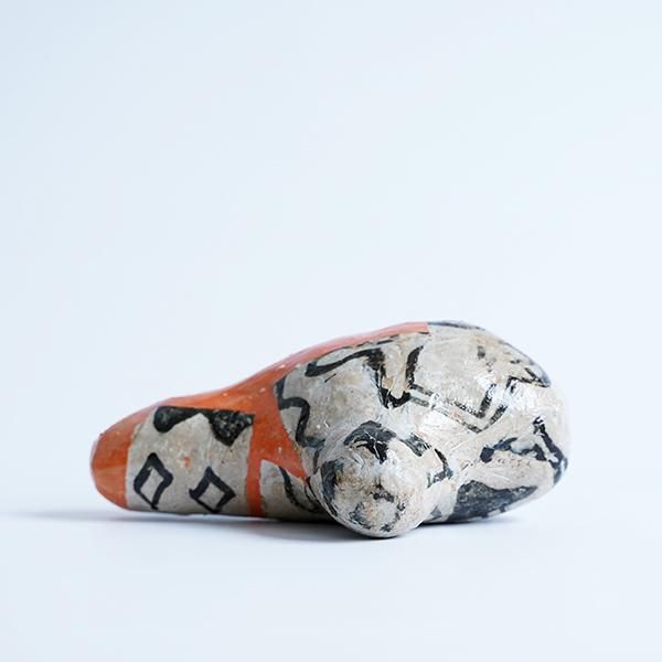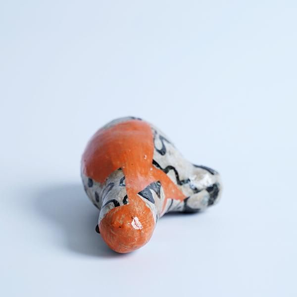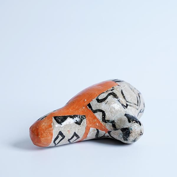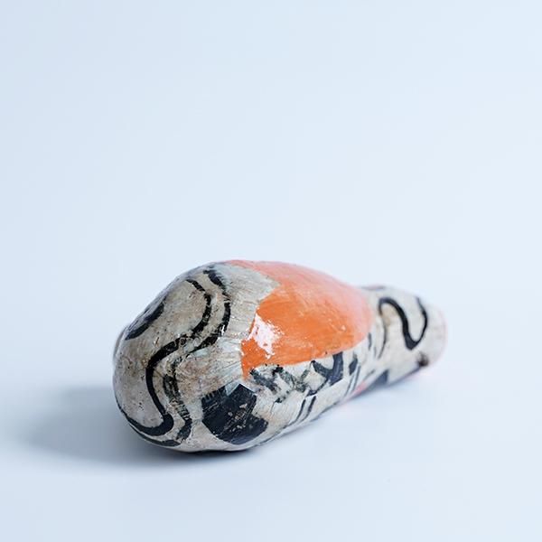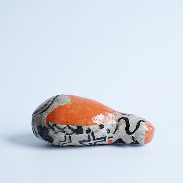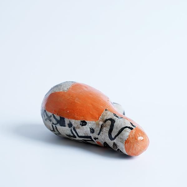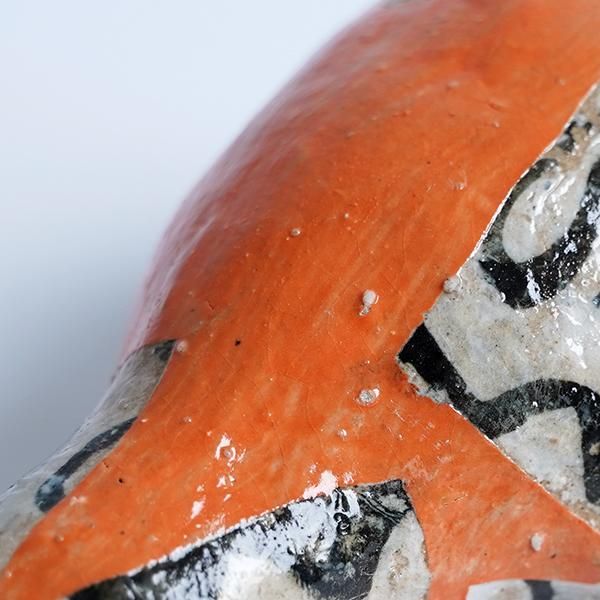 現代作家のキムホノ (金憲鎬)さん。1958年に愛知県瀬戸市を拠点に幅広い作品を生み出されています。キムホノ さんならではの造形や色彩の面白さでたくさんの方を魅了しています。抹茶碗からベース、マグから大きな壺まで多岐に渡る作品はどれも個性的です。 こちらは艶感のある色味が目を引く壁掛けのオブジェです。 鮮やかなオレンジ色に描かれた模様、キムホノさんの魅力をお楽しみください。 size:W17.5cm H7.5cm 取り扱い店舗...dieci kyutaro 全て一点もののためお取り置き等はできかねます。ご了承くださいませ。