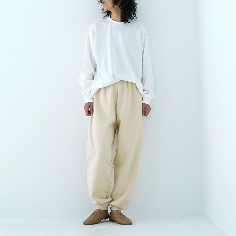 2020年秋冬コレクションよりクリエイティブディレクターの杉原淳史、アートディレクターの吉村雄大によってスタート。「モードと日常を繋ぐ美しい服」をコンセプトに、立体的なフォルムを追求されています。独自開発した生地を用いて、メゾンで培った立体裁断によるパターンメイキングを採用。ファクトリーブランドのクオリティとメゾンブランドの技術を掛け合わせてクリエーションを行っています。 こちらはリサイクル天竺長袖クルーネック。 新開発のリサイクルコットンの天竺素材を使用しています。 適度なシャリ感と柔らかさがあり、とても着心地が良いアイテムです。 透け感も少なく、一枚での着用はもちろんインナーとしても着用可能で使い回ししやすいカットソーです。 23AW size:3/4/5 3: 肩幅53cm、身幅55.5cm、着丈68cm、袖丈59cm 4: 肩幅55.5cm、身幅57cm、着丈70cm、袖丈60cm 5: 肩幅58.5cm、身幅60cm、着丈71cm、袖丈61cm color:WHITE,BLACK material: コットン100% model:173cm(サイズ3着用) 163cm(サイズ3着用) 通常価格 14,000円+税→50%OFF 7,000円+税 取扱い店舗…dieci芝川ビル店