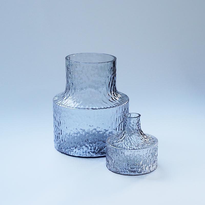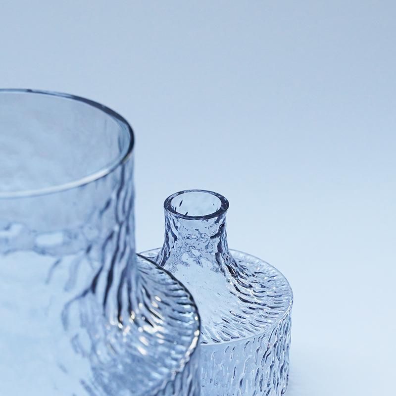 Skruf社は、スウェーデン・スモーランド地方で1897年より製造を続けるガラスメーカーです。すべてハンドメイドで作られるSkruf社のグラスウェアは、吹きガラスによる僅かな輪郭のゆらぎや程よい厚みが、すっきりしたデザインの中に温かみを感じられます。デザインはCarina Seth Anderssonが手がけています。 こちらは"KOLONN"シリーズの新色グレーカラーです。 表面のデザインが美しく、花器としてはもちろんオブジェとしてもとても美しいベースです。 Carina Seth Andersson(カリーナ セス アンダーソン)はグスタフスベリにアトリエを構えるデザイナーでありガラス作家。ストックホルム美術工芸デザイン大学ではテキスタイルを学び、その後ガラススクールへ。1点ものと呼ばれるハンドクラフトを手がける一方でマリメッコなど企業との共同によるマスプロダクトでも活躍しています。彼女のものづくりのプロセスはとてもシンプルでドローイングや切り貼りで実際のサイズ感でのイメージ作りにこだわって制作が進んでいきます。彼女の大半はモノクロームの作品となっており、色彩よりもプロポーションやフォルムの美しさを大切にしています。 size : Mサイズ φ11cm W17cm H21cm 取り扱い店舗…dieci天神橋店