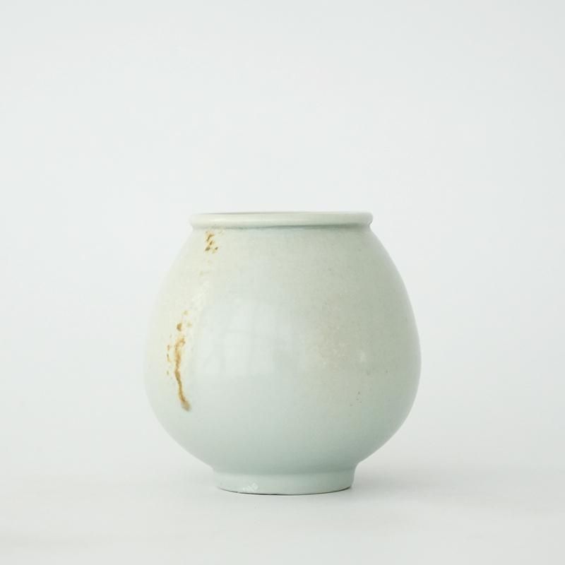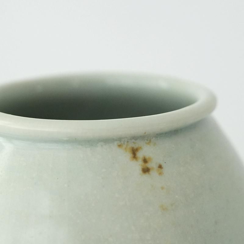 益子にてご夫婦で作陶活動を行われている郡司庸久さん・慶子さん。3代続けて今も現役という窯で焼き上げられた器は、どれも古い民芸品のようですが今の時代にぴったりと寄り添う新しい感覚があります。優しいデザインとお色で使う私たちの心が豊かになるそんな器たちです。郡司さんの作る器はとてもおおらかです。少し歪みがあったり、釉薬のかかり方にも一つ一つ個性があります。 大量生産では出すことの出来ない、手作りならではの良さをお楽しみください。 薪窯で作られたこちらの花器。 涼しげなブルーグレーと、灰がかかった部分の茶色の対比が目を引きます。 ころんとした愛らしい形で、お花はもちろん枝物などを生けても。 size:約φ12cm× H約13cm *手作りの為、お色に個体差がございます。手作りの良さとしてお楽しみ下さいませ。 *作品に見られる釉薬に入るヒビ模様は貫入と言って、作品の持ち味となります。衝撃によるひび割れではなく不良品ではございません。是非たくさん使って美しい貫入の景色を育ててください。 *本体釉薬に小さな気泡や斑点が見られることがございます。製作する過程で出来るものでございます。ご了承くださいませ。 取り扱い店舗・・・dieci kyutaro店