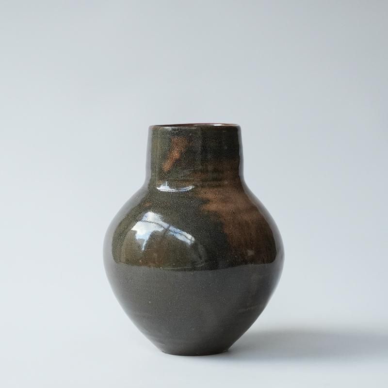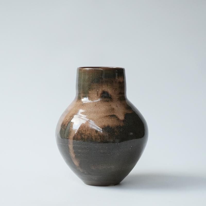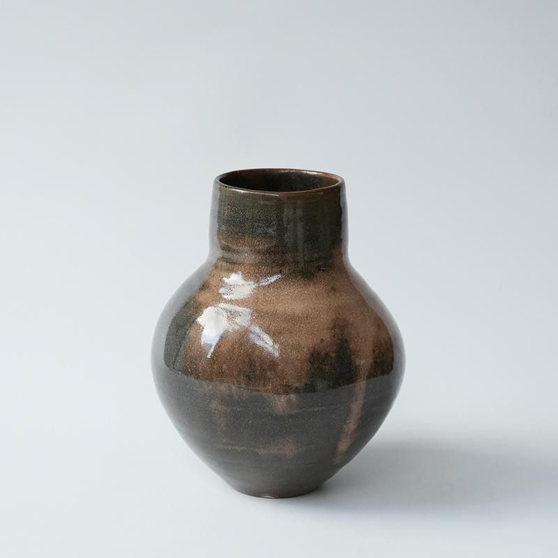 益子にてご夫婦で作陶活動を行われている郡司庸久さん・慶子さん。3代続けて今も現役という窯で焼き上げられた器は、どれも古い民芸品のようですが今の時代にぴったりと寄り添う新しい感覚があります。優しいデザインとお色で使う私たちの心が豊かになるそんな器たちです。郡司さんの作る器はとてもおおらかです。少し歪みがあったり、釉薬のかかり方にも一つ一つ個性があります。 大量生産では出すことの出来ない、手作りならではの良さをお楽しみください。 手仕事の温かみを感じるおおらかなフォルムの花器。 釉薬の濃淡が抽象的な模様のようにも見えます。 お花や枝物を生けても。 size:約φ14cm× H約20cm *手作りの為、お色に個体差がございます。手作りの良さとしてお楽しみ下さいませ。 *作品に見られる釉薬に入るヒビ模様は貫入と言って、作品の持ち味となります。衝撃によるひび割れではなく不良品ではございません。是非たくさん使って美しい貫入の景色を育ててください。 *本体釉薬に小さな気泡や斑点が見られることがございます。製作する過程で出来るものでございます。ご了承くださいませ。 取り扱い店舗・・・dieci kyutaro店