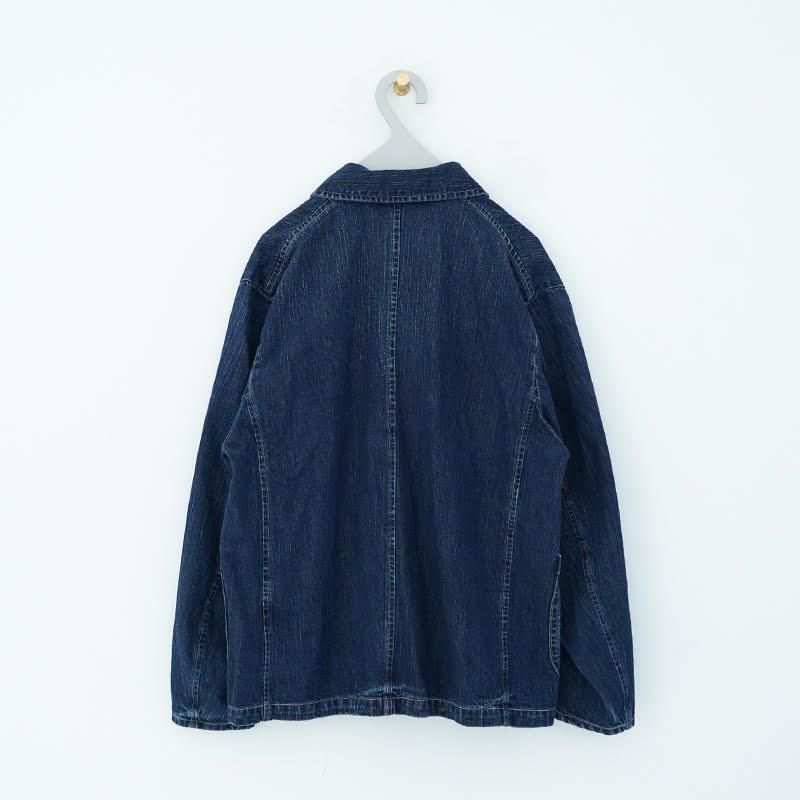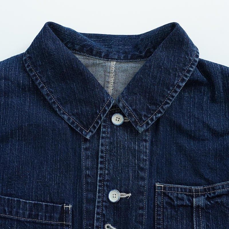 一つ多めに空けられたボタンホールはフレンチワークウェアのディテールを踏襲した懐中時計用の穴ですが、何かピンを留めたり他のアレンジをして楽しむのもおすすめです。