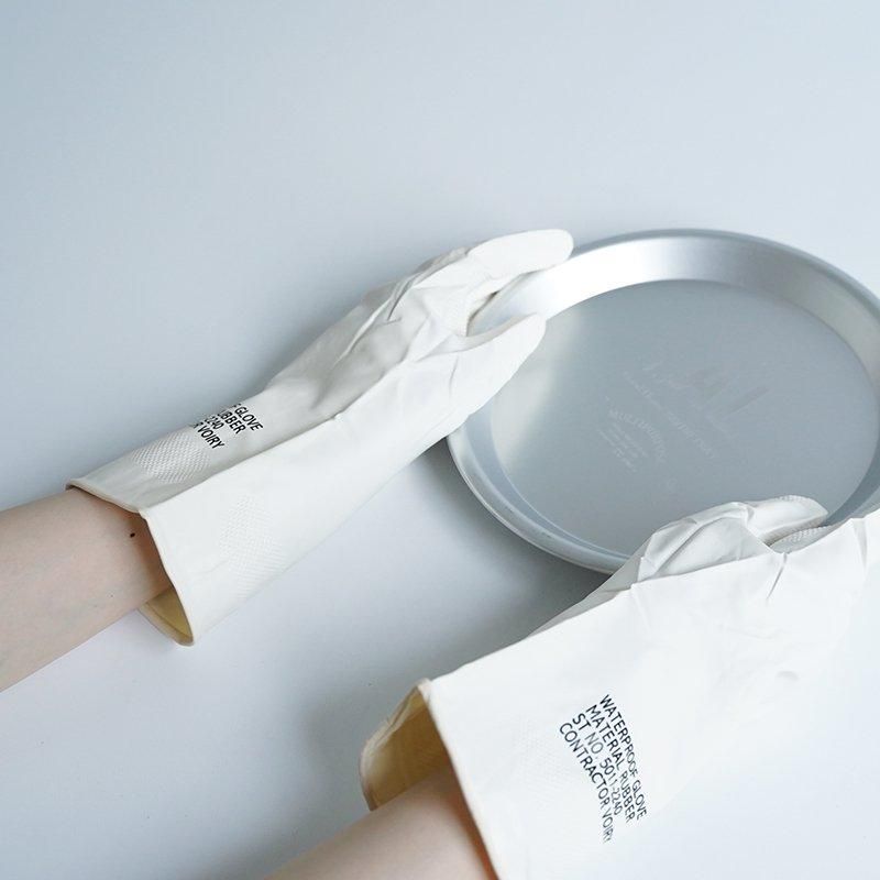 ありそうでなかったものや、ちょっと懐かしく思えるオリジナルウェアを提案するVOIRY。 こちらはRUBBER GLOVES-C、オリジナルのゴム手袋です。 薄手で弾力性のあるニトリルゴム製の手袋にミリタリー調のオリジナルプリントが施されています。 手元がおしゃれだと日々の水仕事もはかどりそうですね。 また、手の平から指先まで滑り止めが施されていることや、袖の濡れない十分な長さ等、実用性にも長けています。 size : FREE H最長部30cm×W最長部13.5cm 取り扱い店舗…dieci天神橋店