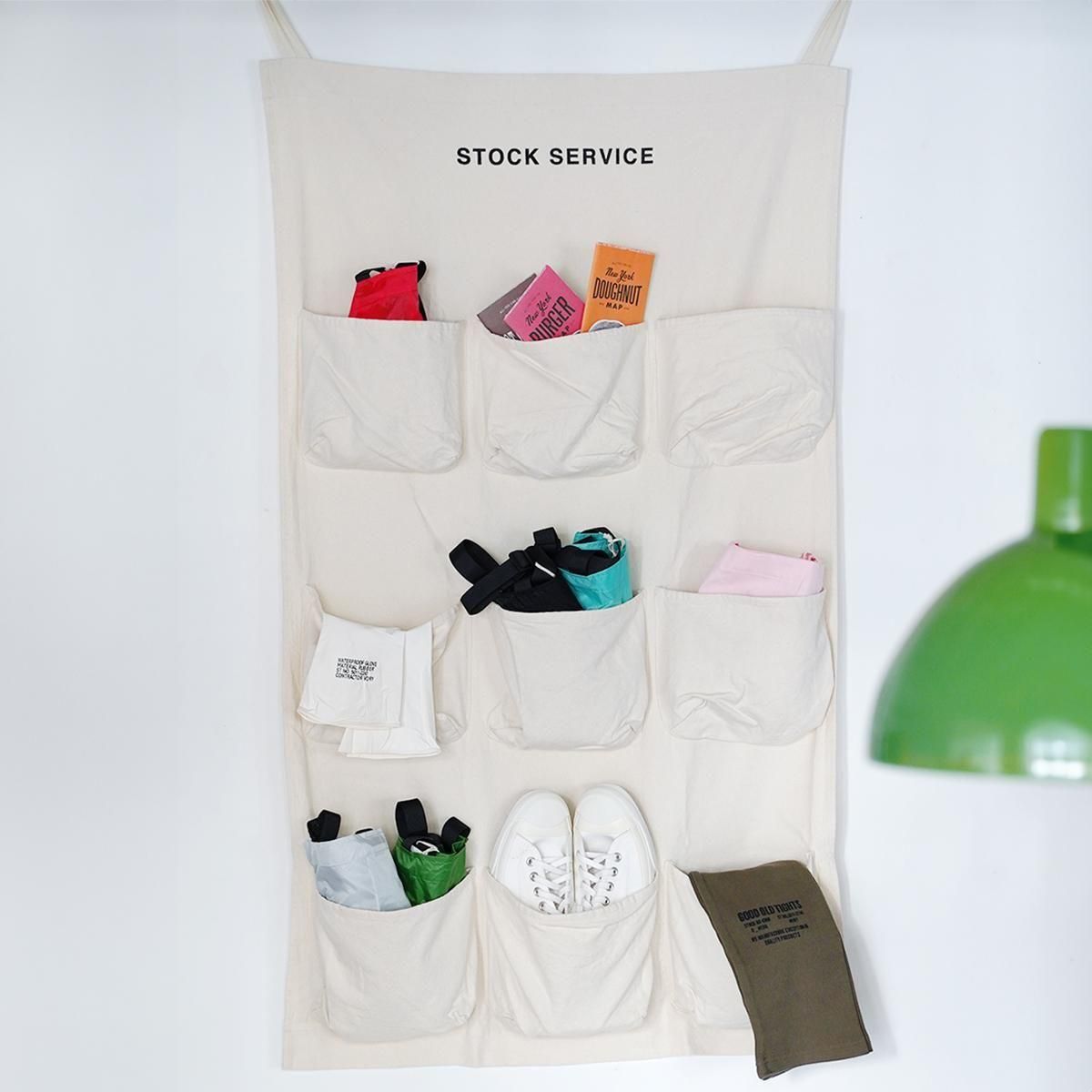 ありそうでなかったものや、ちょっと懐かしく思えるオリジナルウェアを提案するVOIRY。 こちらはSTOCK SERVICE POCKETです。 丈夫なコットンキャンバス生地で作られたウォールポケットのタイプは6 pocketと9 pocketの2種類で、お部屋や壁のスペースによってお選びいただけます。 VOIRYさんは溢れるスニーカーを収納してインテリアにされているそう。 ガレージで工具入れにしたり、お子様のお洋服やバッグなどを入れるスペースにするのも良いですね。 シンプルなデザインを生かして自由にカスタマイズされるのもひとつの楽しみです。 size : 6 pocket H650 × W740mm (5,280円) 9 pocket H1250 × W740mm (7,150円) material : cotton 100% 取り扱い店舗…dieci天神橋店