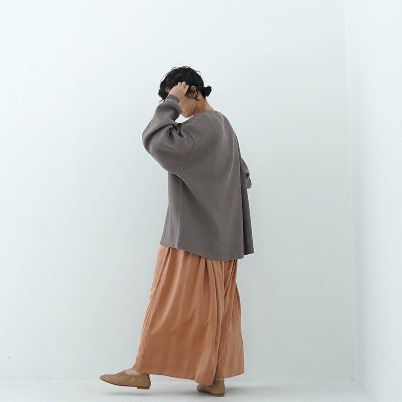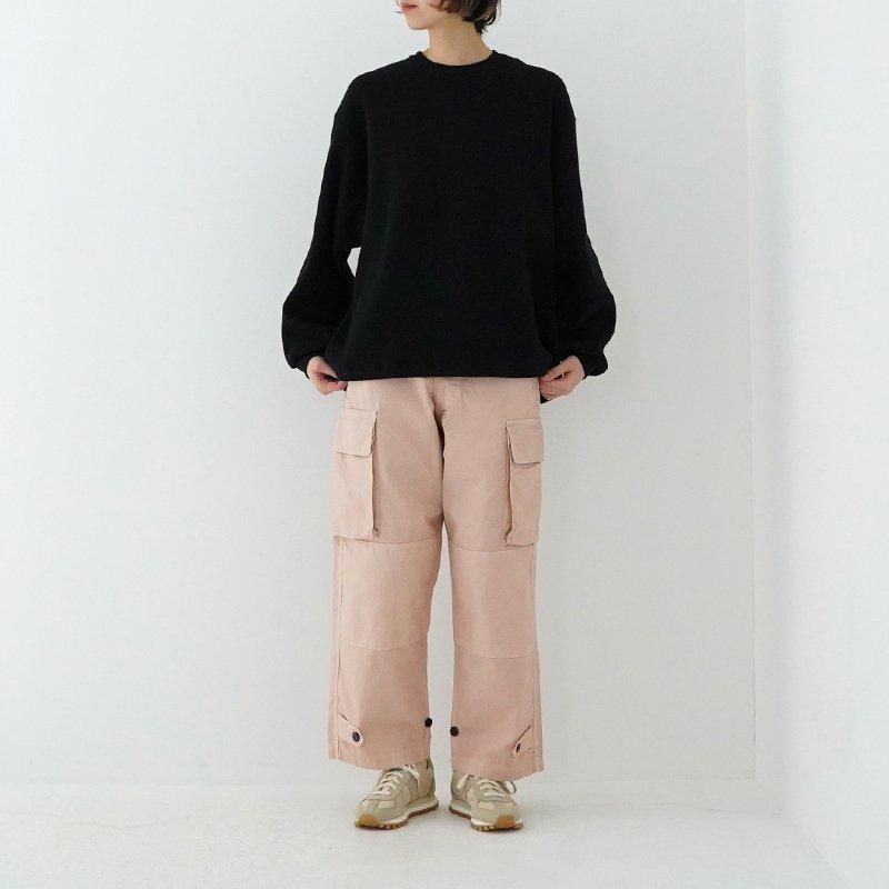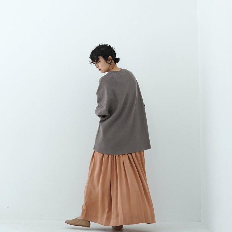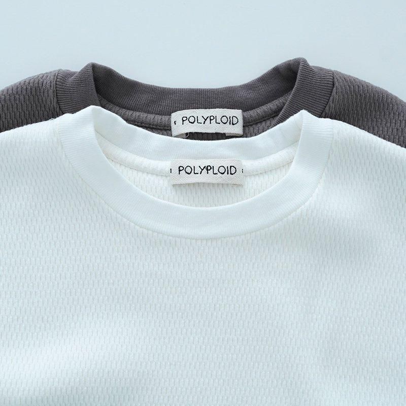 ポリプロイド(POLYPLOID)は、2017年にドイツ・ベルリンにてイゾルデ・オーギュスト・リッチリー(Isolde Auguste Richly)により設立。2018-19年秋冬コレクションにてデビュー。ブランド名のポリプロイドは化学用語で、「多倍数体」を意味する。3種類の異なる素材と色で展開することで、プロダクトに奥行きや広がりをもたらす実験的アプローチを試みている。生産はドイツおよび日本で行っている。ヨーロッパのマテリアルはドイツで縫製され、日本のマテリアルは日本で作られる。 ヘビーウエイトのダブルフェイスサーマル生地を使用したロングスリーブTシャツです。 凹凸のある生地に程よい厚みがあるのでスウエット感覚で楽しんでいただけます。 全体的にゆったりとしたパターンですが、袖口はキュッと絞られ、裾も前後差があるので華奢な方や小柄な方でも着用しやすく、着る方の体格を選ばないカットソーです。 日本製 24AW size:1,3 1:着丈62cm(後ろ身頃67cm),身幅64cm,肩幅54cm, 袖丈57cm 3:着丈72cm(後ろ身頃75cm),身幅70cm,肩幅58m, 袖丈58.5cm color:BLACK,GRAY Material:COTTON 100% model:173cm(BLACK #3着用) 170cm(BLACK #1着用) 163cm(GRAY #3着用) 取り扱い店舗・・・dieci kyutaro店2F
