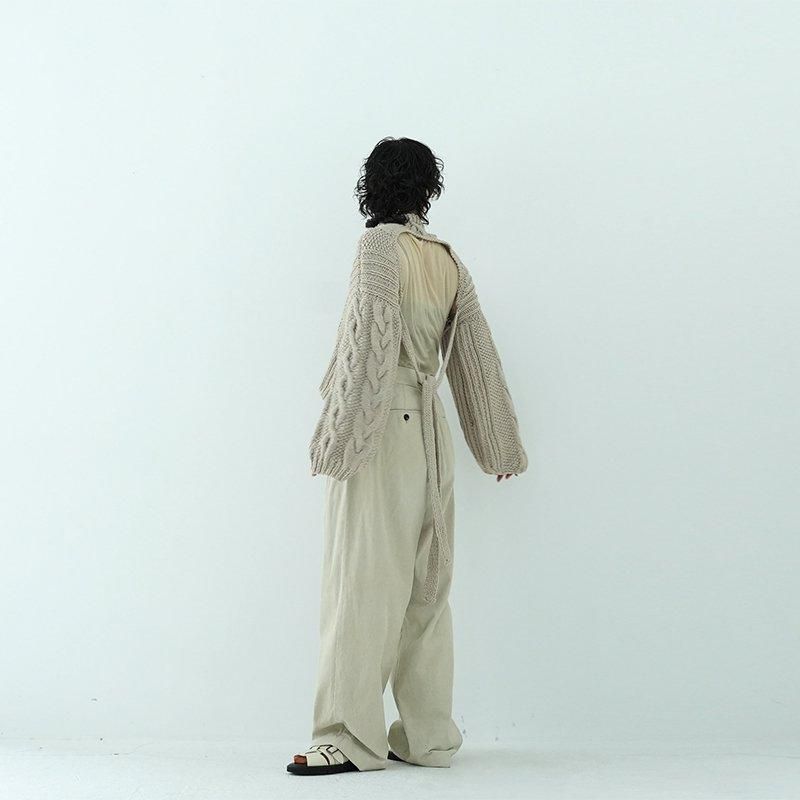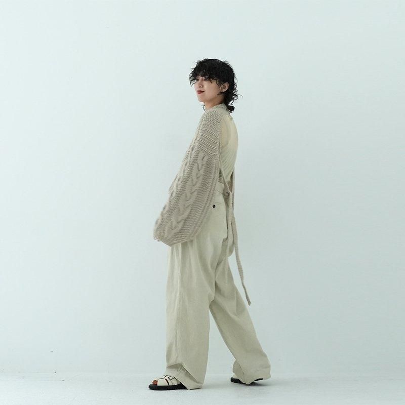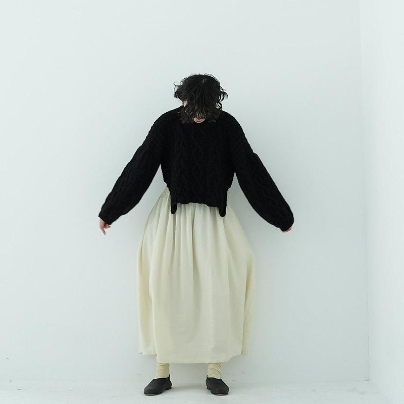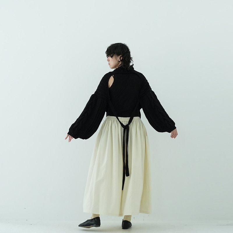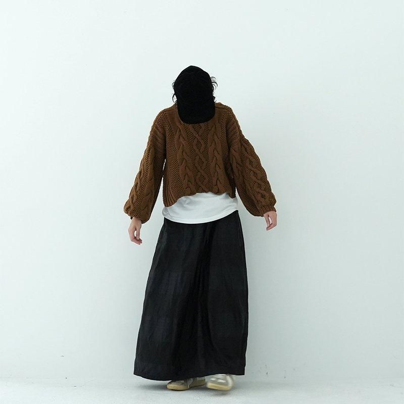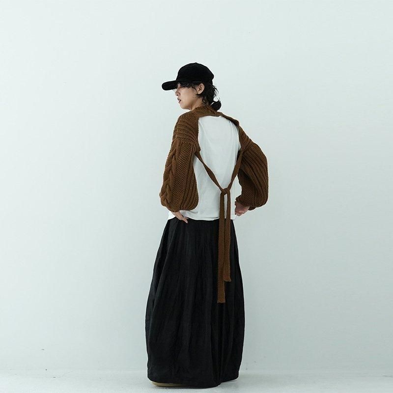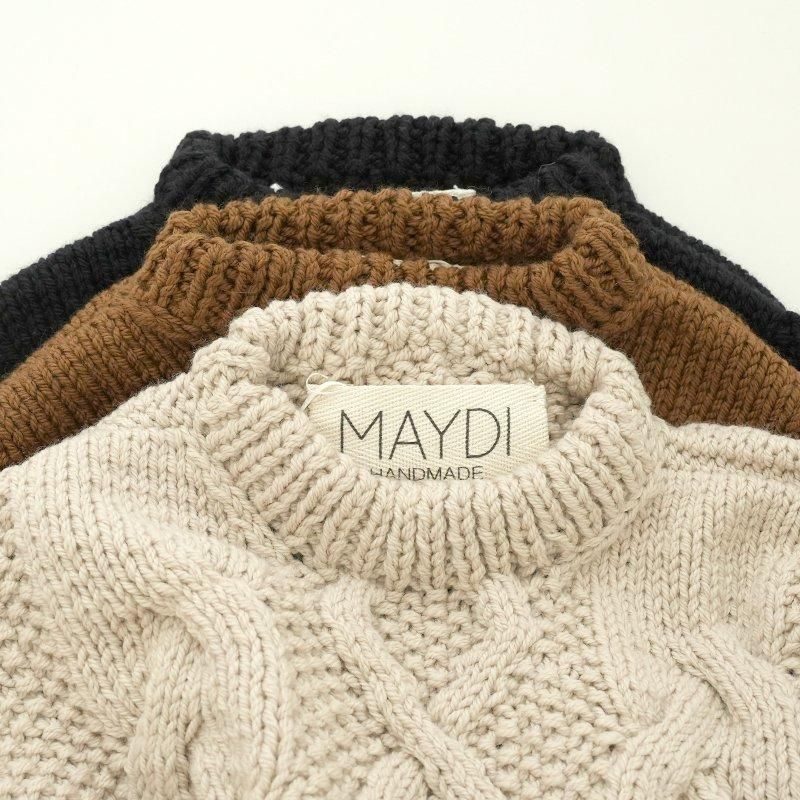 MAYDIはロンドンのファッションカレッジ卒のアルゼンチン人女性デザイナー、Maria Zolezziによりアルゼンチンにて2014年スタート。持続可能かつ自然由来であることにこだわった天然素材・染色を使用。またMAYDIのニットは全てアルゼンチンの伝統的な技術のハンドニットです。 前身頃はケーブル編み、膨らみのある袖、後ろはぱっくり開いていて紐で結んで、 MAIDIらしい目を惹くデザイン。きっとお気に入りの一着になります。 color: S.WOOD(ブラウン)/SABLE / BLACK size: S 着丈 前43cm後5cm 身幅52cm 裄丈82cm ※ハンドニットの為、個体差がございます。 material:Merino wool 100% model: 163cm お取り扱い店舗・・・dieci芝川ビル店