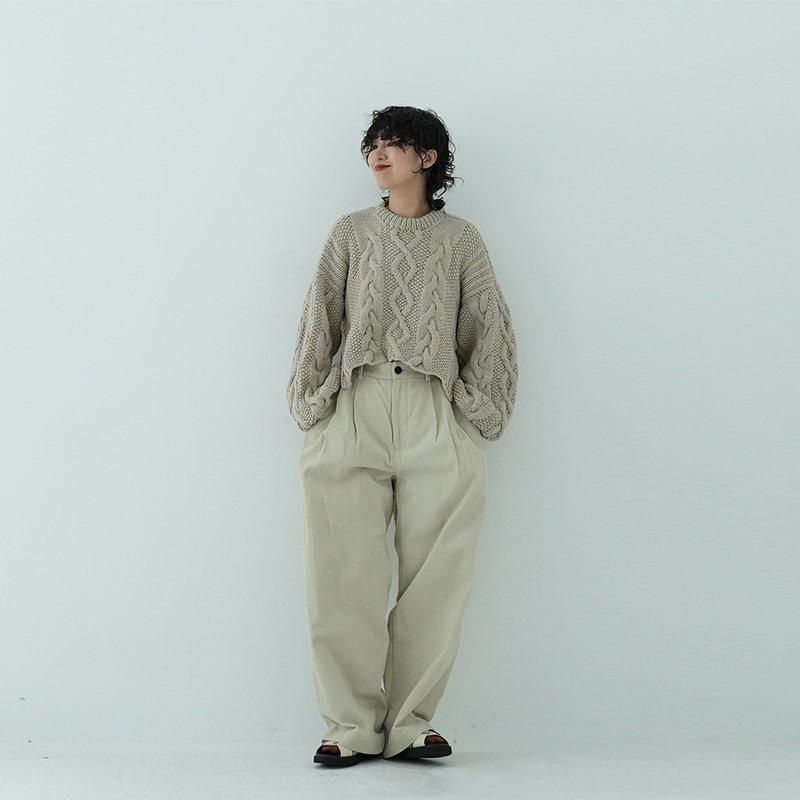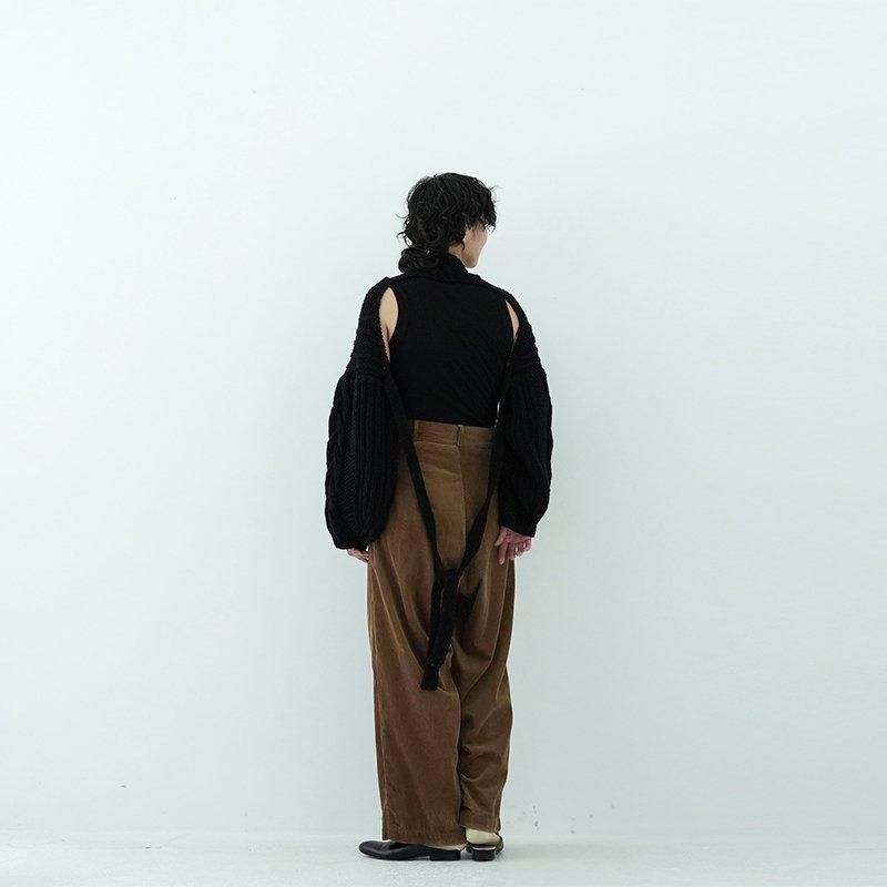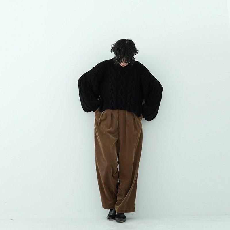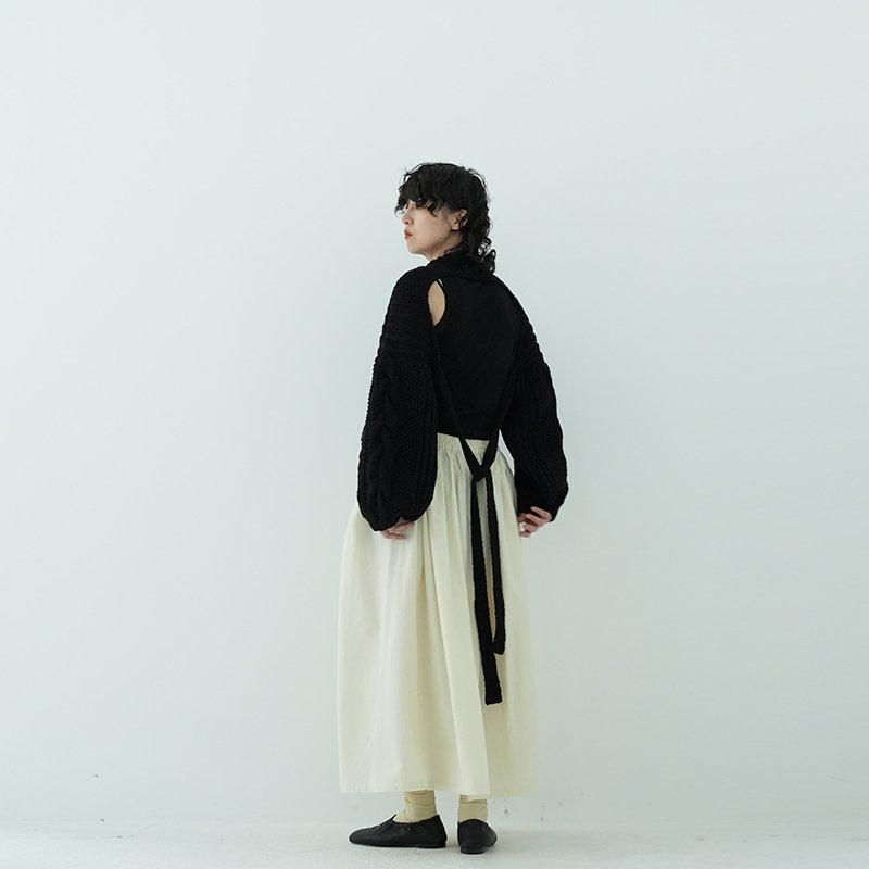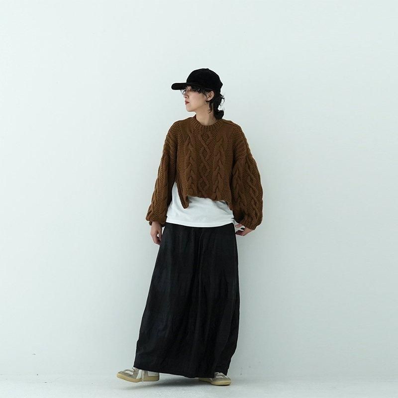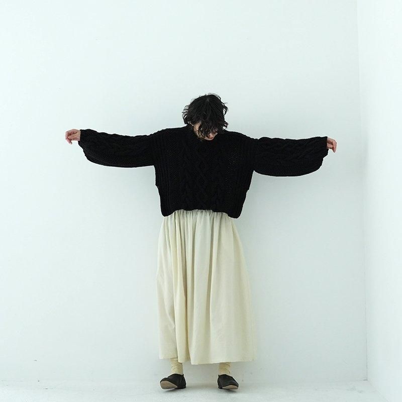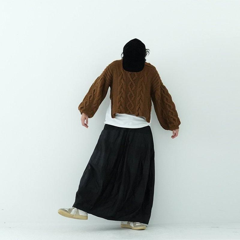 MAYDIはロンドンのファッションカレッジ卒のアルゼンチン人女性デザイナー、Maria Zolezziによりアルゼンチンにて2014年スタート。持続可能かつ自然由来であることにこだわった天然素材・染色を使用。またMAYDIのニットは全てアルゼンチンの伝統的な技術のハンドニットです。 前身頃はケーブル編み、膨らみのある袖、後ろはぱっくり開いていて紐で結んで、 MAIDIらしい目を惹くデザイン。きっとお気に入りの一着になります。 color: S.WOOD(ブラウン)/SABLE / BLACK size: S 着丈 前43cm後5cm 身幅52cm 裄丈82cm ※ハンドニットの為、個体差がございます。 material:Merino wool 100% model: 163cm お取り扱い店舗・・・dieci芝川ビル店