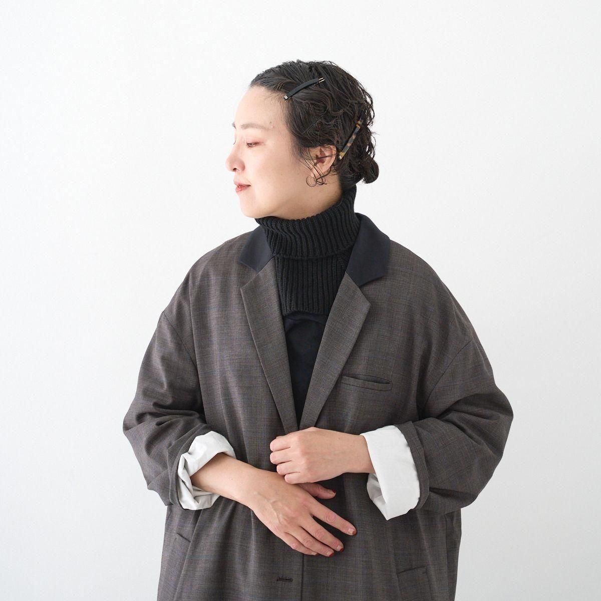 シルエットはすっきりとしていますが、裾に向かって広がる身頃や袖にはゆとりがあり、ゆったりとした羽織り心地です。長めのベンツが歩くたびに裾にやわらかな動きをつくり、足取りを軽やかにみせてくれます。