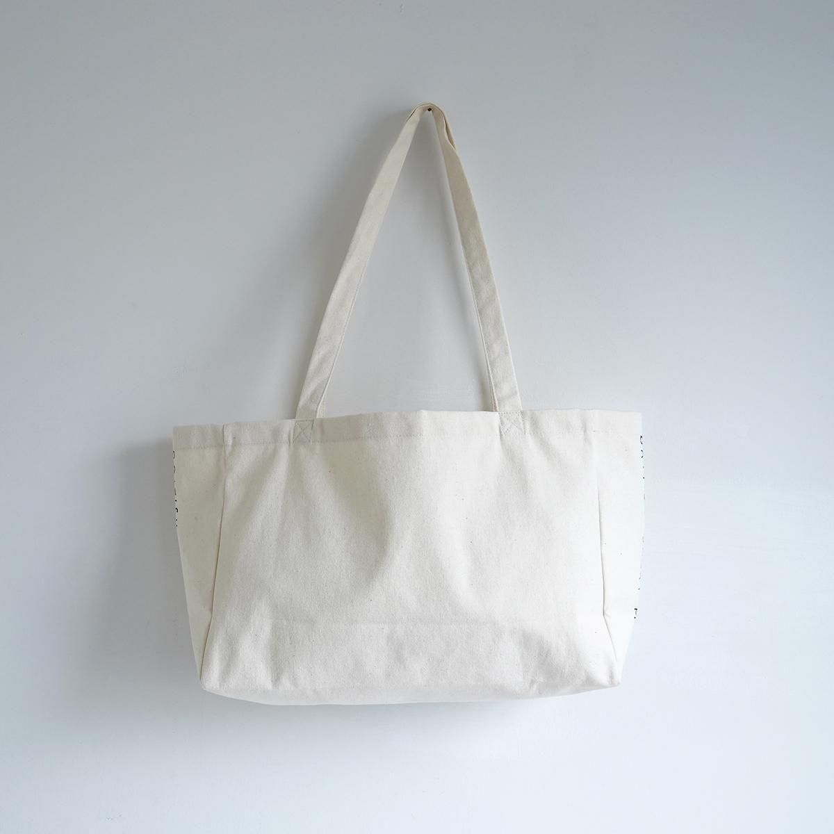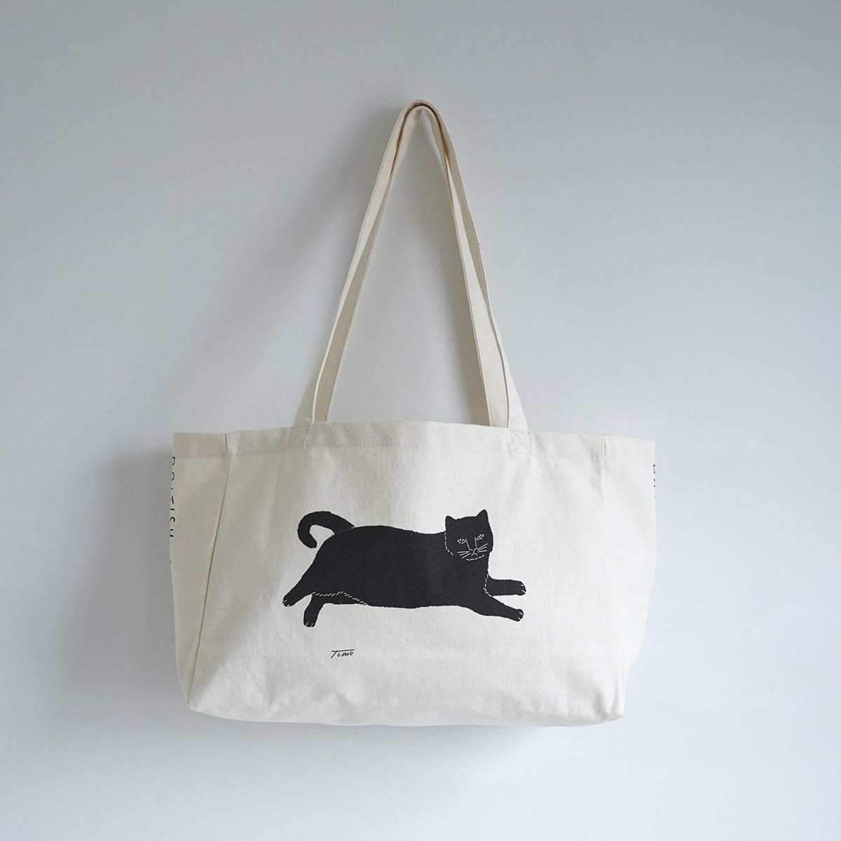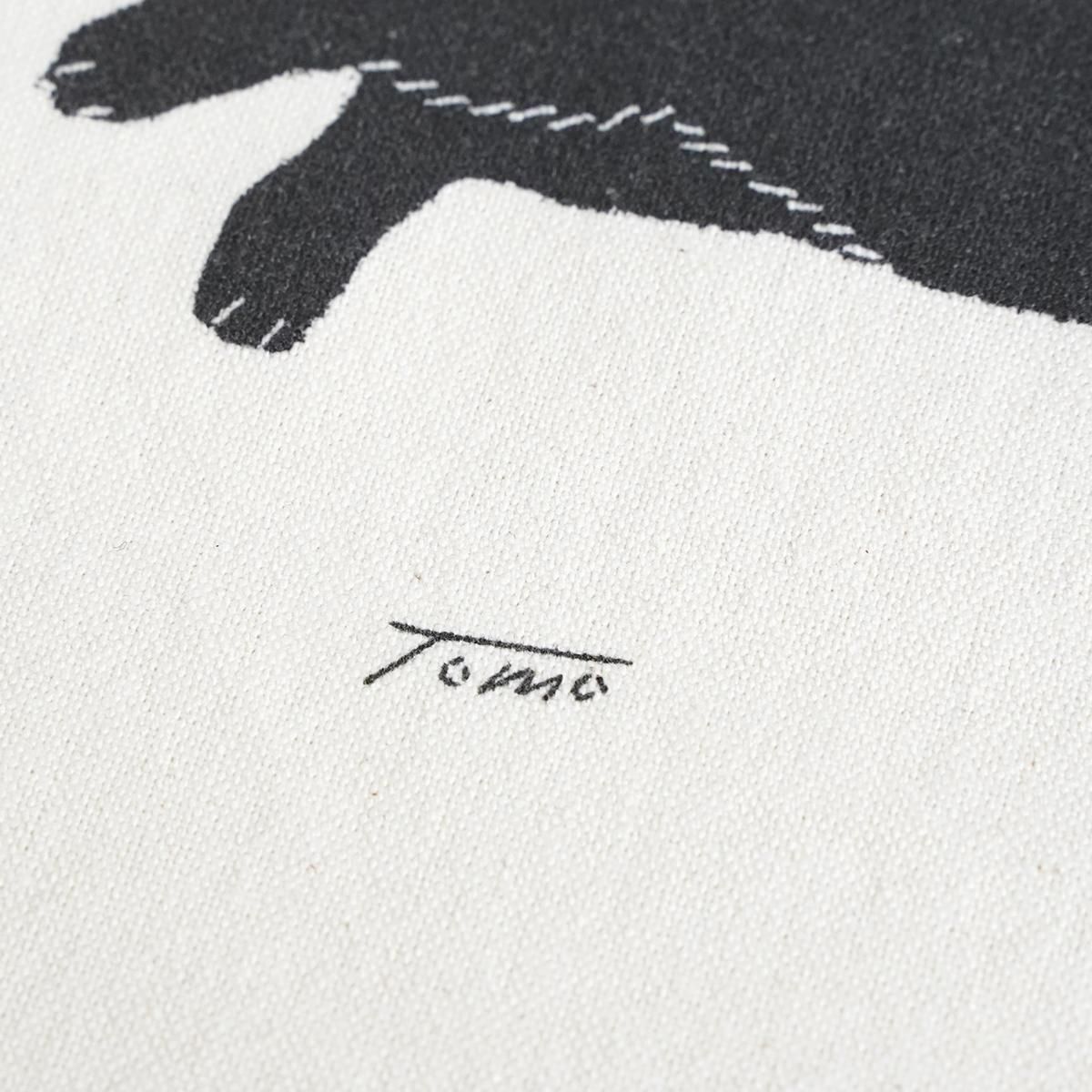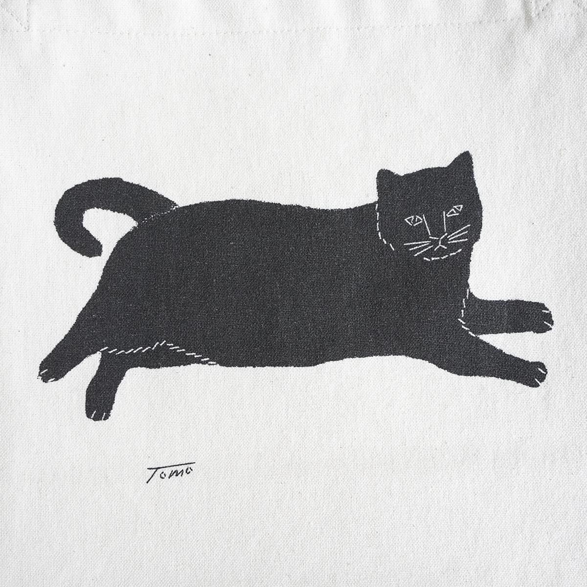 布を主な素材として作家活動をしているデザイナー夫婦お2人が一緒にものづくりをしているブランドTomotake。 ハリのある11号帆布に泥染めと刺繍で描いたネコの原画がプリントされたトートバッグ 。側面にも手書きの文字が入っています。 サイズはA4サイズの資料が入り持ち手が長めになっており、肩にかけたままでも出し入れがしやすいMサイズと 荷物が多い時に重宝する大きめのPCがケースごとが入り肩からかける事も可能なLサイズの2サイズ。 どちらのサイズにもネコ柄のステッカーが付きます。 size M : W37cm x H25cm x D13cm 持ち手67cm L : W48cm x H35cm x D13cm 持ち手52cm price M : ¥5400+tax(税込¥5,940) L : ¥6300+tax(税込¥6,930) 取り扱い店舗・・・dieci 天神橋店 1F