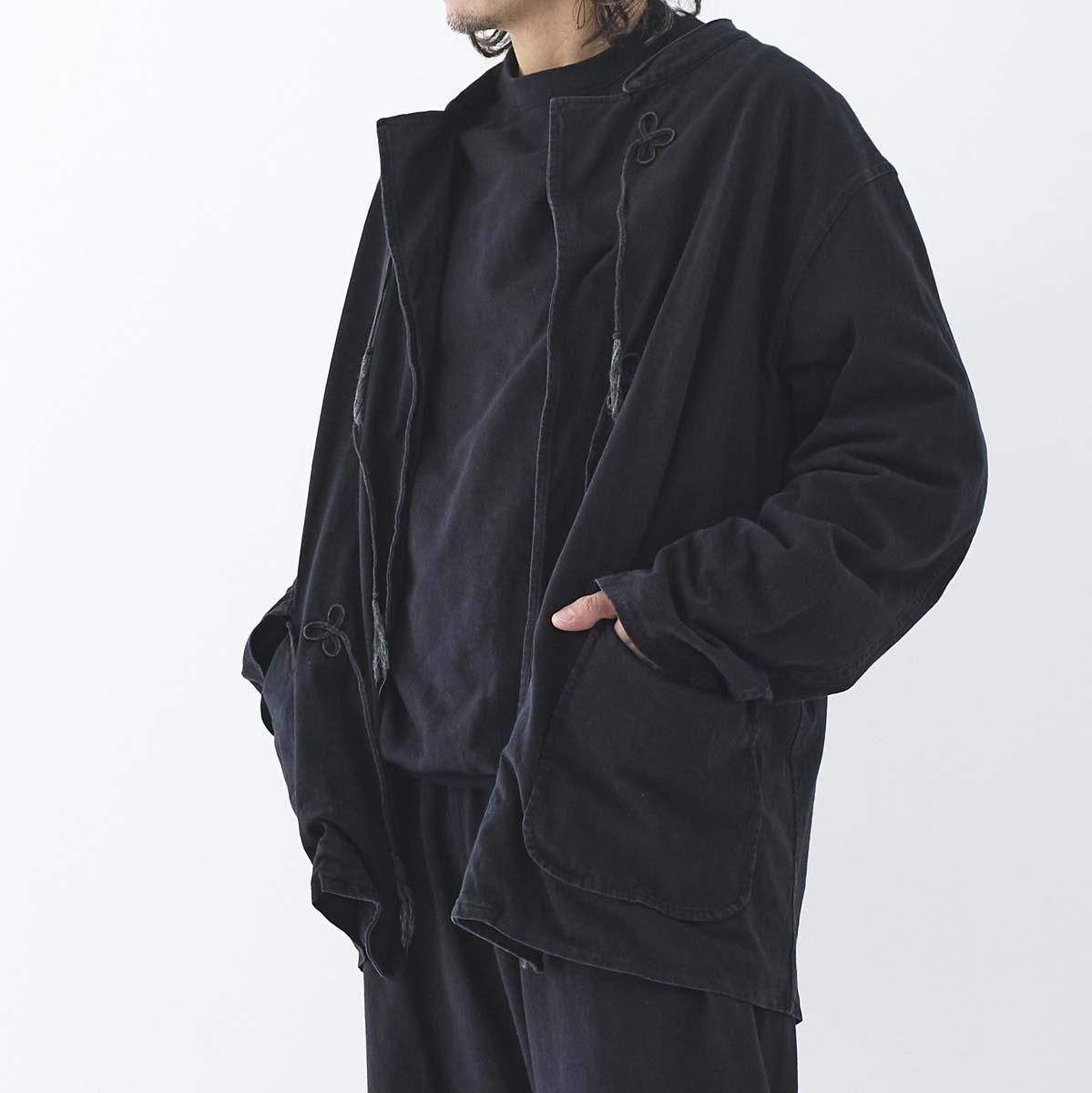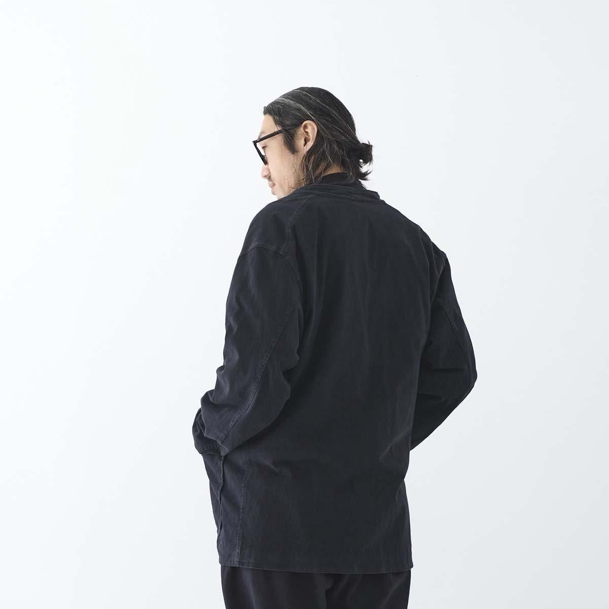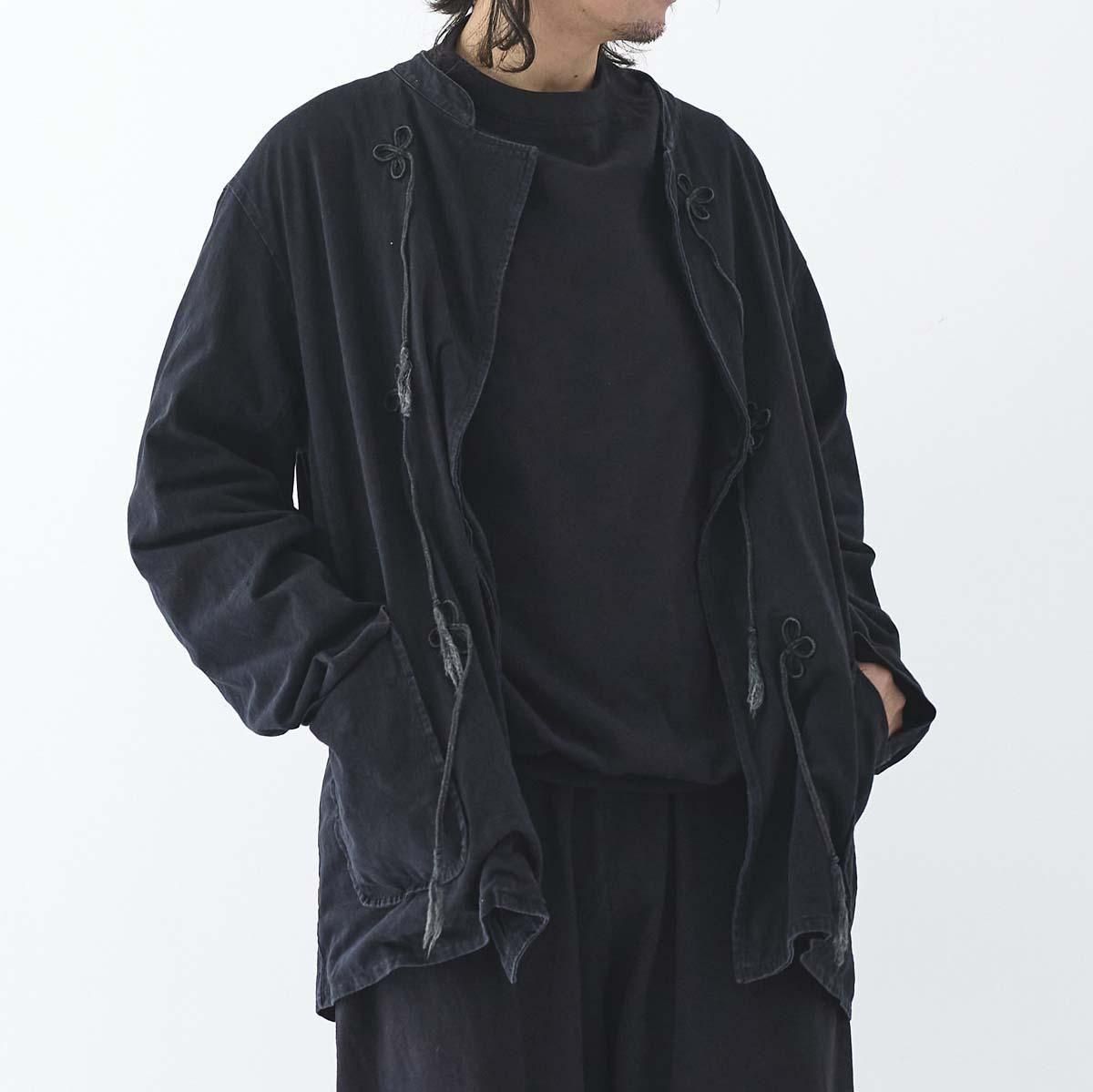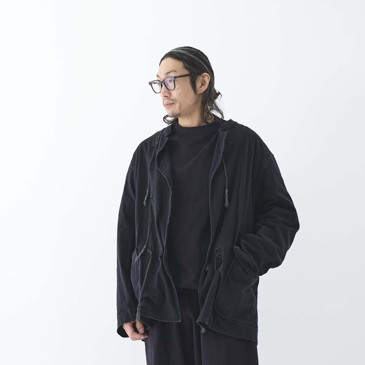 2011年にデザイナー小森啓二郎が立ち上げたブランド。 全ての洋服の原型は、ある目的の為に作られた物である。 この考えを基に、その時の気分や感覚を取り入れた洋服を提案しています。 2019年9月、南青山に旗艦店をオープン。 24SSで展開のあったコットンジャージのジャケット、25SSは色落ちした表情の前合わせが紐のスタンドカラー型で登場です。着ていくと少しずつ色落ちしてきます。 ラフに羽織れてとても雰囲気があります。 女性の方にも着用しやすい一着です。 ※この製品は素材の特性上、水や汗などで湿った状態、または摩擦により他のものに色移りすることがあります。 白物、淡色衣類と合わせての着用の際はご注意ください。 洗濯は他のものと分けて洗って ください。 濡れた状態で他の製品と一緒に放置されることの無い様、ご注意お願いします。 color:BLACK size:1,2,3 1: 着丈75cm 身幅59cm 肩幅55cm 袖丈61cm 2: 着丈76cm 身幅60cm 肩幅57cm 袖丈63cm 3: 着丈77cm 身幅64cm 肩幅58cm 袖丈66.5cm material:COTTON 100% model: 173cm / 163cm (#2着用) 取扱い店舗…dieci芝川ビル店
