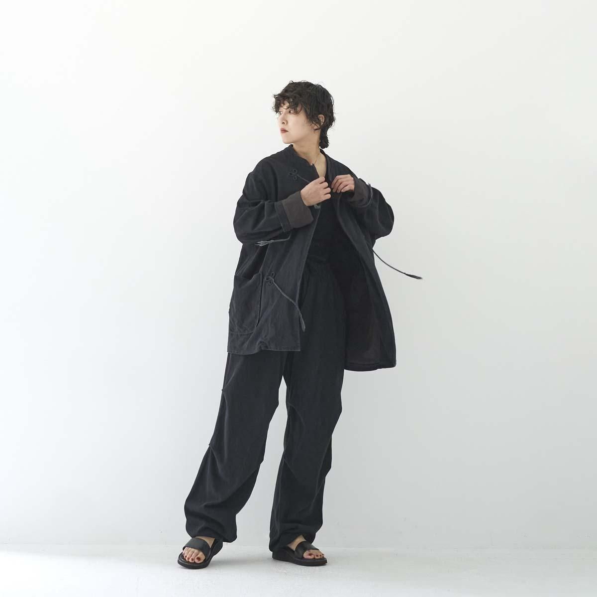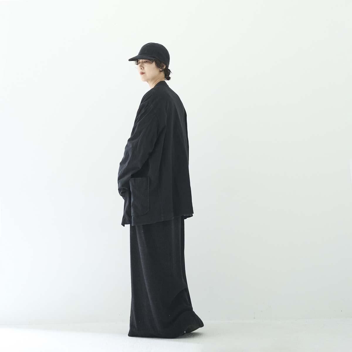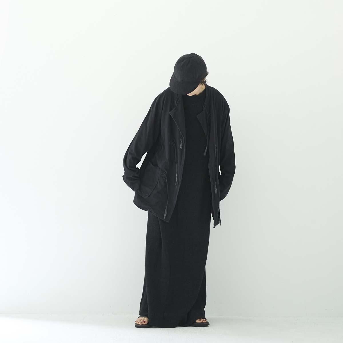 2011年にデザイナー小森啓二郎が立ち上げたブランド。 全ての洋服の原型は、ある目的の為に作られた物である。 この考えを基に、その時の気分や感覚を取り入れた洋服を提案しています。 2019年9月、南青山に旗艦店をオープン。 24SSで展開のあったコットンジャージのジャケット、25SSは色落ちした表情の前合わせが紐のスタンドカラー型で登場です。着ていくと少しずつ色落ちしてきます。 ラフに羽織れてとても雰囲気があります。 女性の方にも着用しやすい一着です。 ※この製品は素材の特性上、水や汗などで湿った状態、または摩擦により他のものに色移りすることがあります。 白物、淡色衣類と合わせての着用の際はご注意ください。 洗濯は他のものと分けて洗って ください。 濡れた状態で他の製品と一緒に放置されることの無い様、ご注意お願いします。 color:BLACK size:1,2,3 1: 着丈75cm 身幅59cm 肩幅55cm 袖丈61cm 2: 着丈76cm 身幅60cm 肩幅57cm 袖丈63cm 3: 着丈77cm 身幅64cm 肩幅58cm 袖丈66.5cm material:COTTON 100% model: 173cm / 163cm (#2着用) 取扱い店舗…dieci芝川ビル店