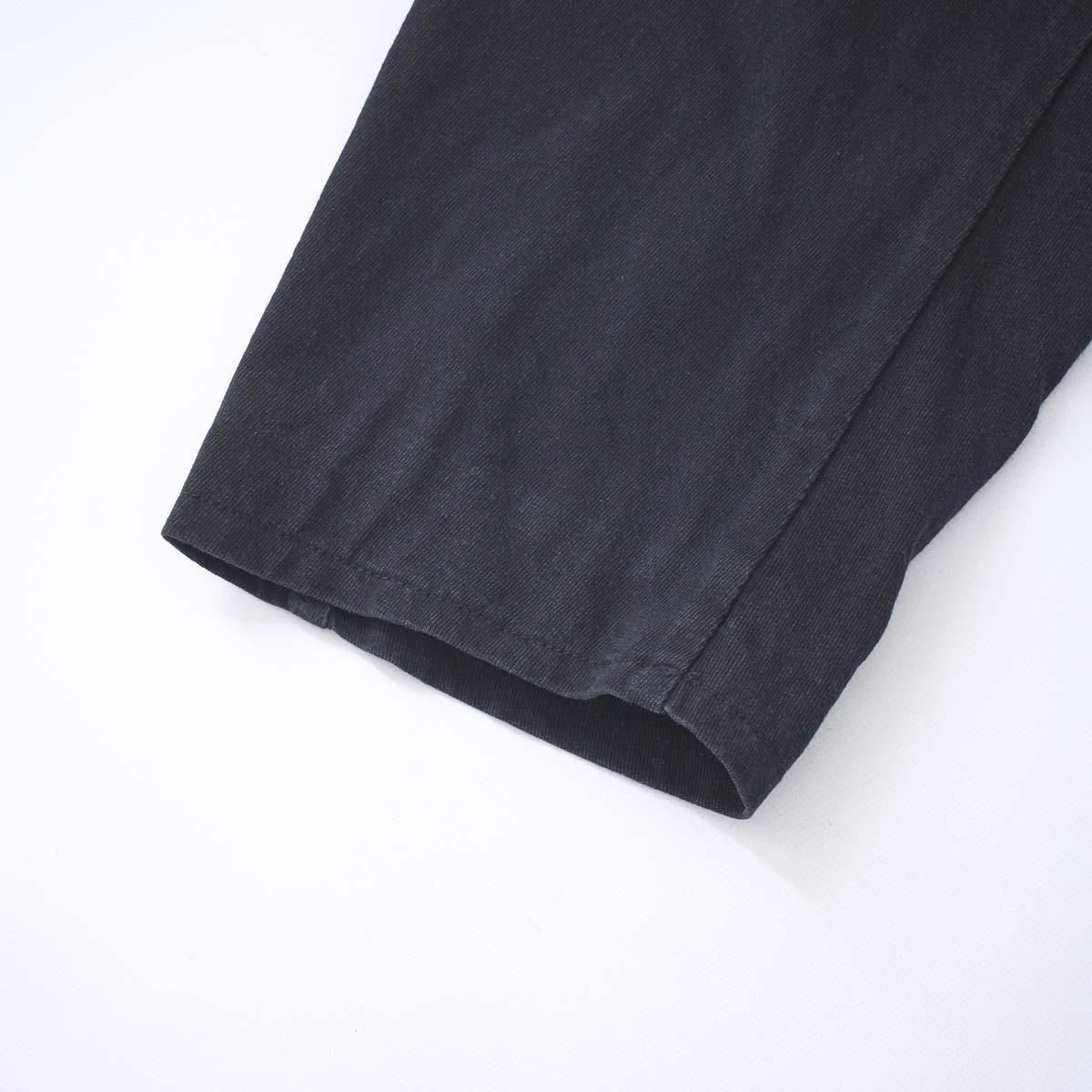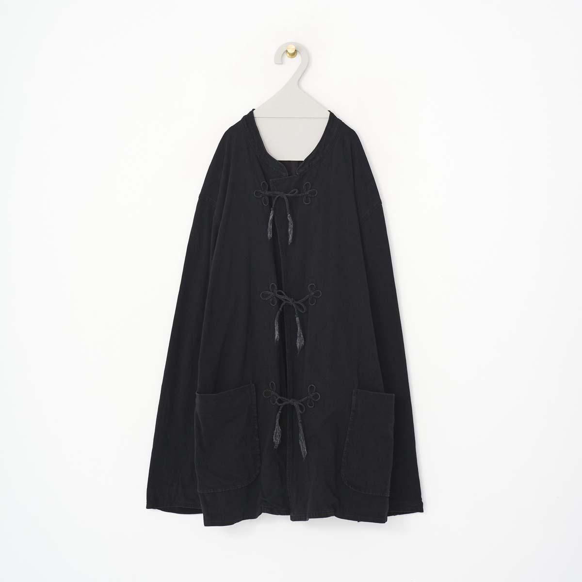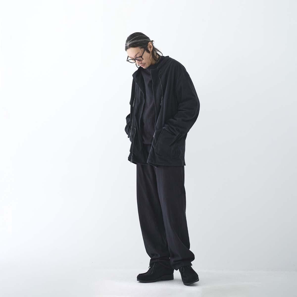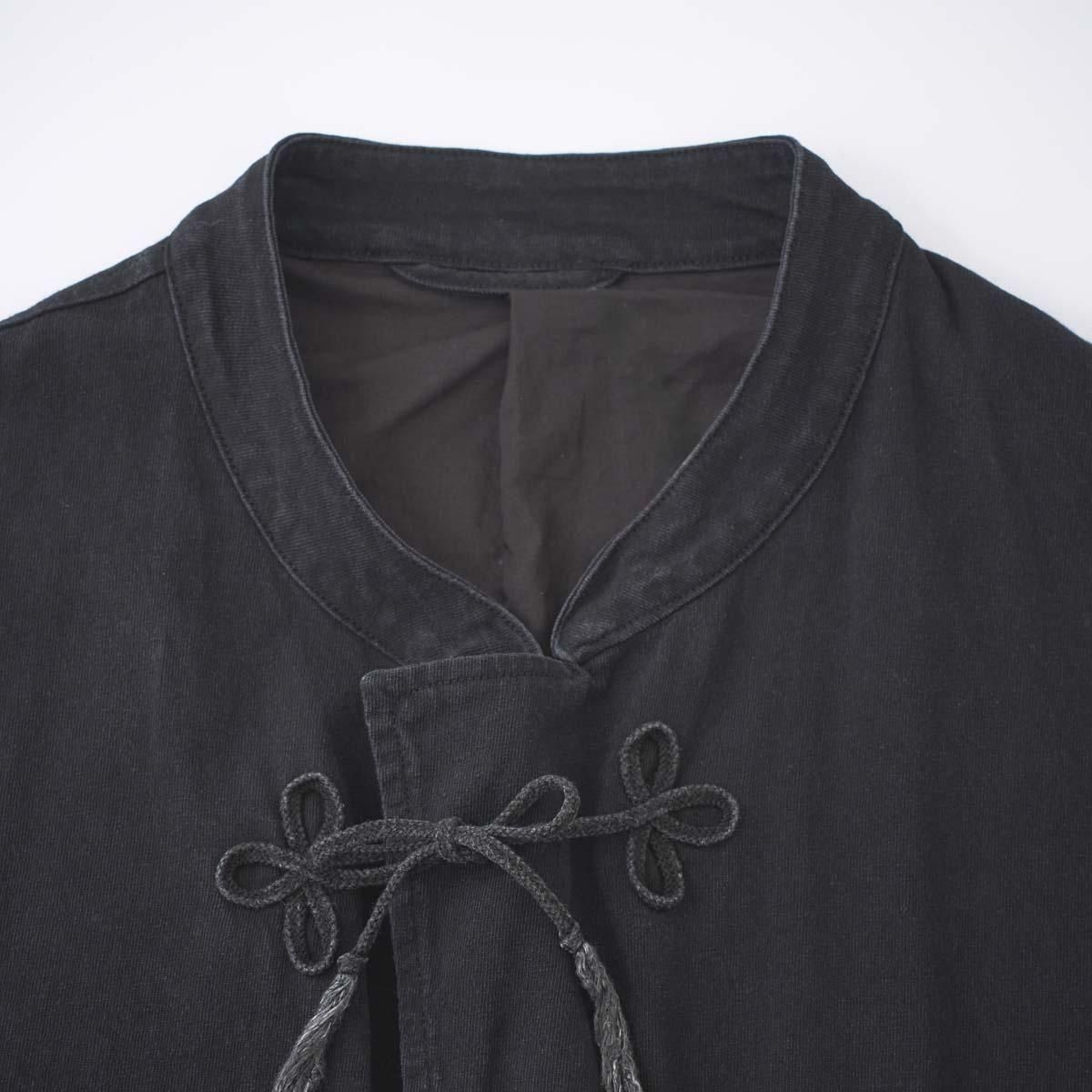 2011年にデザイナー小森啓二郎が立ち上げたブランド。 全ての洋服の原型は、ある目的の為に作られた物である。 この考えを基に、その時の気分や感覚を取り入れた洋服を提案しています。 2019年9月、南青山に旗艦店をオープン。 24SSで展開のあったコットンジャージのジャケット、25SSは色落ちした表情の前合わせが紐のスタンドカラー型で登場です。着ていくと少しずつ色落ちしてきます。 ラフに羽織れてとても雰囲気があります。 女性の方にも着用しやすい一着です。 ※この製品は素材の特性上、水や汗などで湿った状態、または摩擦により他のものに色移りすることがあります。 白物、淡色衣類と合わせての着用の際はご注意ください。 洗濯は他のものと分けて洗って ください。 濡れた状態で他の製品と一緒に放置されることの無い様、ご注意お願いします。 color:BLACK size:1,2,3 1: 着丈75cm 身幅59cm 肩幅55cm 袖丈61cm 2: 着丈76cm 身幅60cm 肩幅57cm 袖丈63cm 3: 着丈77cm 身幅64cm 肩幅58cm 袖丈66.5cm material:COTTON 100% model: 173cm / 163cm (#2着用) 取扱い店舗…dieci芝川ビル店