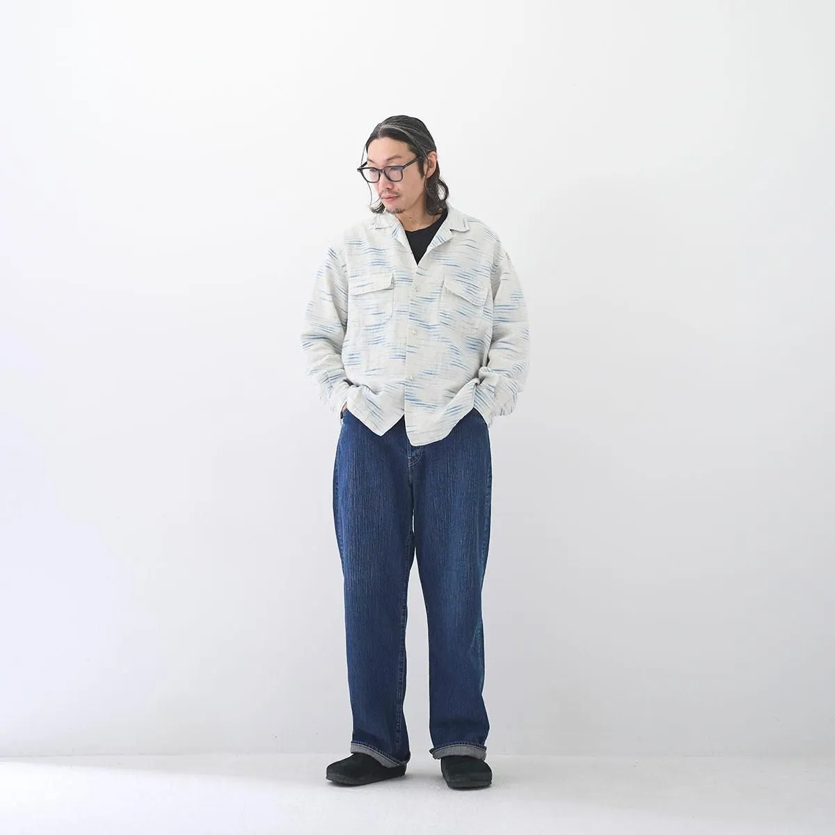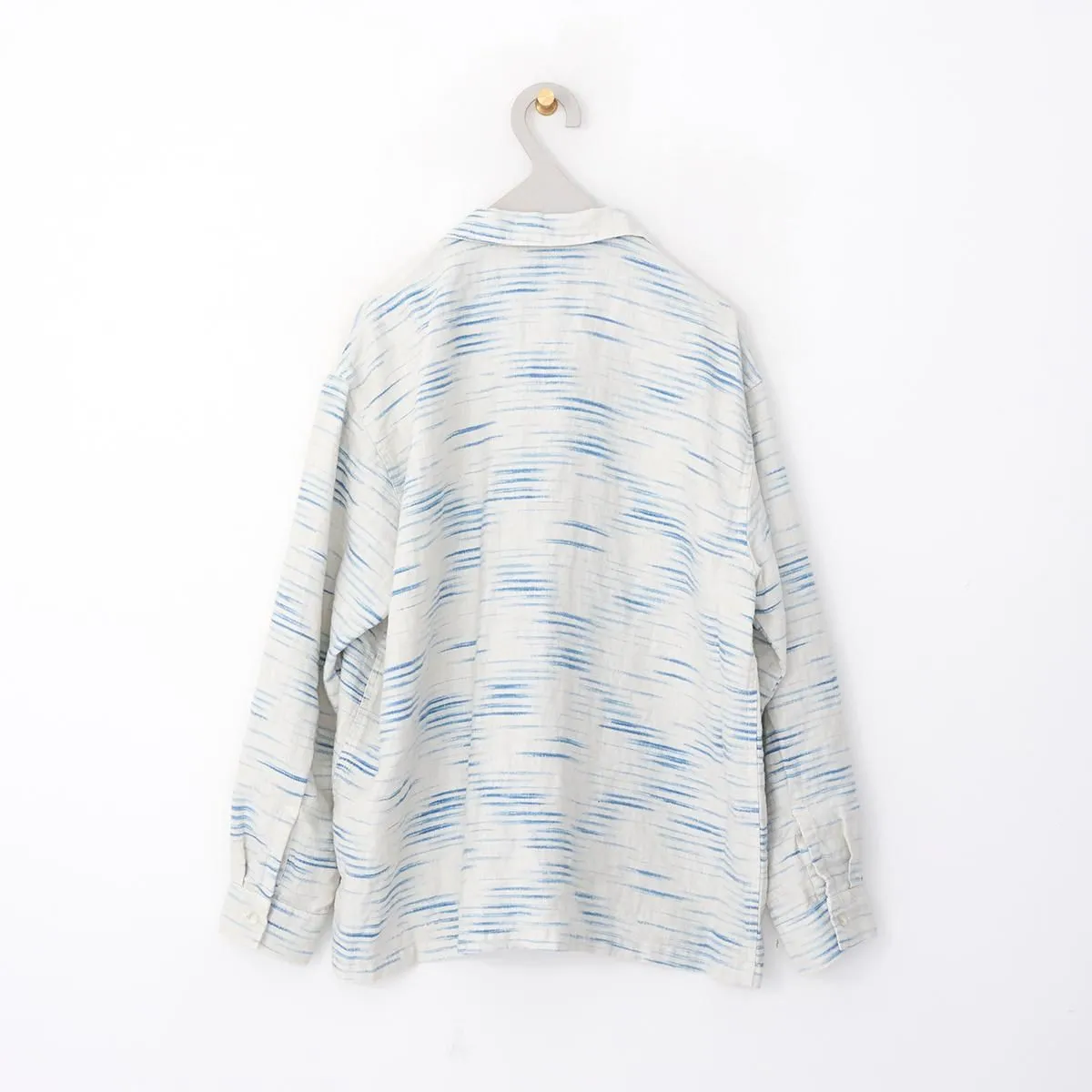 ポータークラシックは「世界基準のスタンダード」をコンセプトに掲げています。年代を問わず愛されるアイテム作りを目標とし、日本の伝統技術を活かして作り上げていくブランドです。芸術や映画などの伝統や文化のテイストが感じられ、流行を追わないデザインは幅広い層に支持されています。日本の職人を大切にし、その技術を次世代へ継承することを大切にしています。アイテムだけではなく、アイテムの製造環境・過程にもこだわるのが他のブランドとの違いです。 OLD FRANCE INDIGO PRINTはふっくらとした糸を使用した目が詰まったリネン生地にインディゴでプリントを施されています。ぽこぽこと波打つような生地に濃淡のあるブルーがなんとも涼しげで雰囲気のあるシリーズです。リネンならではのふんわりとした柔らかな肌触りで抜群の着心地です。身幅を広くとったPORTER CLASSICらしい長袖シャツです。 25SS size:2 肩幅54cm 身幅64cm 着丈73cm 袖丈58cm color:WHITE material:LINEN 100% model:173cm,170cm お取り扱い店舗・・・dieci kyutaro店 2F