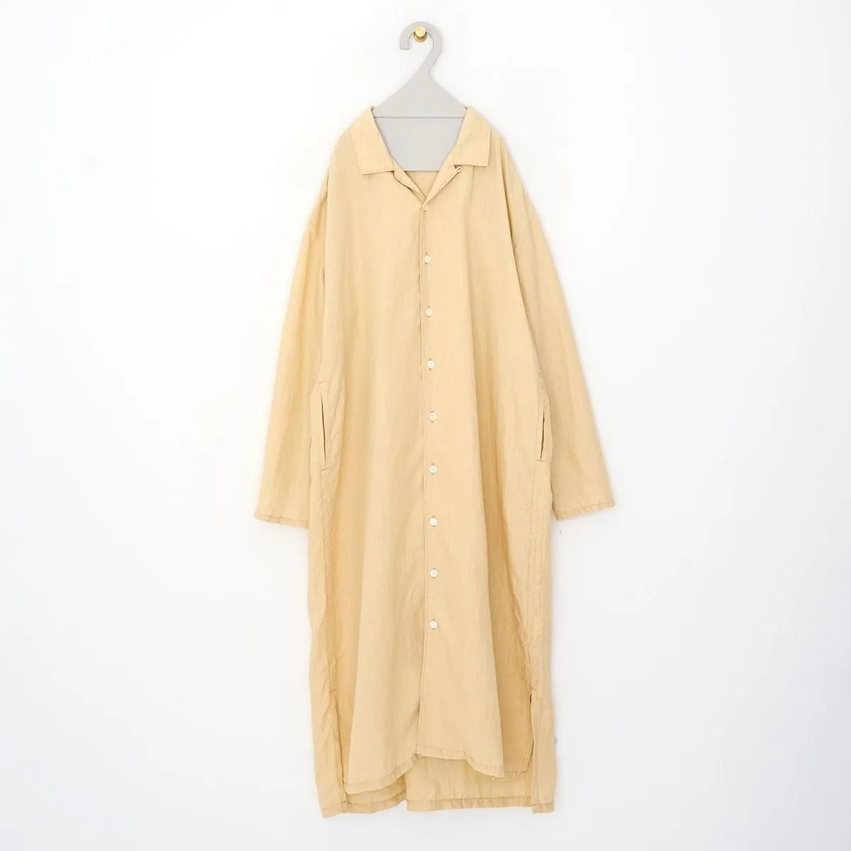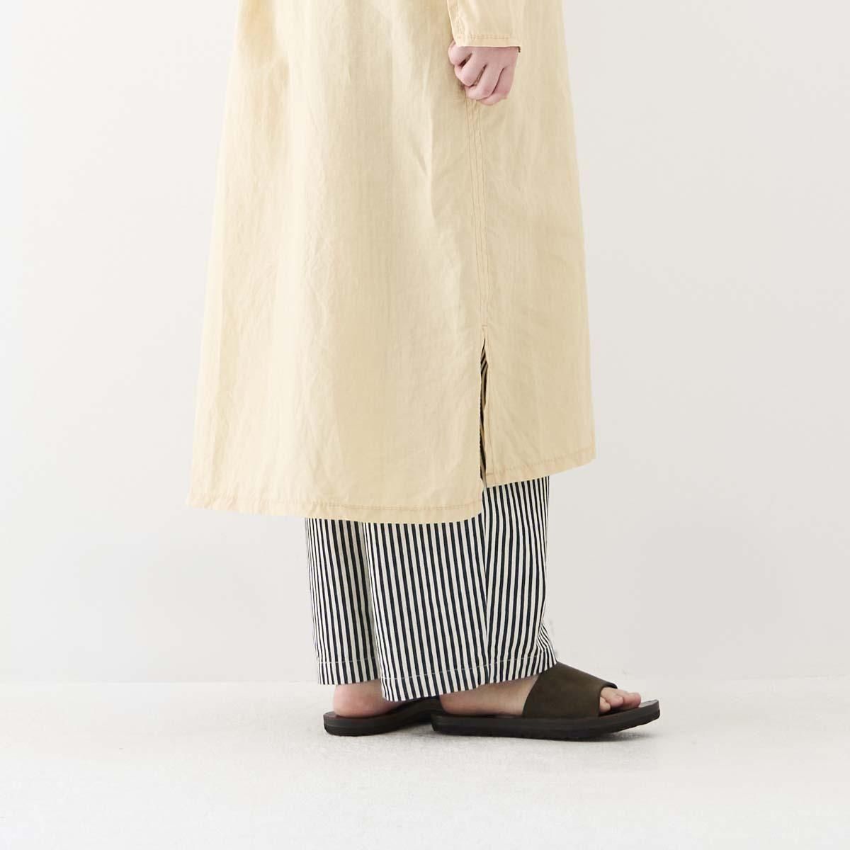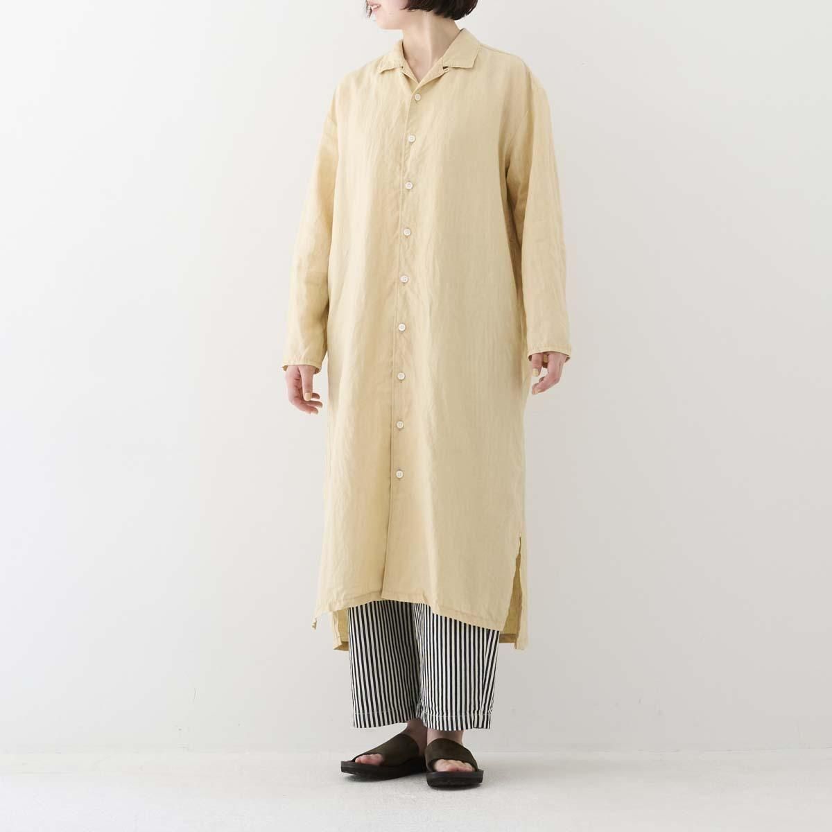 homspun(ホームスパン)は2000年にスタートされたブランドです。シンプルで毎日着たいと思える、そんな思いから生まれました。 定番リネンバイオ素材のシャリっと気持ちの良いシャツワンピースです。 シャリっとした肌離れのよいリネンバイオ生地はファンが多い定番生地の一つです。前を開けて羽織の様にも、パンツを入れてレイヤードスタイルもお楽しみ頂けます。 size:F 着丈114.5cm 身幅55.5cm 裄丈79cm color: クリーム / ネイビー / ブラック material: linen100% お取り扱い店舗・・・dieci kyutaro2F size_chart