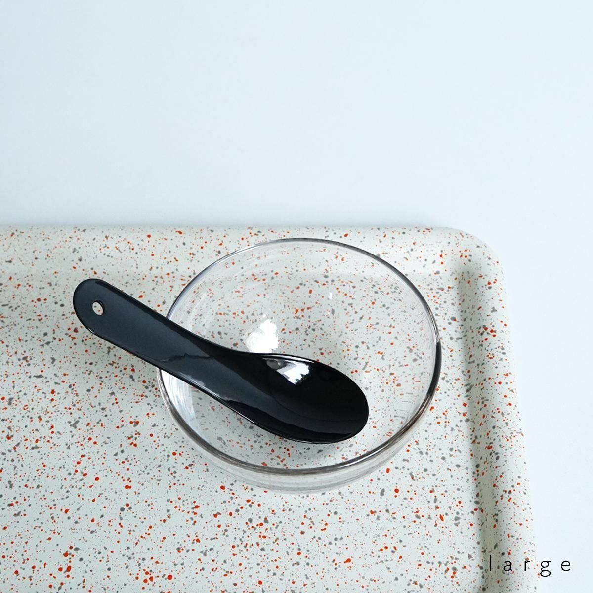 料理だけでなく、デザートスプーンや茶匙、取り分け用のサーバースプーンとしてなど、用途に余地が存在する汎用性の高いレンゲです。表面は琺瑯で加工されています。また、一枚の板を柔らかく曲げたようなシンプルで丸みのある造形は、取手の先まで緩やかに曲げが加わっており、本来のレンゲの用途としても理に適った確かな機能性も持ち合わせています。琺瑯加工が施されていることで、よりまろやかな口当たりになっています。