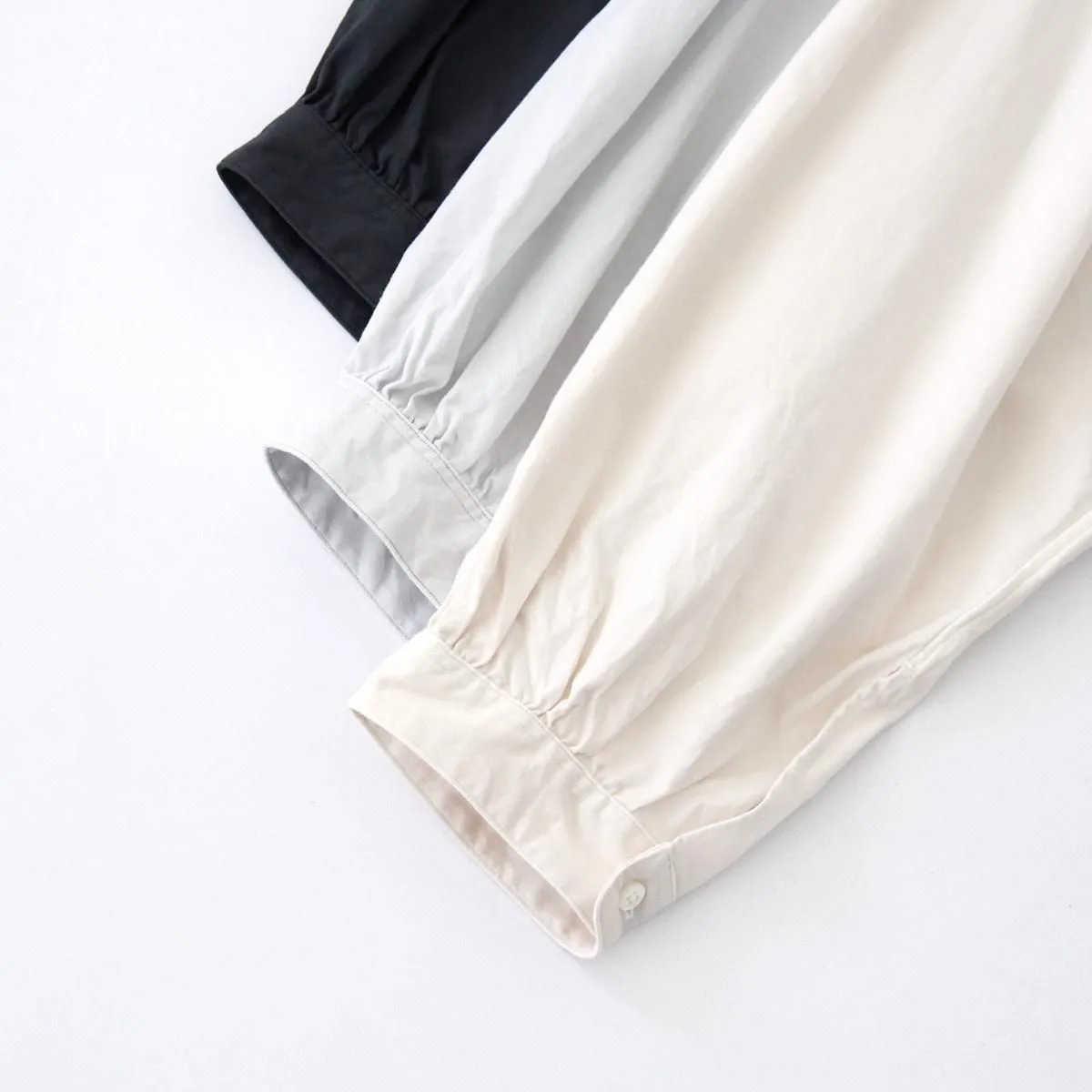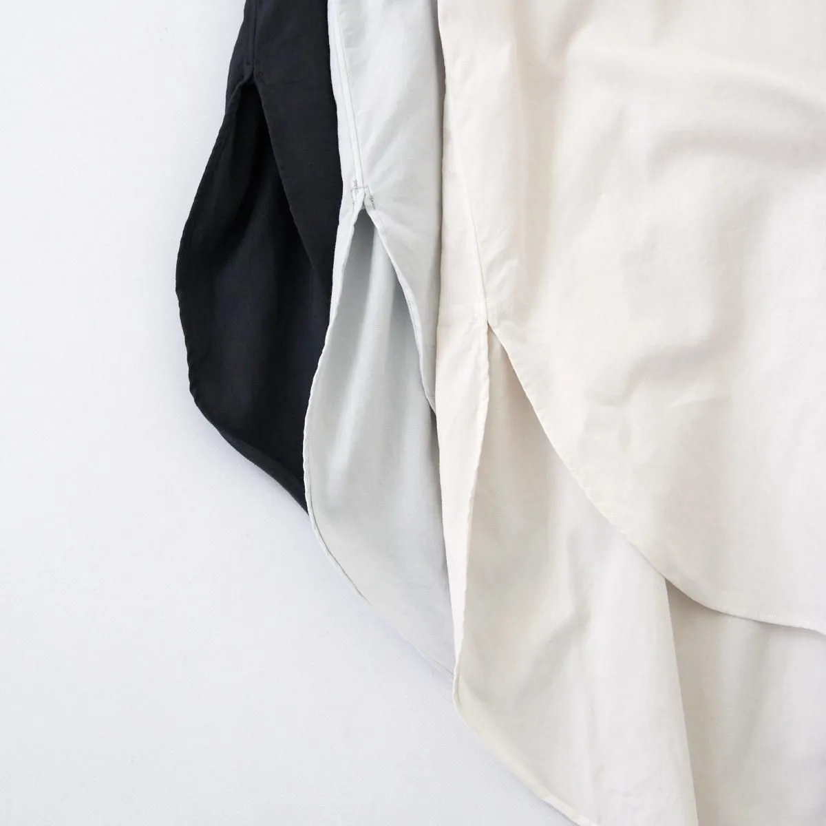 エシュペーは、2022 年 1 月から始まったブランド。 ブランド名のŠP は、「幸福の製品」を意味する 言葉の頭文字です。 オリジナルのテキスタイルと細やかな縫製を 得意としており、19 世紀頃のヴィンテージの衣服や 民族衣装などのディテールを取り入れつつも、 着心地やスタイルは、今を生きる人のことを考え、 私たちの生活になじむ形となっています。企画から製造までの多くを、関東近郊で行い繊細なディテールと丁寧な素材作りのため、作り手の方との、親密で正確なやりとりを大切にされています。 40/1のオーガニックコットンを甘織りにし、シャトル織機でゆっくりとオックス生地に織り上げることで、肌に優しく、丈夫な生地になっています。型紙は、20世紀初頭のシャツを参考にしており、今の服にはない、ゆるい雰囲気があります。 ゆったりとしたシルエットで、1枚でも羽織としても着ていただける仕様です。 size:FREE 着丈前70.5cm 後82.5cm / 肩幅39.8cm / 身幅61.7cm / 袖丈58.1cm color:VINTAGE WHITE/SAXE BLUE/CHARCOAL material:cotton 100% model:160cm お取り扱い店舗・・・dieci kyutaro店 2F