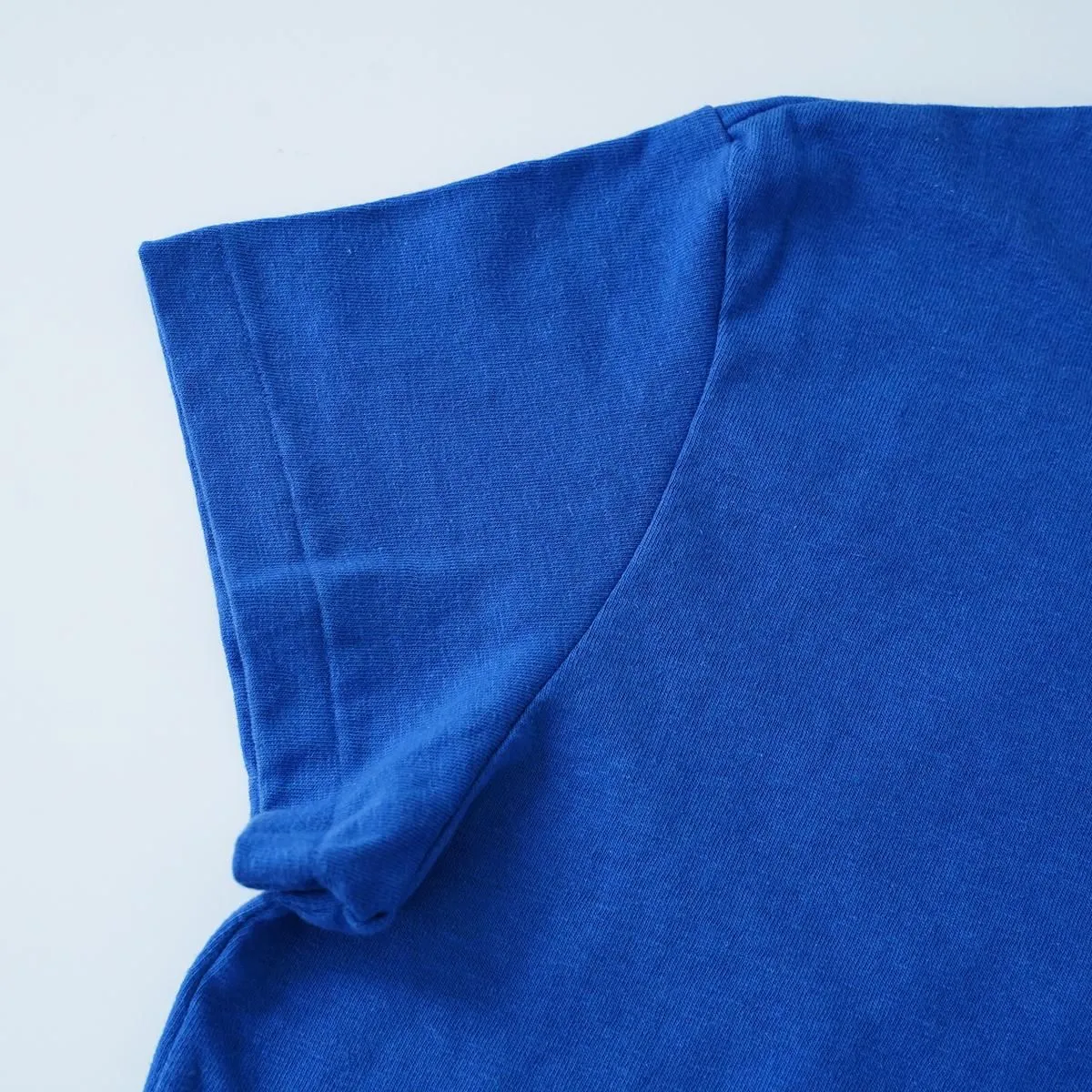 eleven 2ndは橋本靖代さんによる暮らしを意識したニットプロダクトです。20AWより上質なニットウエアやストールを展開しています。 こちらは膨らみのある綿を使用し作られたとても柔らかく快適な肌ざわりの 定番無地Tシャツです。 シンプルでベーシックだからこそ、着丈や身幅、生地の厚み等をこだわって作られている1着です。 ムラのある糸を使用することで生地の表面はナチュラルな印象に。 そのまま1枚でワイドパンツやスカートとなどのトップスに、ベストやノースリーブドレスのインナーとしても。便利な一枚です。 size:M(one size) 身幅46cm 着丈60cm 肩幅38cm 袖13.5cm color: Ink Blue / slate material: Cotton100% ※素材の特性上、洗濯によりねじれ(斜行)が見られる事があります。 濃い色物は衣料の重ね着の際、摩擦や雨で濡れた状態で移染する恐れがあります。ご注意ください。 取扱い店舗…dieci芝川ビル店