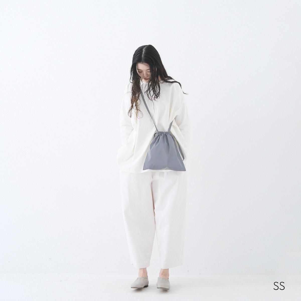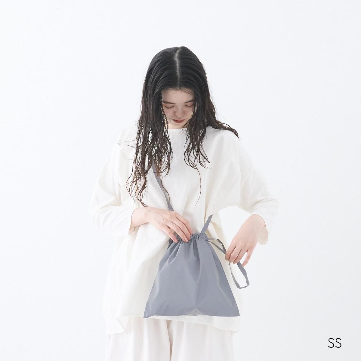 formuniformは制服をデザインのモチーフにしたアパレルブランドです。ワークウェアをベースに独自のスタイルをミックスするデザインでエレガントな印象をつくりだします。Drawstring Bag はちょっとしたお出かけの時や、旅行中などにもぴったりのサイズです。 リフレクター素材のDrawstring Bagが入荷しました。 撥水加工を施した素材で一見グレーに見える落ち着いたストーンカラーにガラスビーズの細かい粒子がキラキラして光り、どんなスタイリングにも合わせやすくコーディネートのポイントになる色目です。 更にリフレクター素材なので夜間や暗い場所では光に反射します。 こちらはストラップ付きのタイプです。 最小限の荷物をまとめるのにぴったりなXSサイズ、程よい収納力のSSサイズの2種類です。 お取扱い上の注意 ・本製品は、顔料性の加工を施しているため、使用頻度により傷や剥がれが生じる可能性がございます。 ・水洗いを繰り返すと耐水性が弱まります。 ・過剰な力が加わると破れる恐れがありますので、取扱いにはご注意ください。 ・鋭利なもので傷つけないでください。 material:ナイロン100% (撥水加工) size XS:220 × 220 mm(ショルダー部分:131mm) SS:300 × 300 mm(ショルダー部分:131mm) Made in Lithuania 取扱い店舗…dieci天神橋店