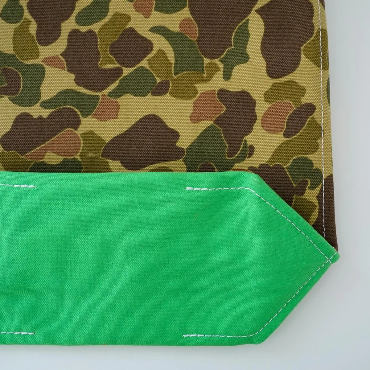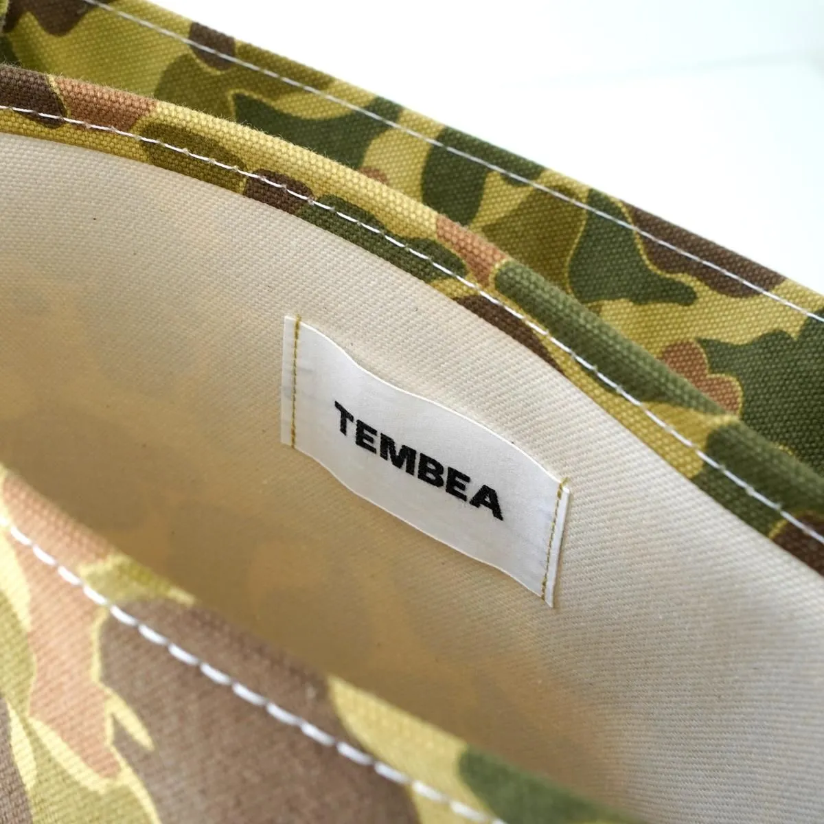 TEMBEAの中でも定番のバゲットトート。持ち手を手前に付けているため、バゲットなどの長い物を入れても肩に掛けやすい作りが特長です。A4ファイルが入るサイズで男女問わず定番人気のアイテムです。 パラフィン加工の施されたキャンバス素材は使い始めの強度・撥水性に優れており、使い込むほど表情が変化し、柔らかく馴染みます。長くお使いいただける経年変化が楽しみなバッグです。 Rakko柄にはよく見るとイカ・ヒトデ・カニ・ハマグリなどが水の中に潜んでいます。 Hunter camoは発色の良い蛍光グリーンがアクセントになったツートーン仕様です。 箔プリントのICE柄には“Tembea Ice Cream”のチェーンステッチのロゴ入り。 size:W20cm x H34cm x D12cm color: RAKKO/OXFORD BLUE(¥15,400) HUNTER CAMO/KELLY(¥15,400) ICE+刺繍/NATURAL(¥17,050) ※ICEのみ価格が異なります。ご注意ください。 ※プリントの出方には個体差がございます。ご了承くださいませ。 お取り扱い店舗・・・dieci kyutaro店2F -------------------------------------------------------- TEMBEA(テンベア) 2004年にスタートしたバッグブランド。TEMBEAとはスワヒリ語で”放浪”の意味。アウトドアやトラッドをベースに、タウンユースデザインに落とし込んだ、シンプルで飽きのこないデザインとスタイルを提案しています。 すべての工程を手作業で行い、日本国内の職人さんがミシンを使い、ひとつひとつ丁寧に制作。日常に馴染む道具としてのプロダクトを、日々作り続けています。