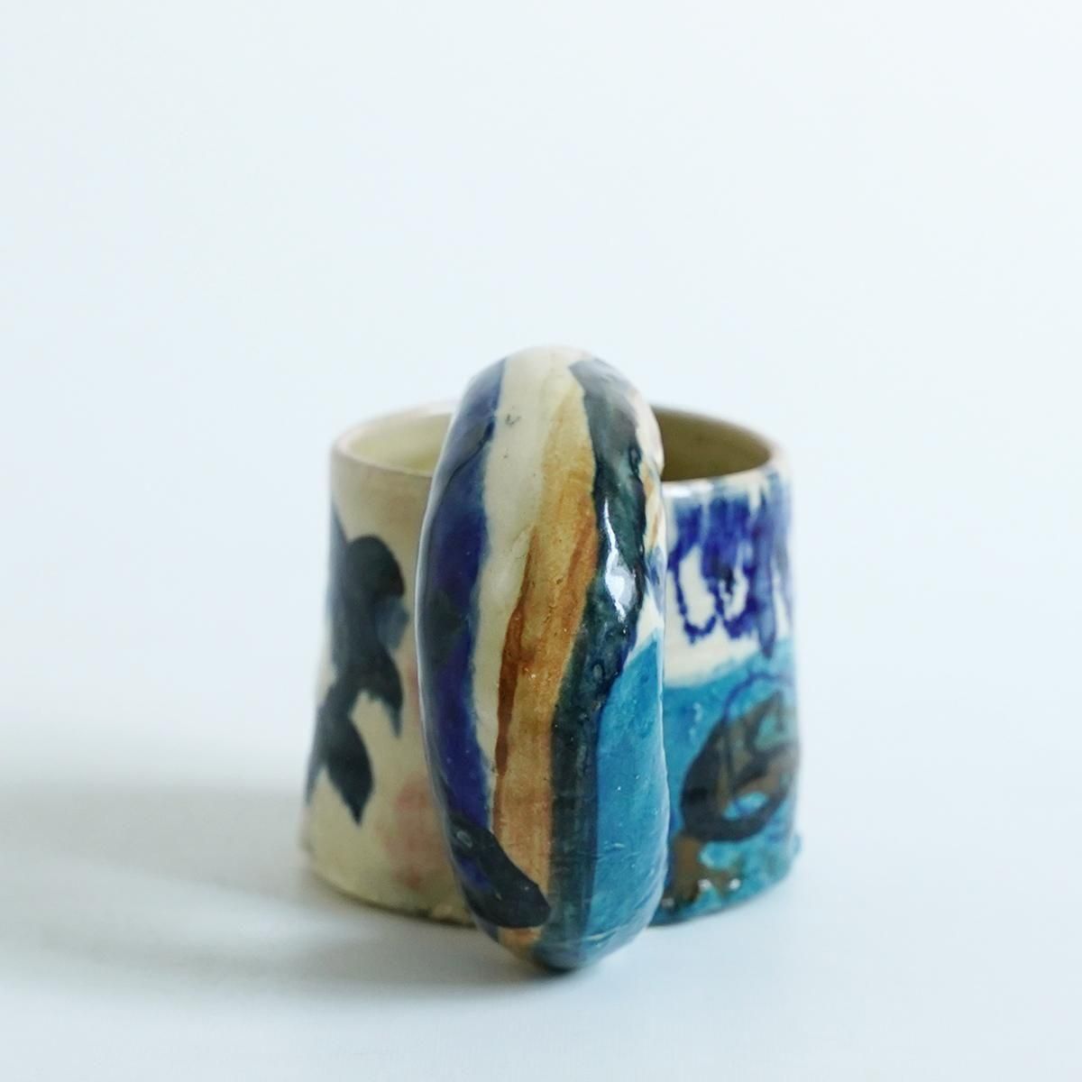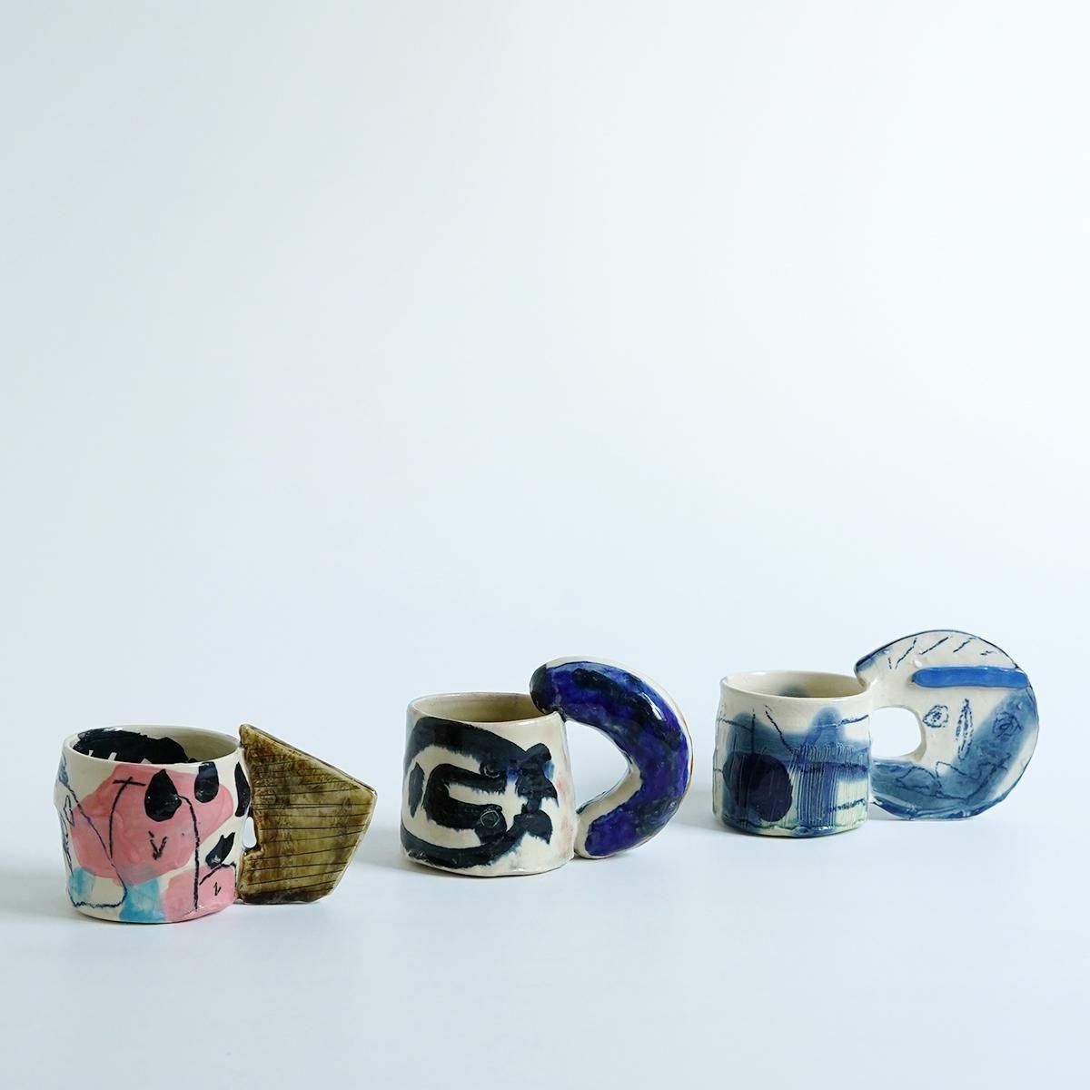佐賀県にて活動されている三浦宏基さんの作品。 野焼きやガス窯などを使い分け、彩りあふれる器やオブジェなどを日々製作されています。自由な発想が行き交うような作品群は、見ているだけで何か強いエネルギーを感じさせてくれます。 こちらは普段使いにぴったりのマグ。 飾っておくだけで絵になるアイテムです。たっぷりとした容量とフォルムが楽しい作品。 size: D W14cm×D9.5cm×H8.4cm E W17cm×D8cm×H10cm F W14cm×D8.8cm×H10cm (お写真1枚目左から)D、E、F 取り扱い店舗:dieci天神橋店 ※小さい欠けや傷、ひびがある場合がございます。製作途中に出来たものですので、作品の風合いとしてお楽しみください。