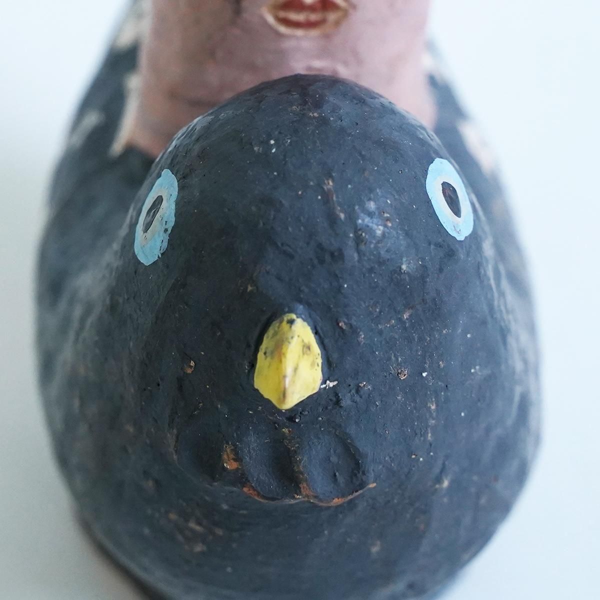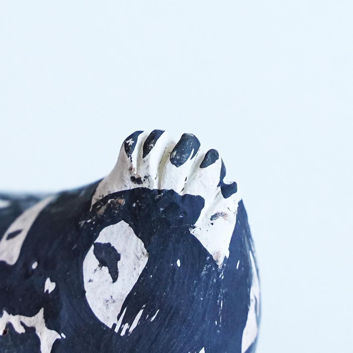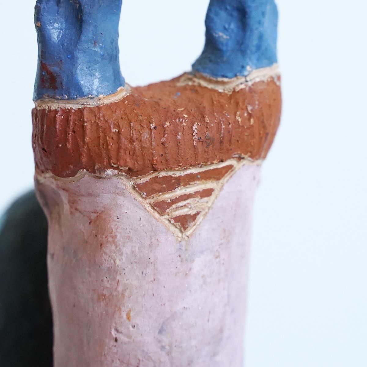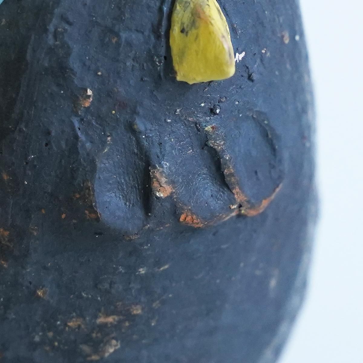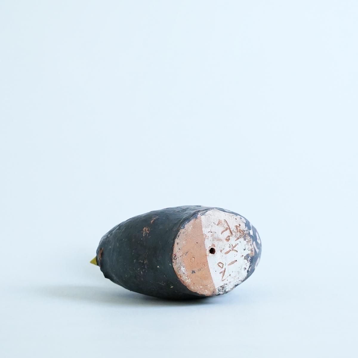 佐賀県にて活動されている三浦宏基さんの作品。 野焼きやガス窯などを使い分け、彩りあふれる器やオブジェなどを日々製作されています。自由な発想が行き交うような作品群は、見ているだけで何か強いエネルギーを感じさせてくれます。 こちらの作品は野焼きで焼かれたオブジェです。 野焼きならではの、土のようなテクスチャーの仕上がりです。 トリの背中から飛び出した青いツノの人。このちょっと不思議で楽しい組み合わせが、見る人の心をくすぐります。 ひと目見たら忘れられない、インパクトたっぷりの作品です。 お部屋のオブジェとしてお楽しみいただける作品です。 通称「お布団箱」と呼ばれるリサイクルの箱を使ったパッケージにも絵が描かれているので、こちらも作品として飾ることができます。 size:W約8.5cm×H約21.5cm×D約16cm ※小さい欠けや傷、ひびがある場合がございます。製作途中に出来たものですので、作品の風合いとしてお楽しみください。 ※野焼きにて制作されていますので、ススがつくことがあります。家具などに置かれる際はご注意ください。 取り扱い店舗・・・dieci 天神橋店