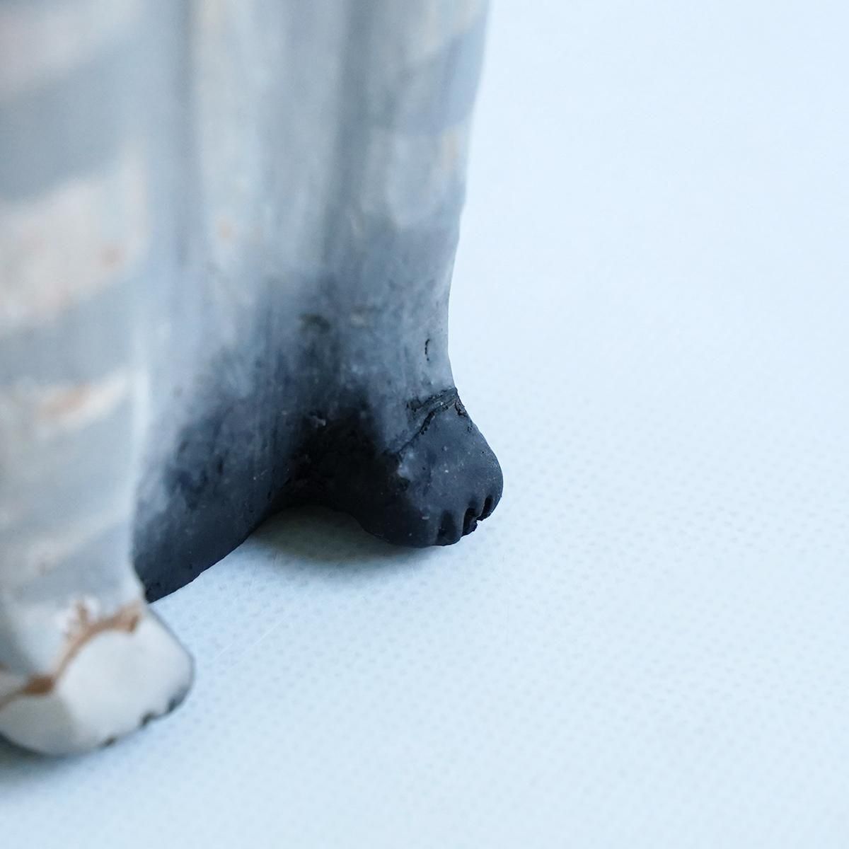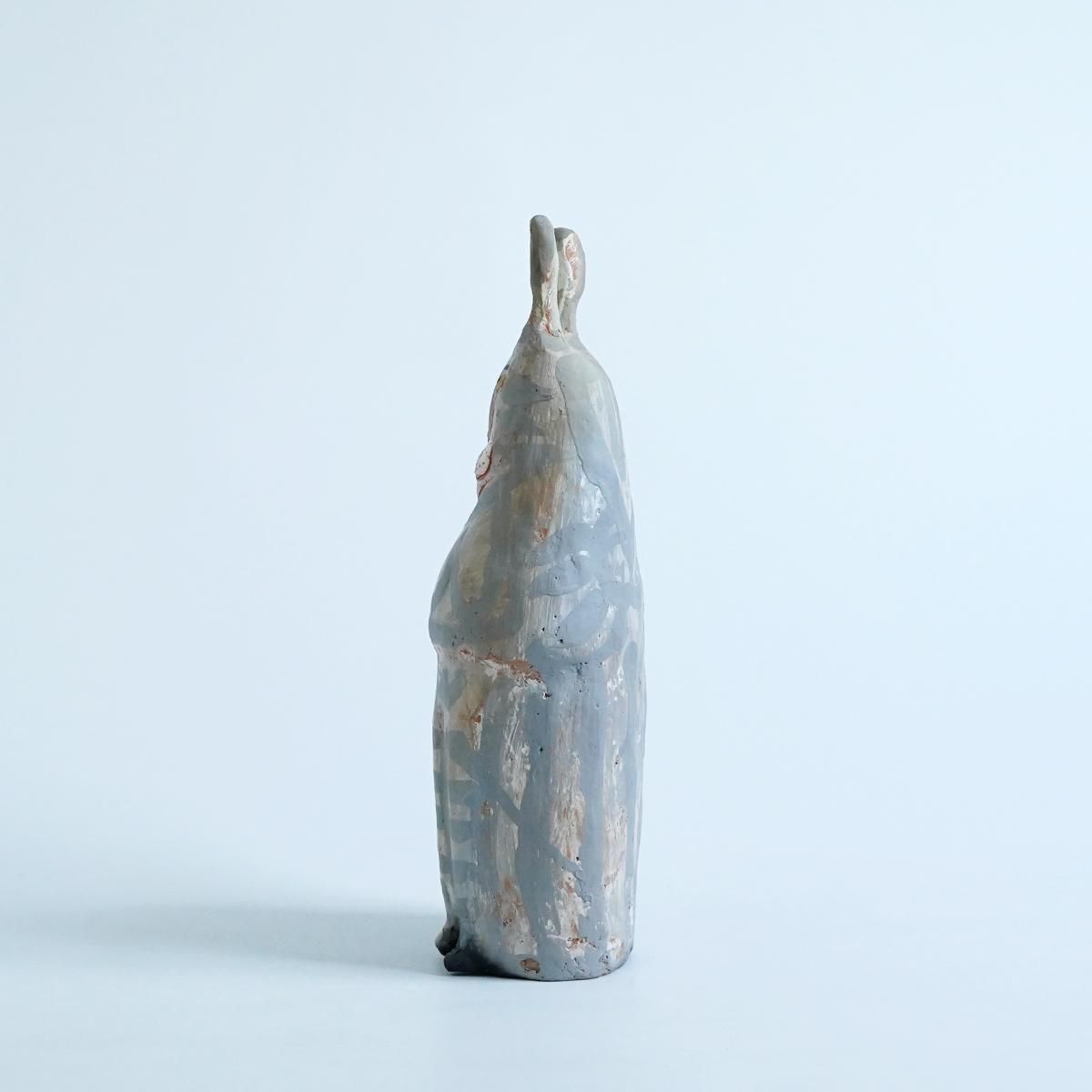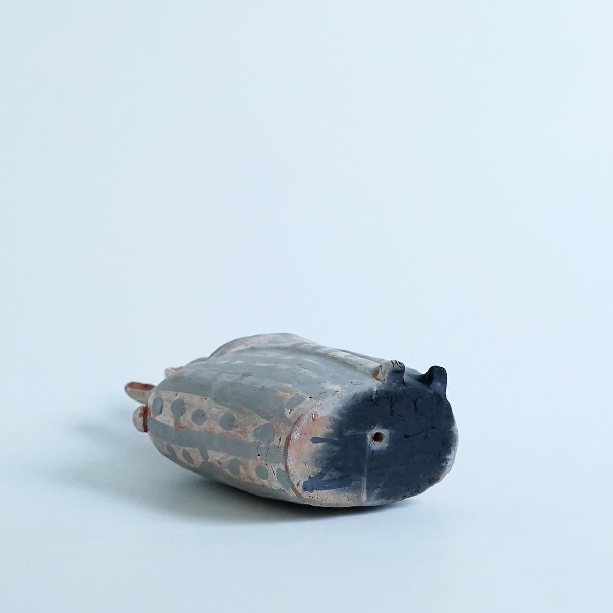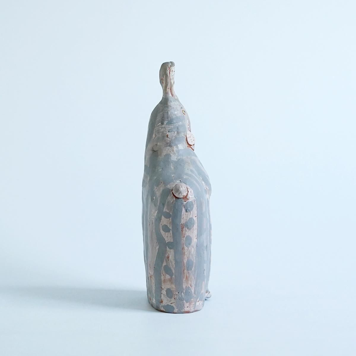 佐賀県にて活動されている三浦宏基さんの作品。 野焼きやガス窯などを使い分け、彩りあふれる器やオブジェなどを日々製作されています。自由な発想が行き交うような作品群は、見ているだけで何か強いエネルギーを感じさせてくれます。 こちらの作品は野焼きで焼かれたウサギのオブジェです。 野焼きならではの、土のようなテクスチャーの仕上がりです。 描かれたリズミカルな模様にウサギの落ち着いた表情が心和む一点です。 存在感があるサイズ感でお部屋に一つ飾るだけでも十分な存在感が伺えます。 通称「お布団箱」と呼ばれるリサイクルの箱を使ったパッケージにも絵が描かれているので、こちらも作品として飾ることができます。 size:W約15.5cm×H約31.5cm×D約8cm ※小さい欠けや傷、ひびがある場合がございます。製作途中に出来たものですので、作品の風合いとしてお楽しみください。 ※野焼きにて制作されていますので、ススがつくことがあります。家具などに置かれる際はご注意ください。 取り扱い店舗・・・dieci 天神橋店