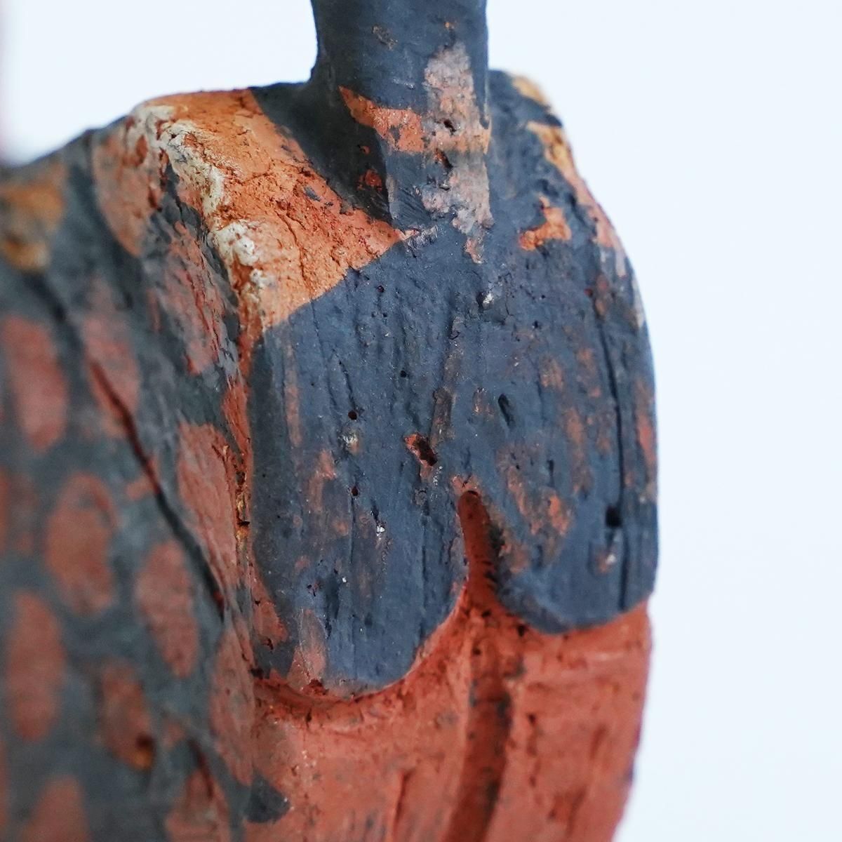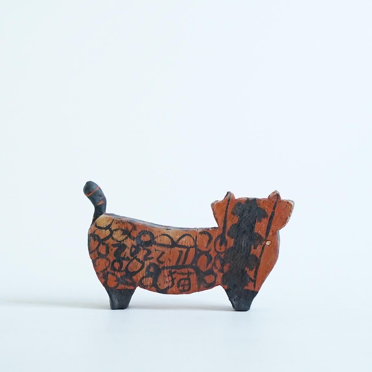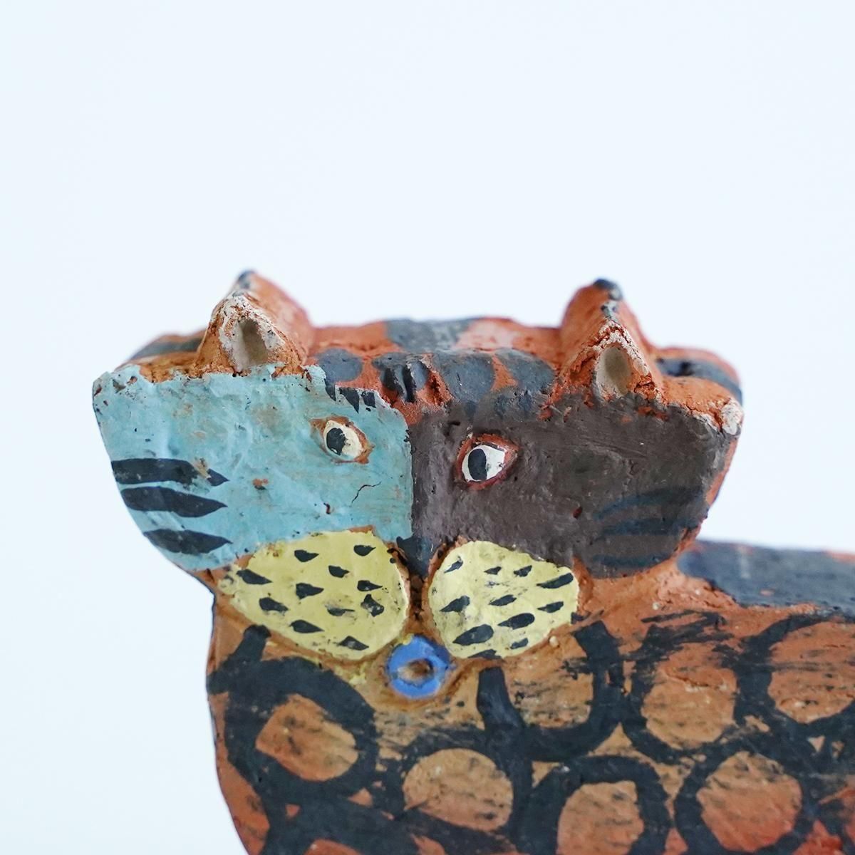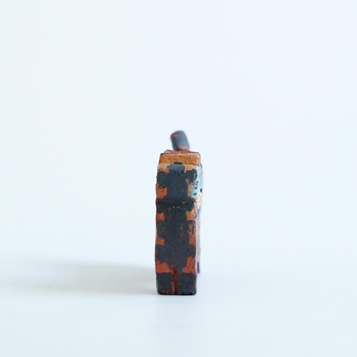 佐賀県にて活動されている三浦宏基さんの作品。 野焼きやガス窯などを使い分け、彩りあふれる器やオブジェなどを日々製作されています。自由な発想が行き交うような作品群は、見ているだけで何か強いエネルギーを感じさせてくれます。 こちらの作品は野焼きで焼かれたネコのオブジェです。 野焼きならではの、土のようなテクスチャーの仕上がりです。 平面的なファルムでありながら、顔の表情と体の模様が目を引く小さめのサイズながらも存在感が感じられる作品です。 コンパクトで飾りやすくお部屋のアクセントとなり楽しめる作品です。 通称「お布団箱」と呼ばれるリサイクルの箱を使ったパッケージにも絵が描かれているので、こちらも作品として飾ることができます。 size:W約16cm×H約9.5cm×D約2.5cm ※小さい欠けや傷、ひびがある場合がございます。製作途中に出来たものですので、作品の風合いとしてお楽しみください。 ※野焼きにて制作されていますので、ススがつくことがあります。家具などに置かれる際はご注意ください。 取り扱い店舗・・・dieci 天神橋店