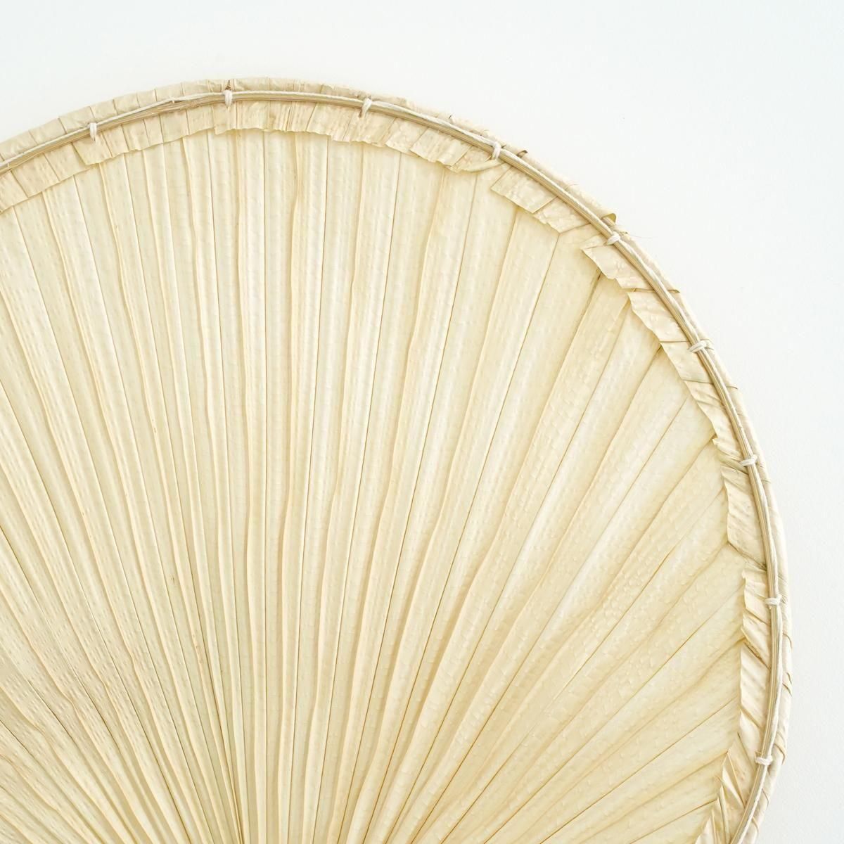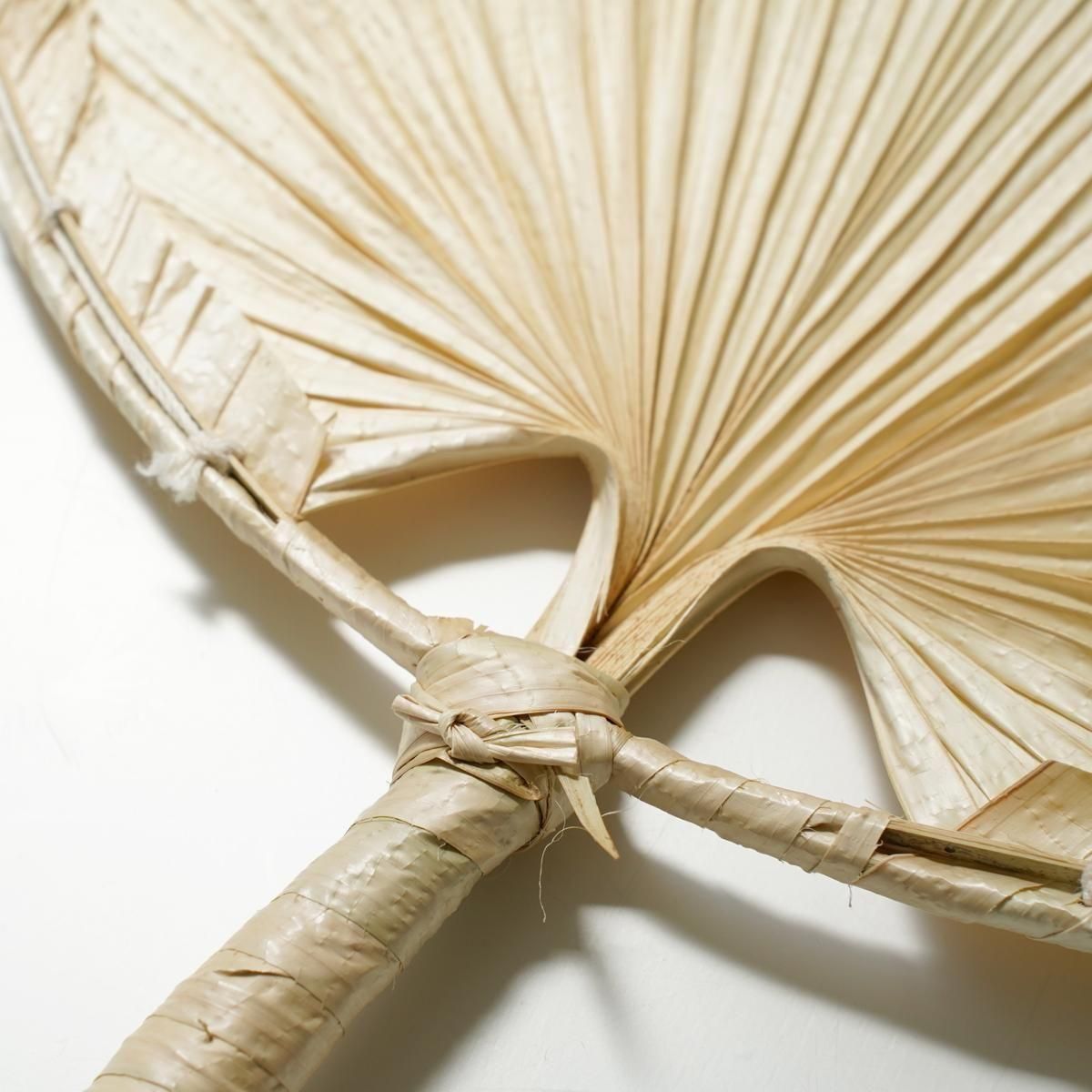 与那国島に自生する椰子の木の仲間であるクバは、一旦乾くと軽くて丈夫。そして撥水性のあることから、使用するシーンを選ばずにお使いいただけます。また、表面積が広く、多くの風を送れる形状で、夏場の涼をしっかりと感じられます。
