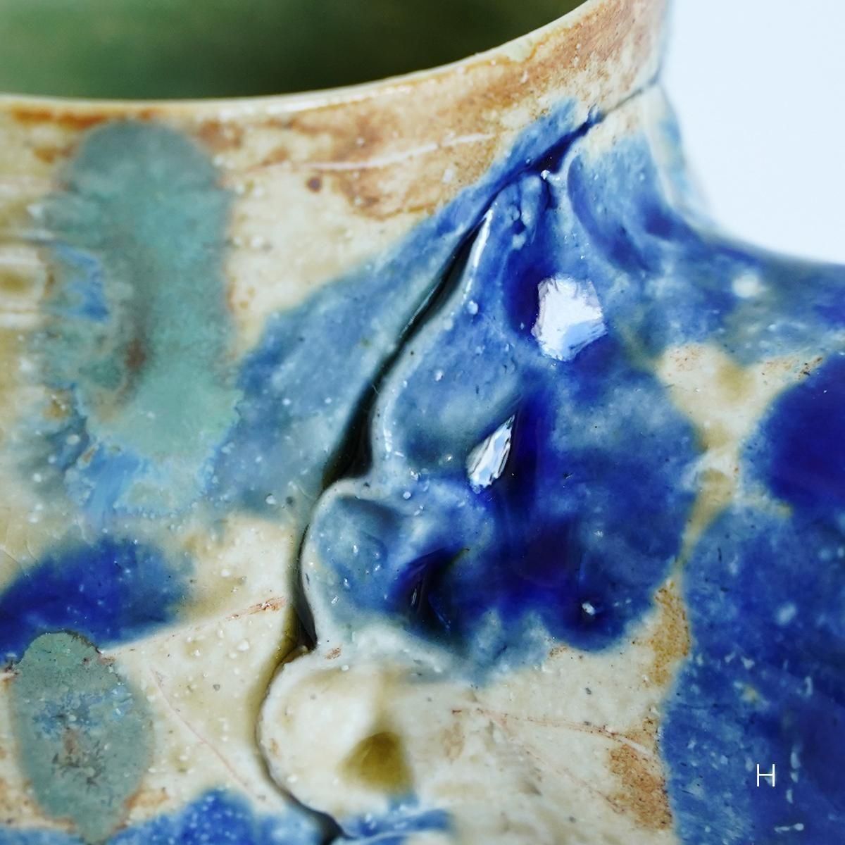 佐賀県にて活動されている三浦宏基さんの作品。 野焼きやガス窯などを使い分け、彩りあふれる器やオブジェなどを日々製作されています。自由な発想が行き交うような作品群は、見ているだけで何か強いエネルギーを感じさせてくれます。 こちらは普段使いにぴったりのマグ。 飾っておくだけで絵になるアイテムです。たっぷりとした容量とフォルムが楽しい作品。 size: G W 11.5cm×D8cm×H9.5cm H W 12.5cm×D8cm×H10cm I W 17.5cm×D9.8cm×H9.5cm (お写真1枚目左から)G、H、I 取り扱い店舗:dieci天神橋店 ※小さい欠けや傷、ひびがある場合がございます。製作途中に出来たものですので、作品の風合いとしてお楽しみください。