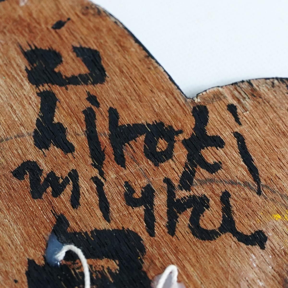 佐賀県にて活動されている三浦宏基さんの作品。 野焼きやガス窯などを使い分け、彩りあふれる器やオブジェなどを日々製作されています。自由な発想が行き交うような作品群は、見ているだけで何か強いエネルギーを感じさせてくれます。 こちらの作品は、木の板にハンドペインティングで描かれた女の子「日々好日ちゃん」。なんとも言えない可愛らしい表情と、素敵な装い。一体一体違った味わいのあるウォールオブジェです。 size:約W34.5cm×H15cm×D0.4cm ※小さい欠けや傷がある場合がございます。製作途中に出来たものですので、作品の風合いとしてお楽しみください。 取り扱い店舗・・・dieci 天神橋店
