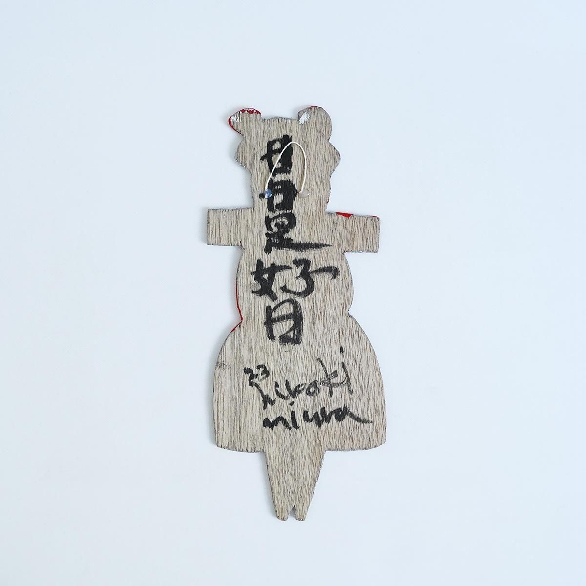 佐賀県にて活動されている三浦宏基さんの作品。 野焼きやガス窯などを使い分け、彩りあふれる器やオブジェなどを日々製作されています。自由な発想が行き交うような作品群は、見ているだけで何か強いエネルギーを感じさせてくれます。 こちらの作品は、木の板にハンドペインティングで描かれた女の子「日々好日ちゃん」。なんとも言えない可愛らしい表情と、素敵な装い。一体一体違った味わいのあるウォールオブジェです。 size:約W32cm×H13cm×D0.4cm ※小さい欠けや傷がある場合がございます。製作途中に出来たものですので、作品の風合いとしてお楽しみください。 取り扱い店舗・・・dieci 天神橋店