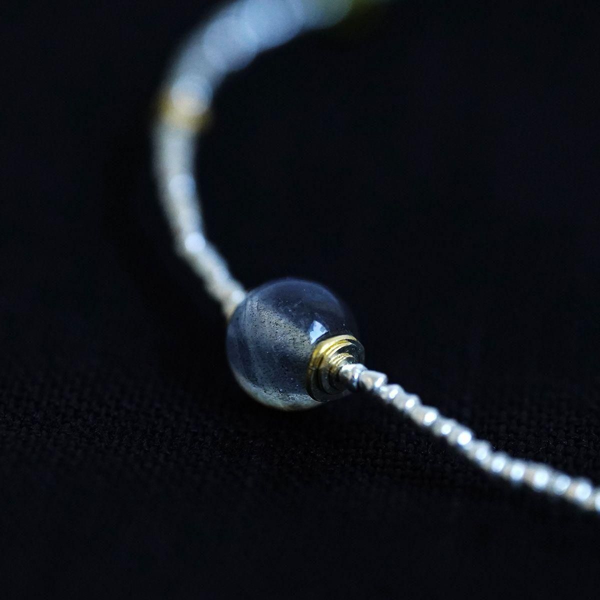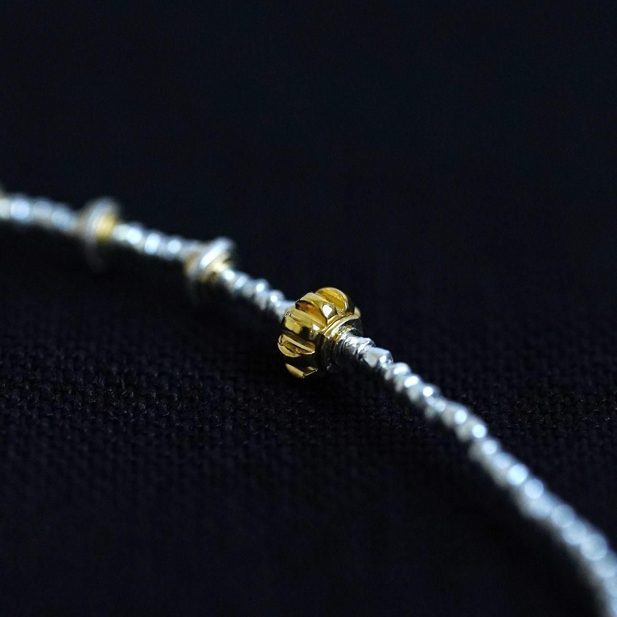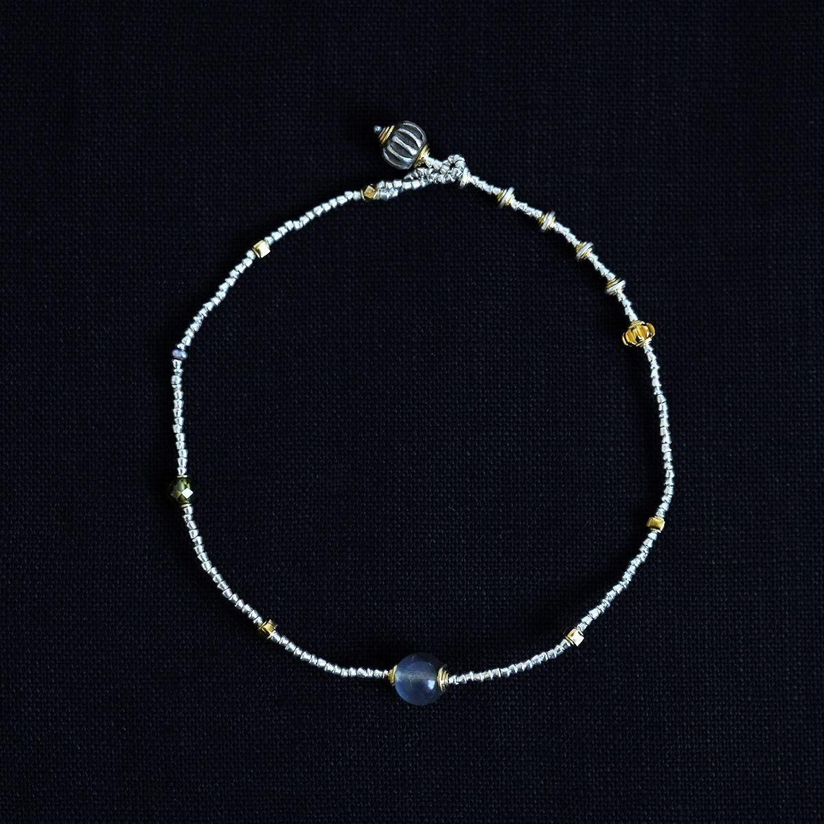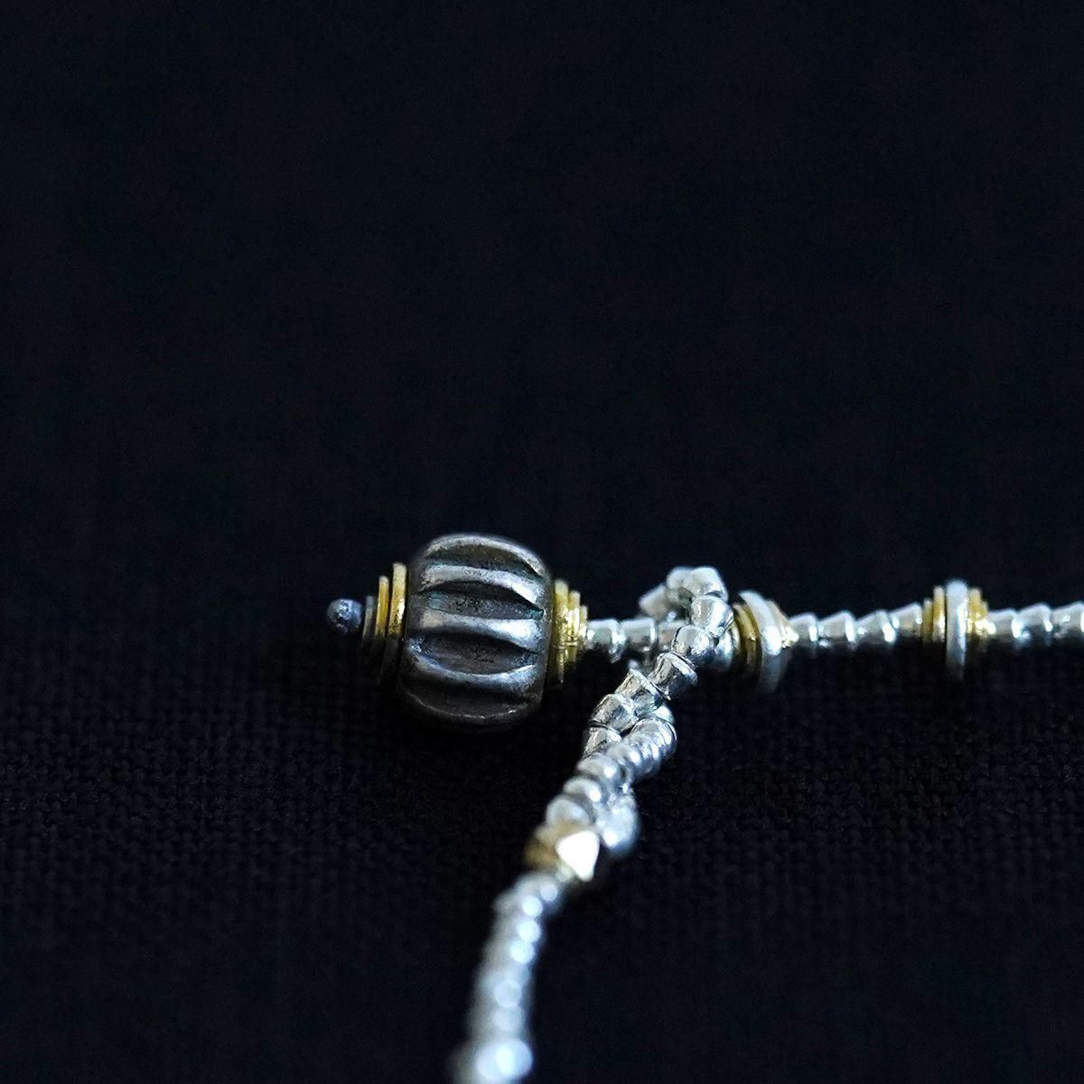 semeno23SSよりアンクレットのご紹介です。インドやヨーロッパで作られた「種子」と呼ばれるシルバービーズなどを使って制作されるsemenoのアクセサリー。国籍や年代を越えて作られたアイテムは意外な程に様々なお洋服にはまってくれます。 25SS ◆gca-01 ・灰色の石 ラブラドライト 現代 「角度や光の具合によって、青、黄、虹色の美しいシラー(光学効果)を見ることができます。」 ・緑色の石 ジルコン 現代 ・銀黒色(極小) 淡水パール(染色) 現代 ・蜜柑型金色 真鍮(金メッキ加工) 現代 ・ストッパー(蜜柑型) オールドシルバー サハラ砂漠 1950年頃まで 「サハラ砂漠、アトラス山脈周辺に住むベルベル人系の部族によって作られたもの。」 ・その他 シルバー(金色部分は金メッキ加工) アジア 現代 *アジャスター付きアンクレット。留めの位置をずらして、サイズ調節ができます。 *size(ベース部分の長さ):23cm お取り扱い店舗…dieci芝川ビル店 *留め部分のビーズを入れる輪は装着時にアクセサリーが外れる事を防止する為、自然に捩れる構造になっています。装着の際はよじれをほどくようにして輪を広げてからビーズを入れて下さい。 *semenoのアクセサリーはアンティークの石やガラスなどを使用しています。そのため、キズ・古色摩耗・カケ等がございます。アンティークの特性をご理解頂き、これらの持つ美しさ・風合いを感じて頂けたらと思います。 【ご購入につきまして】 semenoのアクセサリーのご注文は点数制限がございます。 シーズンごとにおひとりさま最多5点まで、 同一商品のご注文は3点までとなります。 制限を超えるご注文は弊社にてご注文数を調整、またはキャンセルさせていただく場合がございます。予めご了承くださいませ。