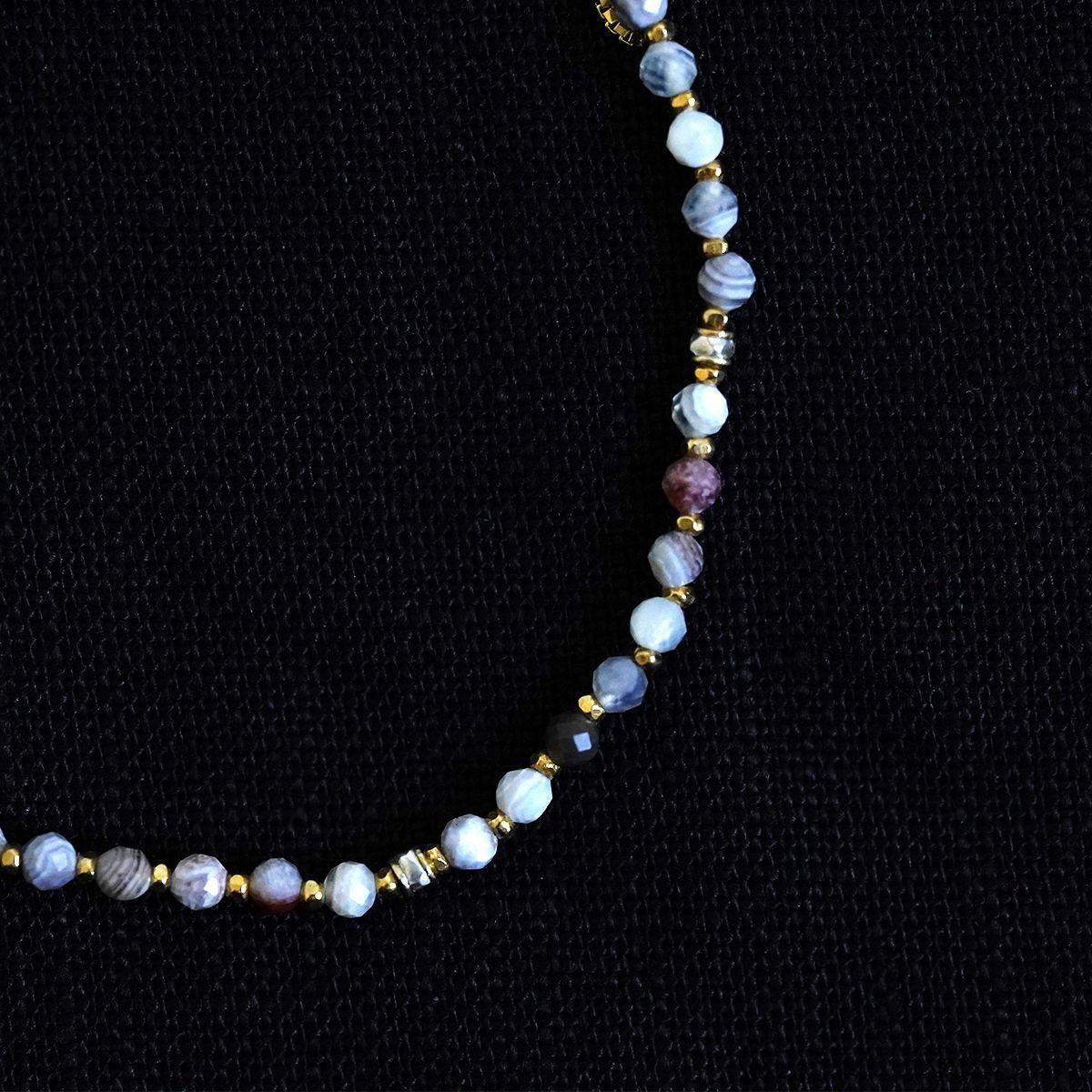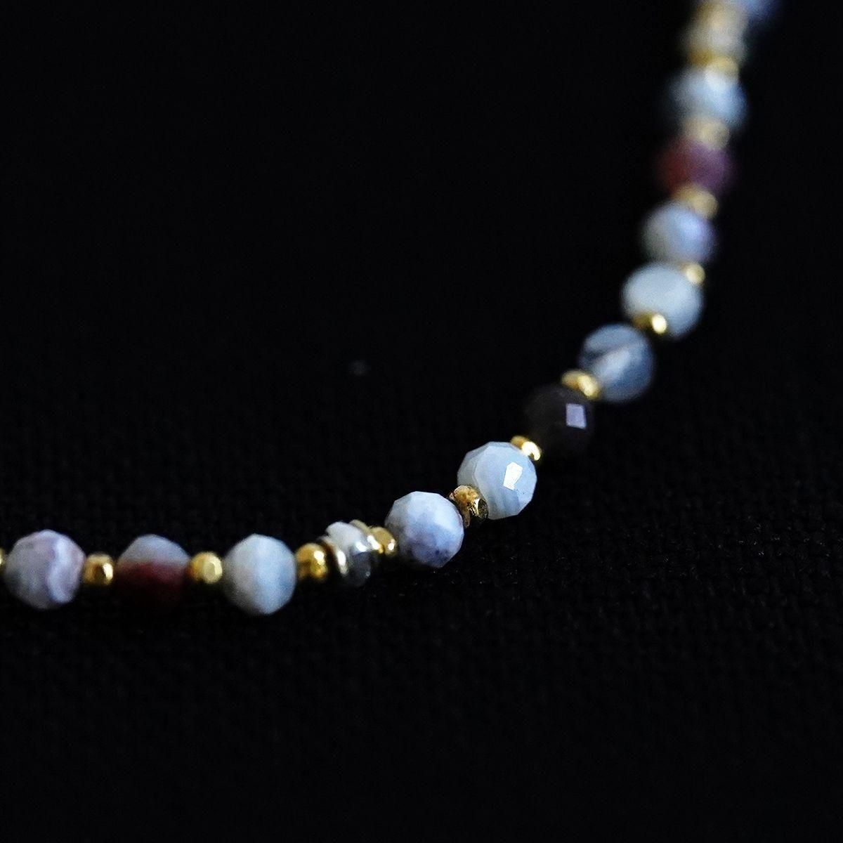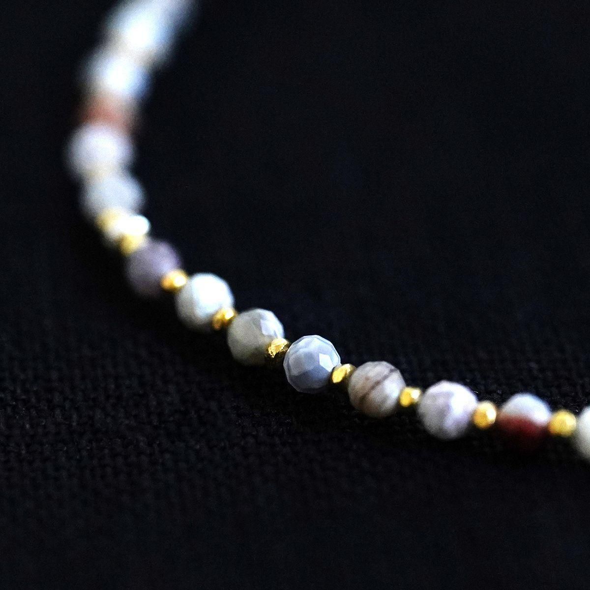 semeno24SSよりブレスレットのご紹介です。 19〜20世紀にインドやヨーロッパで作られた「種子」と呼ばれる小さなガラスのビーズを使って制作されるsemenoのアクセサリー。国籍や年代を越えて作られたアイテムは意外な程に様々なお洋服にはまってくれます。 25SS ◆gcb-01 ・ベースの石 アゲート 南米 現代 「和名はメノウと呼ばれます。細かな石英の結晶が集まった構造で、色合いや模様は様々、それぞれに個性があります。」 ・ストッパー(蜜柑型) オールドシルバー サハラ砂漠 1950年頃まで 「サハラ砂漠、アトラス山脈周辺に住むベルベル人系の部族によって作られたもの。」 ・金色のタッセル シルバー(金メッキ加工) 現代 ・その他 シルバー(金色部分は金メッキ加工) アジア 現代 *size(ベース部分の長さ):17cm お取り扱い店舗…dieci芝川ビル店 *留め部分のビーズを入れる輪は装着時にアクセサリーが外れる事を防止する為、自然に捩れる構造になっています。装着の際はよじれをほどくようにして輪を広げてからビーズを入れて下さい。 *semenoのアクセサリーはアンティークの石やガラスなどを使用しています。そのため、キズ・古色摩耗・カケ等がございます。アンティークの特性をご理解頂き、これらの持つ美しさ・風合いを感じて頂けたらと思います。 【ご購入につきまして】 semenoのアクセサリーのご注文は点数制限がございます。 シーズンごとにおひとりさま最多5点まで、 同一商品のご注文は3点までとなります。 制限を超えるご注文は弊社にてご注文数を調整、またはキャンセルさせていただく場合がございます。予めご了承くださいませ。