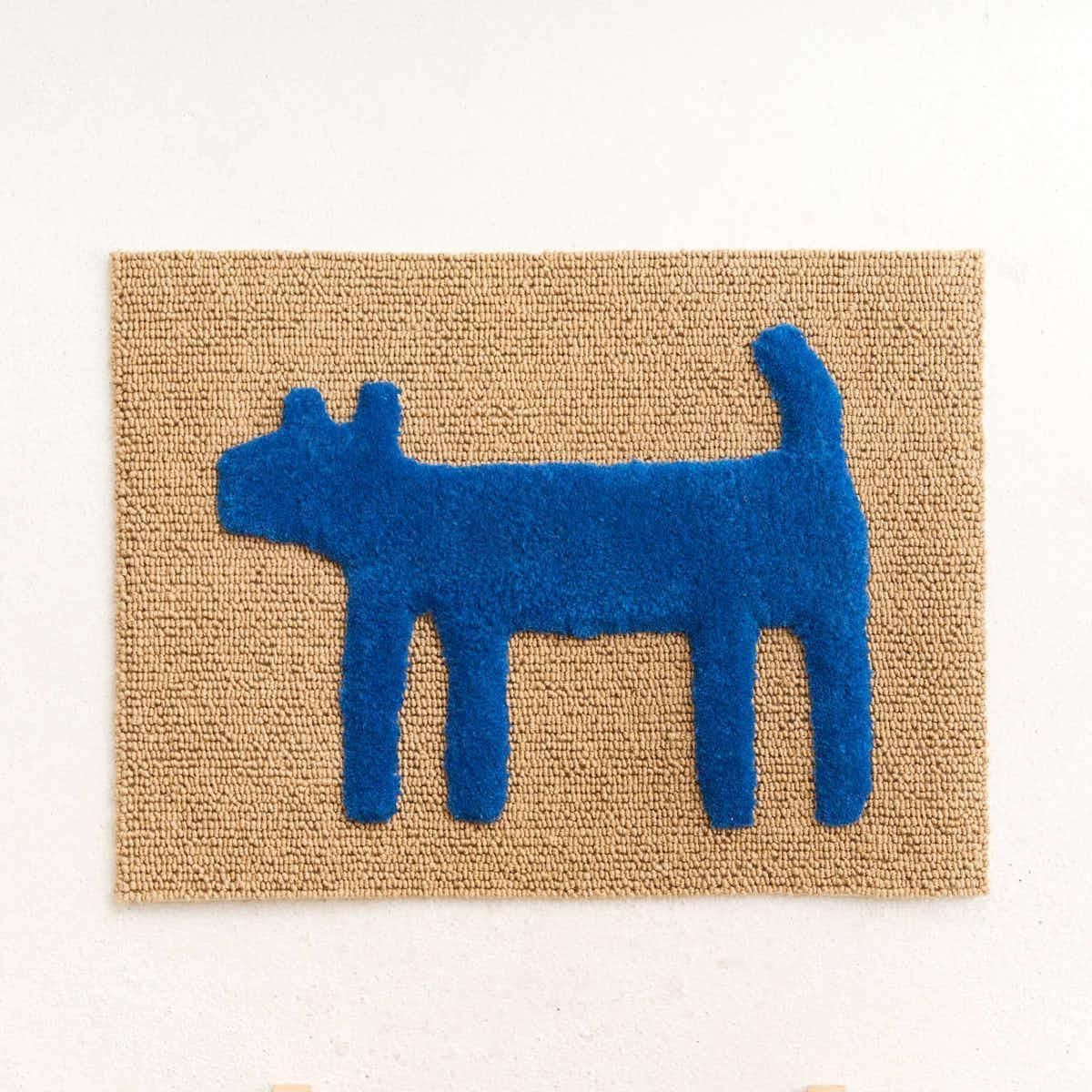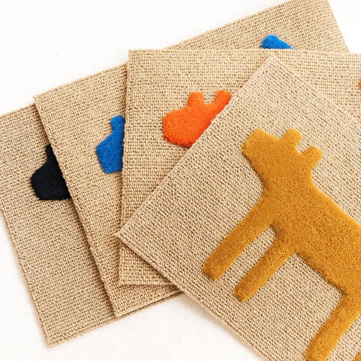 ベースは麻のループ織り。ウールのイヌモチーフの部分が立体的に浮き上がっているのが特徴の「HOUSE(ハウス)」。玄関マット、愛犬の室内用マットとしても使用できます。