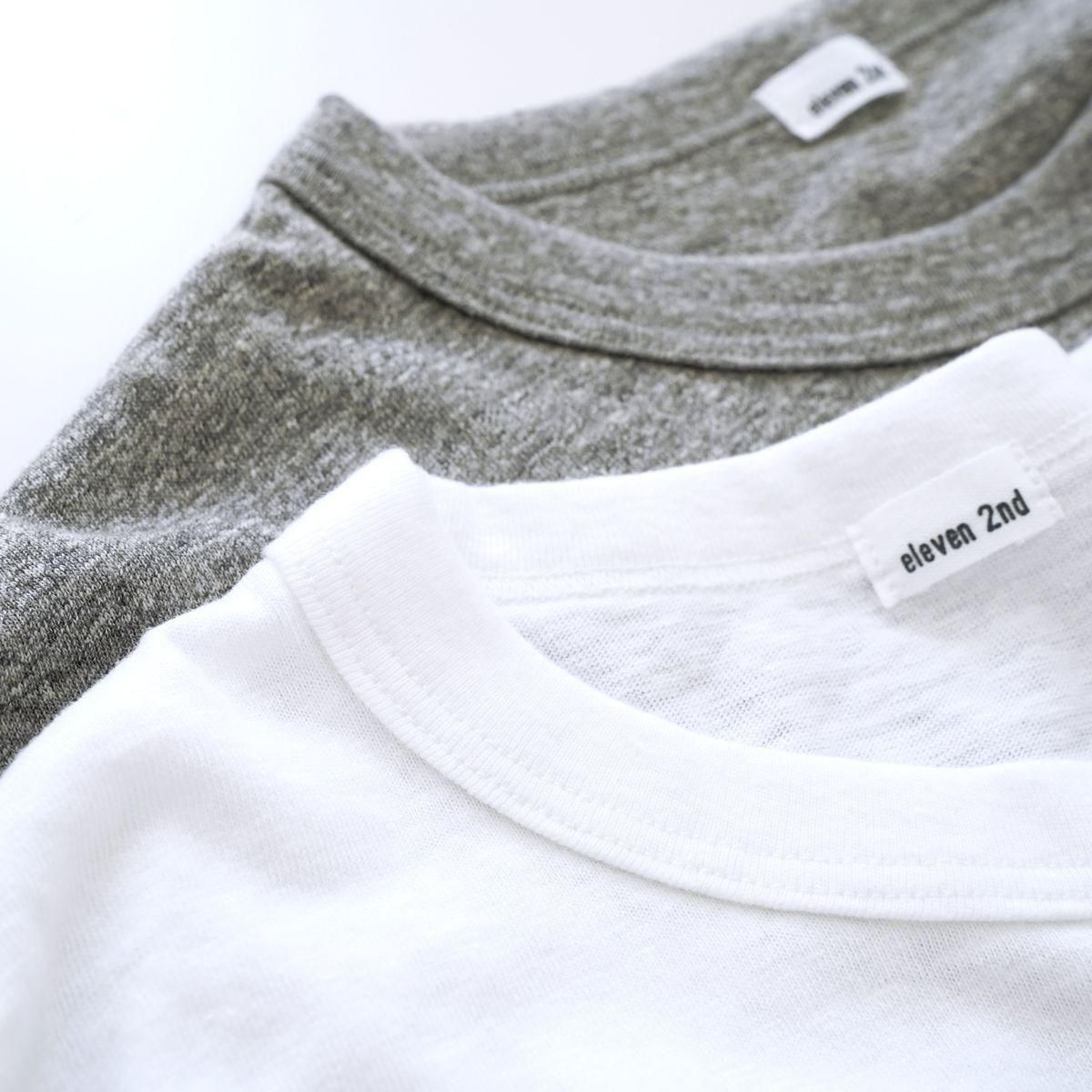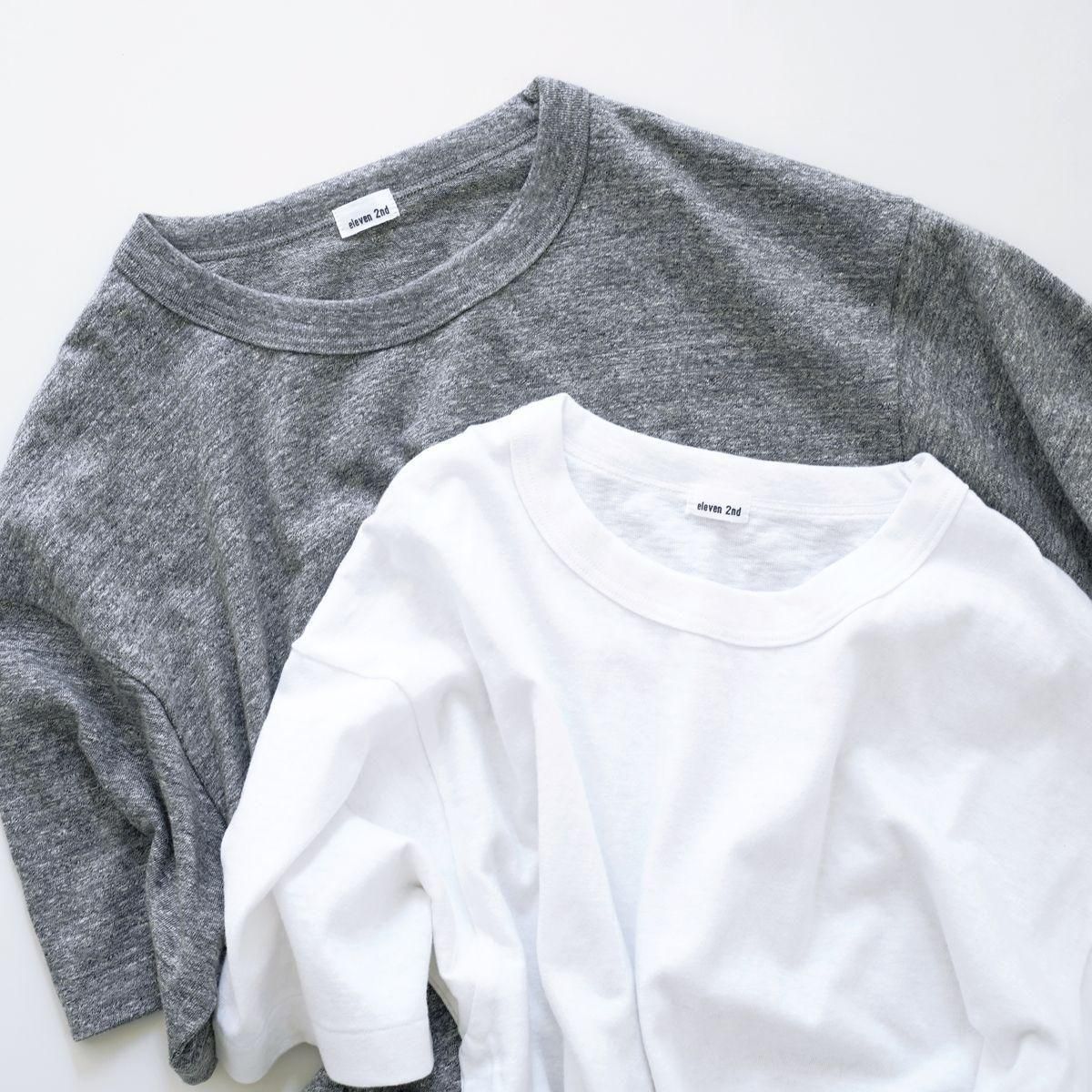 eleven 2ndは橋本靖代さんによる暮らしを意識したニットプロダクトです。20AWより上質なニットウエアやストールを展開しています。 こちらは膨らみのある綿を使用し作られた、とても柔らかく快適な肌ざわりのTシャツのメンズモデル。ゆったりと着たい女性にもおすすめです。 シンプルでベーシックだからこそ、着丈や身幅、生地の厚み等をこだわって作られている1着です。 ムラのある糸を使用することで生地の表面はナチュラルな印象に。 そのまま1枚でワイドパンツやスカートとなどのトップスに、ベストやノースリーブドレスのインナーとしても。便利な一枚です。 size:F(one size) 身幅49cm 着丈66cm 肩幅48cm 袖19cm color:White(6600) /Melange Grey(6600)/Lt.Pink(6800) ※生産時期により価格が異なります。 material: Cotton100% ※素材の特性上、洗濯によりねじれ(斜行)が見られる事があります。 濃い色物は衣料の重ね着の際、摩擦や雨で濡れた状態で移染する恐れがあります。ご注意ください。 model:163cm(White着用) 取扱い店舗…dieci芝川ビル店