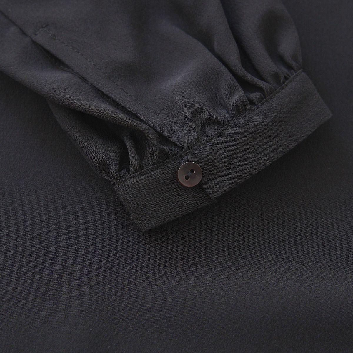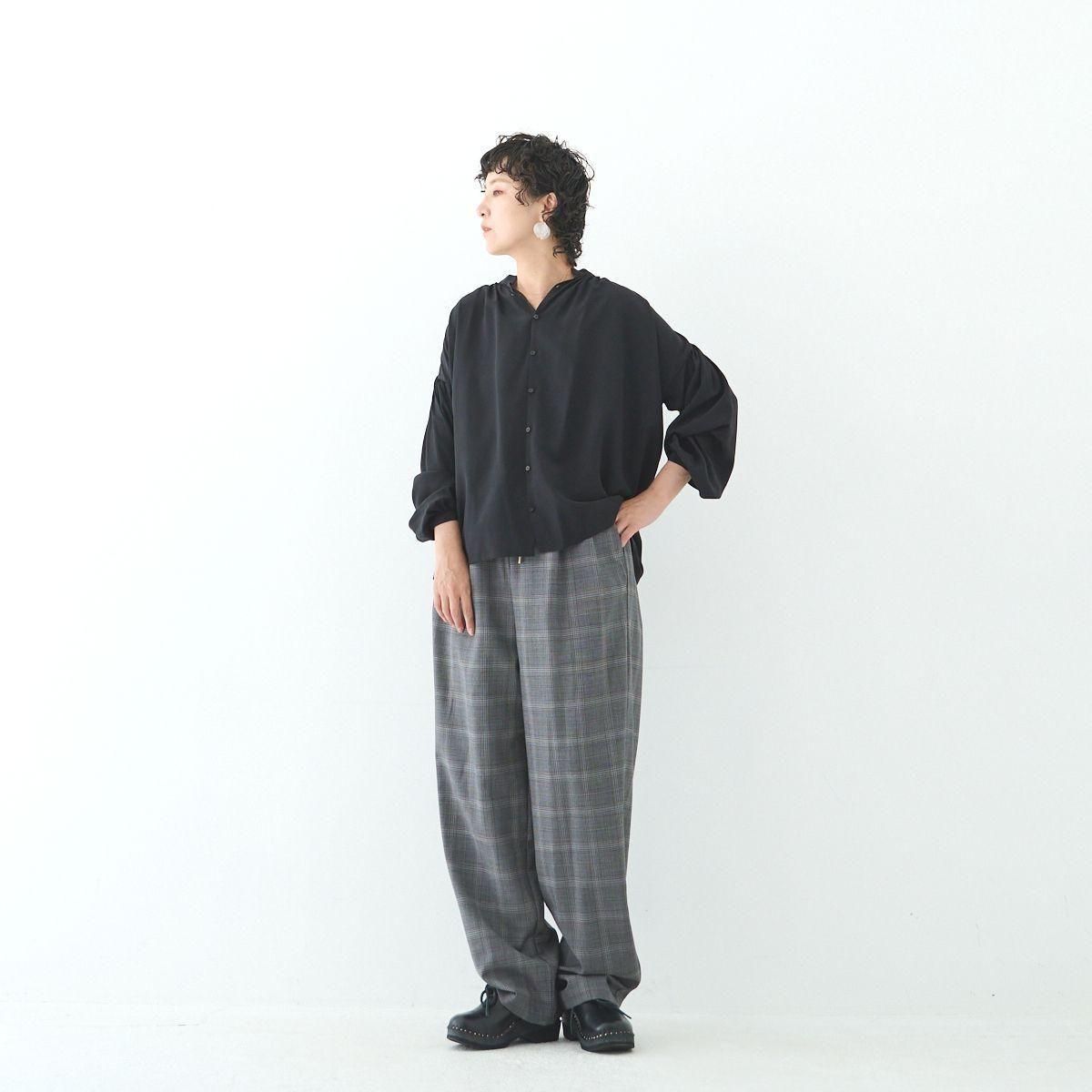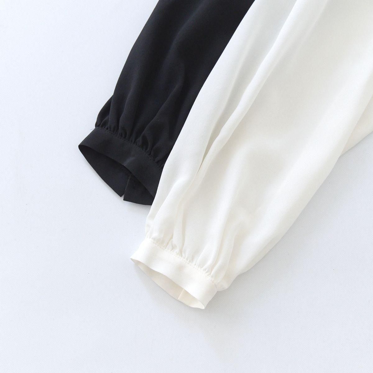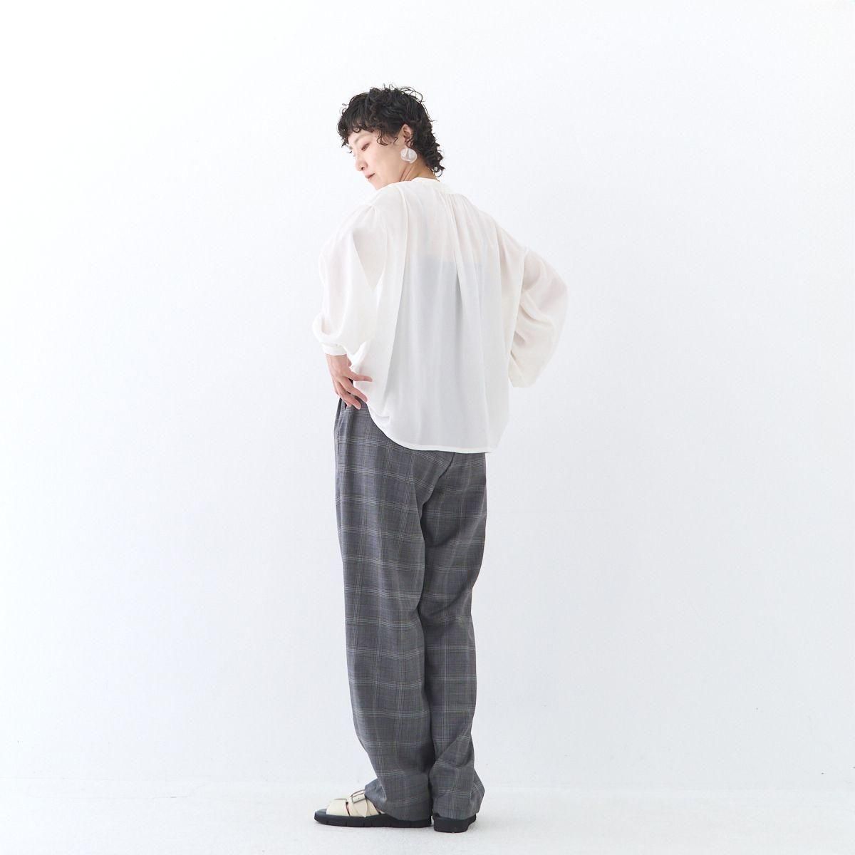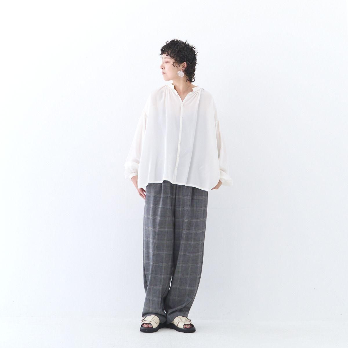 humoresque(ユーモレスク)は、デザイナー 渡辺由夏さんの「ちょうど良い糸を、ちょうど良い形で編んでみたい。」との想いから2012年の秋冬シーズンにニットを中心とした衣服ブランドをスタートし、シルクなど布帛アイテムの展開にも力を入れています。 繊細なシルクデシンを使った柔らかなギャザーブラウス。 襟元やアームにたっぷりとギャザーを寄せ、膨らみのあるフォルムに仕上げたhumoresqueの不動の人気のブラウスです。 暖かい季節には1枚で、 寒くなったらニットから小さな立ち襟を覗かせても。 肌触りが良く、保湿、保温に優れているシルク100%のブラウスは季節を問わず着用していただけます。(humoredque引用) size: F 身幅75cm 着丈63cm 裄丈80cm color: white,black material: silk100% 手洗可 ※天然素材を使用しておりますため、織ムラやかすれ、フシやヨレによる不均一さ、 小さなほつれなどがある場合や、画像の色味や風合いと異なる場合もございます。 デリケートな素材もございますので、引っ掛けやひきつれにはご注意ください。 素材によって仕上がりに個体差が出ること、サイズ感、色、風合いについての特徴を、 天然素材ならではの良さとしてご理解の上、ご購入くださいますようお願いします。 シルクは直射日光により黄変しやすいため、陰干ししてください。 シルク糸が痩せてくるため、優しく手洗い、またはドライクリーニングをおすすめします。 model: 163cm お取り扱い店舗・・・dieci芝川ビル店 size_chart