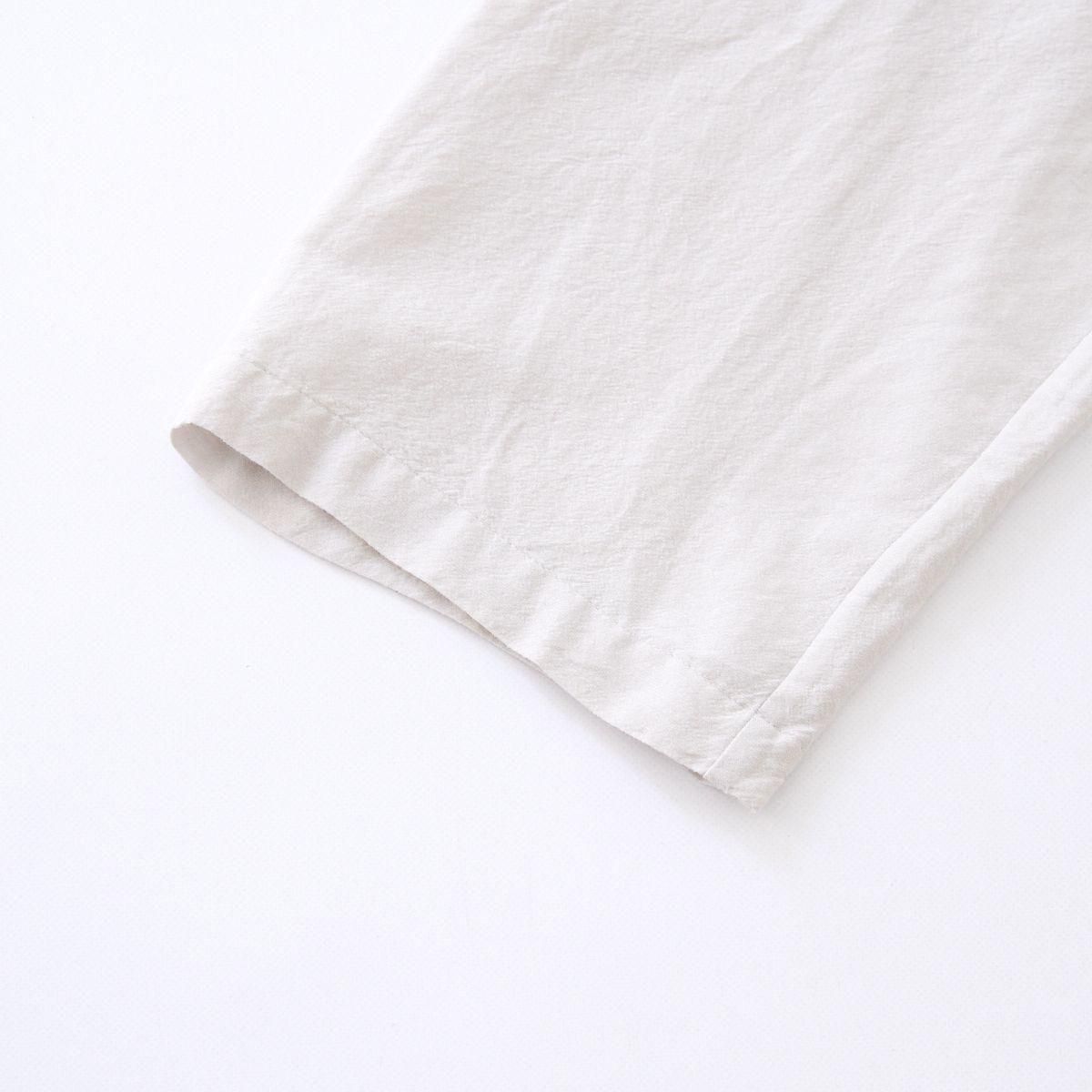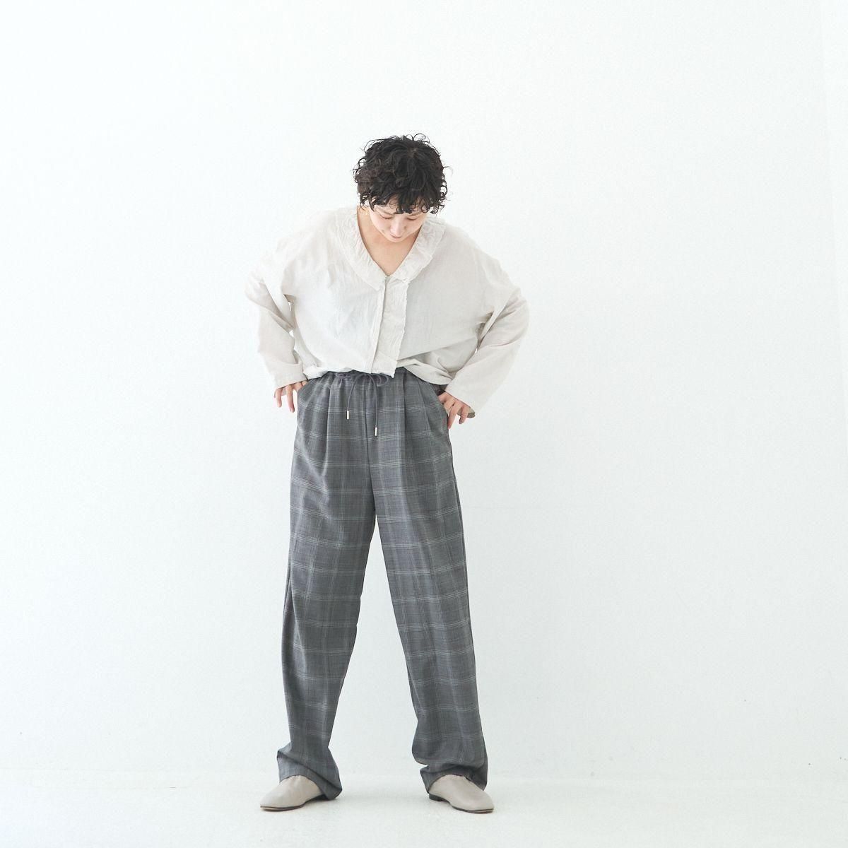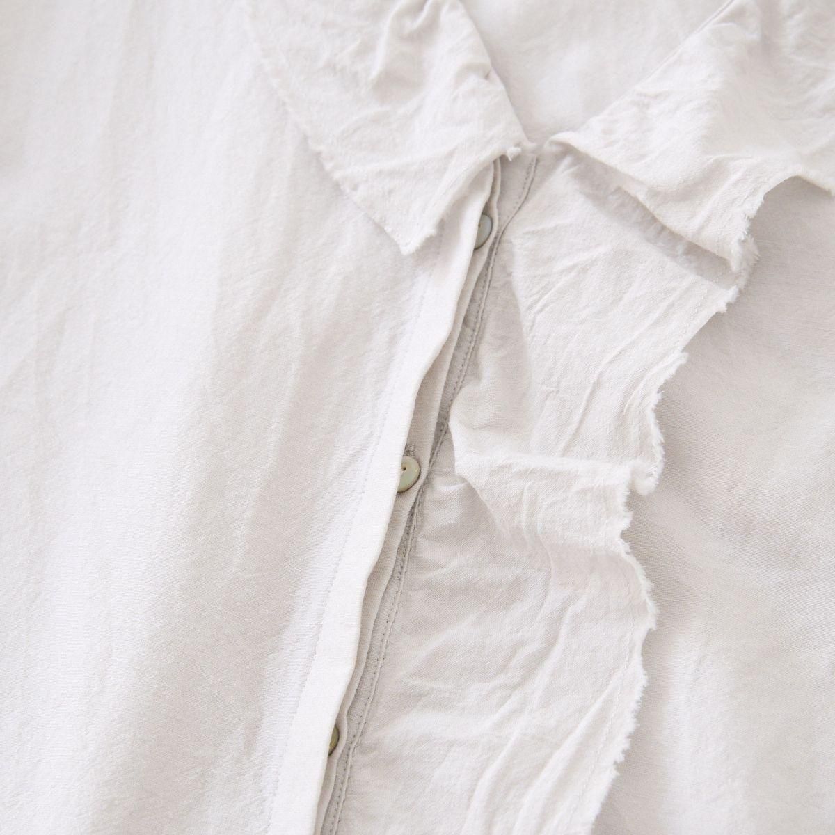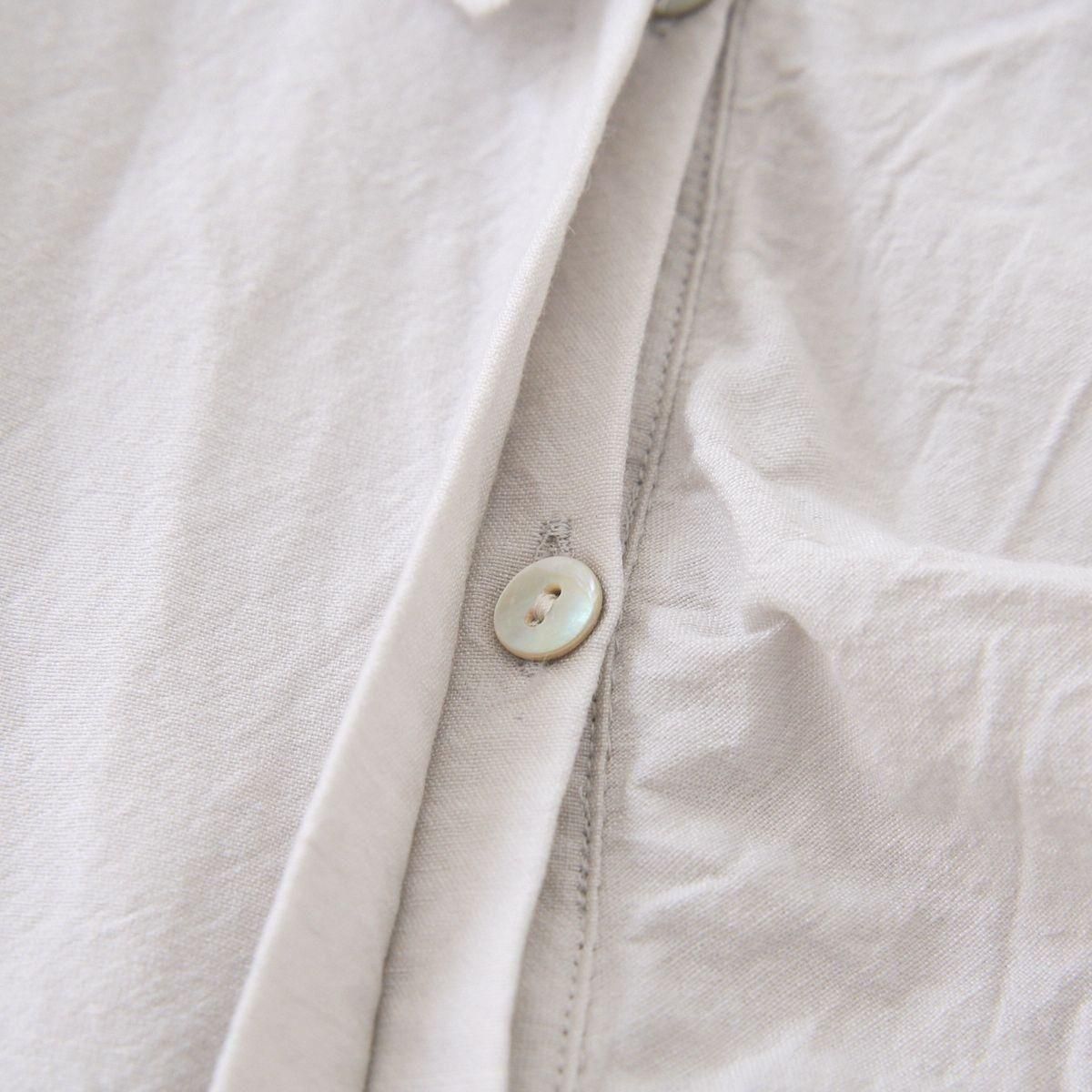 humoresque(ユーモレスク)は、デザイナー 渡辺由夏さんの「ちょうど良い糸を、ちょうど良い形で編んでみたい。」との想いから2012年の秋冬シーズンにニットを中心とした衣服ブランドをスタートし、シルクなど布帛アイテムの展開にも力を入れています。 胸元のフリルが特徴のfurifuri long sleeve blouse。 素材は縦にシルク、横にウールを交織した軽やかなウールシルク。 シルクの光沢感にウールのぬくもりがミックスした素材です。製品洗いをかけることで、フリルが花びらのように広がり、ブラウス全体に愛嬌のある表情に。 襟元からフロントにかけて施された裁ち切りのフリルが程よい甘さを添えつつも、素材の落ち着きによって大人っぽさを漂わせる1枚です。ボタンを留めてブラウスのように着たり、羽織としてラフに纏ったりと、さまざまな表情を楽しめます。 ナチュラルなシワ感が装いにニュアンスをプラスしてくれて、時を重ねるほどに自分だけの風合いに育つブラウスです。 (humoredque引用) size: F 身幅62cm 着丈59.5cm 裄丈78cm color: light gray material: wool80%,silk20% 手洗可 ※天然素材を使用しておりますため、織ムラやかすれ、フシやヨレによる不均一さ、 小さなほつれなどがある場合や、画像の色味や風合いと異なる場合もございます。 デリケートな素材もございますので、引っ掛けやひきつれにはご注意ください。 素材によって仕上がりに個体差が出ること、サイズ感、色、風合いについての特徴を、 天然素材ならではの良さとしてご理解の上、ご購入くださいますようお願いします。 シルクは直射日光により黄変しやすいため、陰干ししてください。 シルク糸が痩せてくるため、優しく手洗い、またはドライクリーニングをおすすめします。 model: 163cm お取り扱い店舗・・・dieci芝川ビル店 size_chart