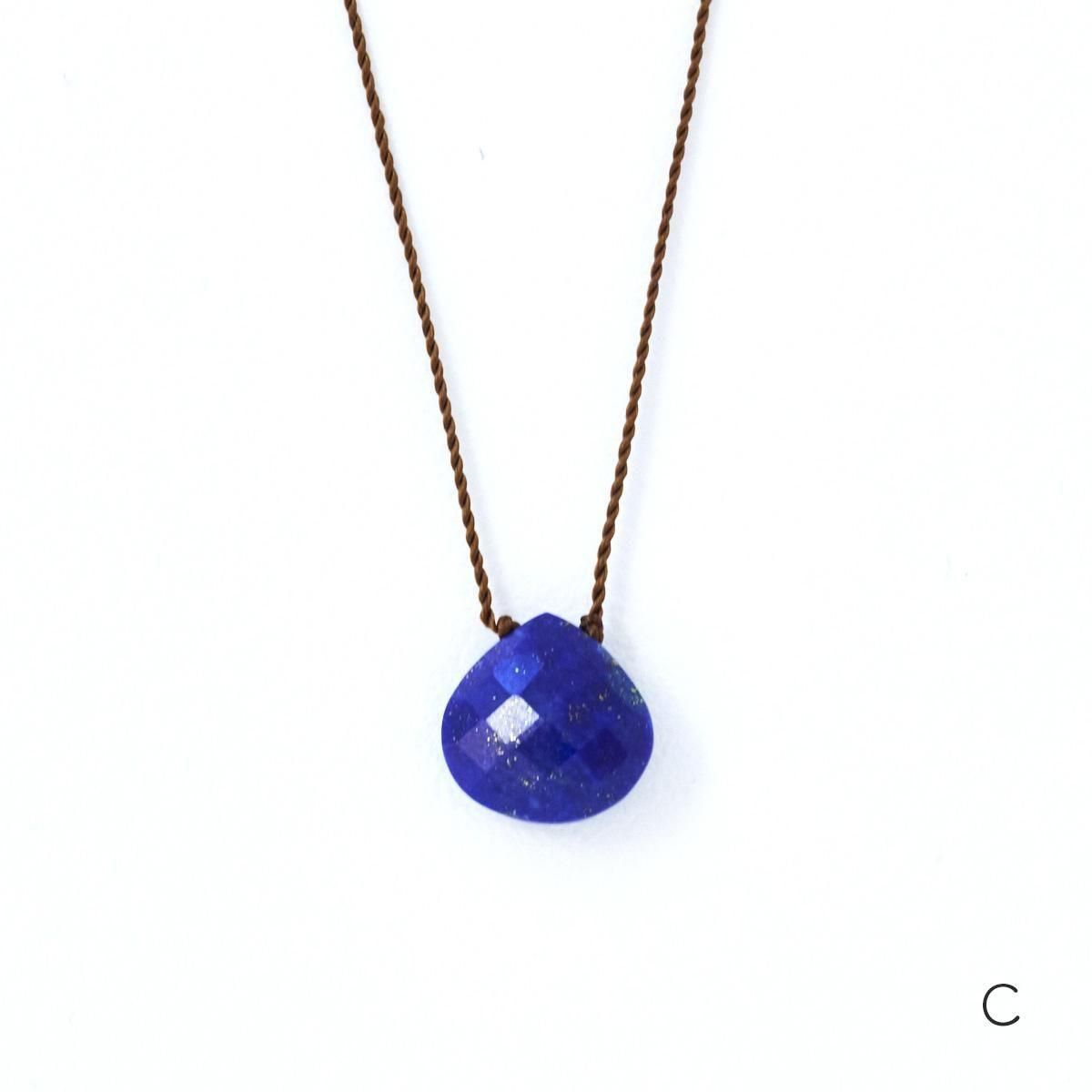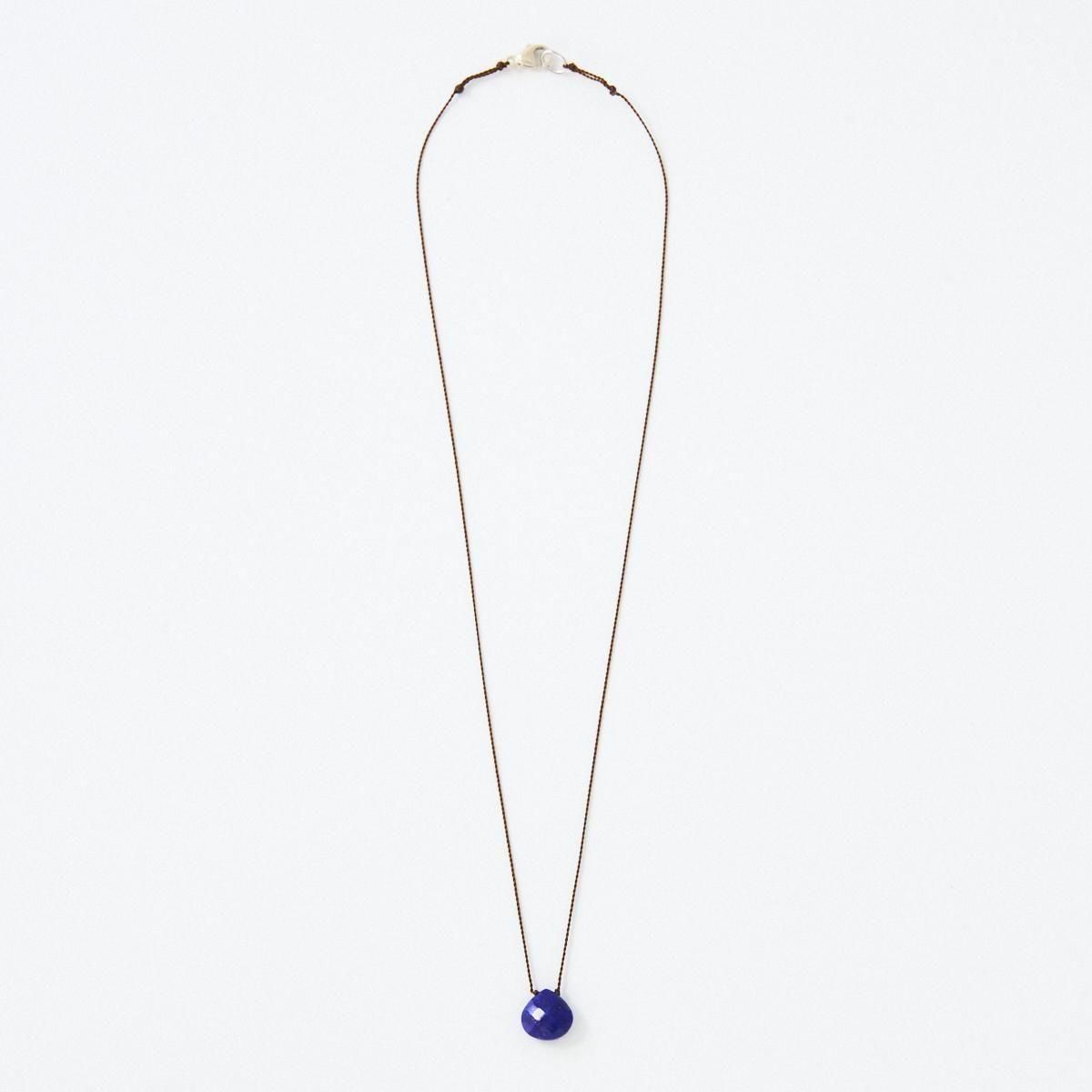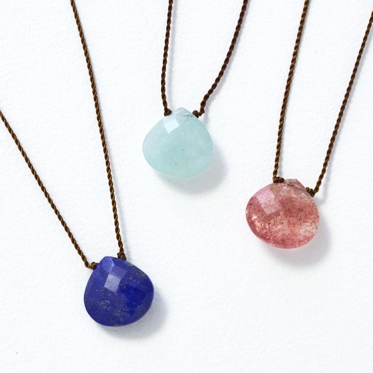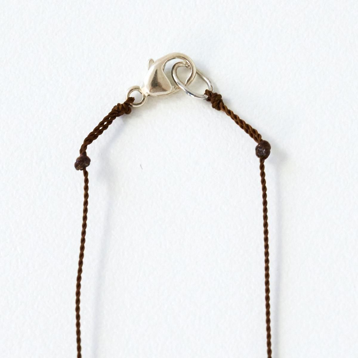 Margaret Solow(マーガレット ソロウ)の天然石×ナイロンコードのネックレス。 チェッカー模様にカットされた天然石(半貴石)は太陽の光を美しく反射させ、その石が持つ天然の色彩を感じられるアイテムです。ナイロンコードと組み合わせてシンプルに仕上げることで、石の存在感がより際立っています。 日々のコーディネイトにもカジュアルに取りいれやすく、リピーターも多い人気のアイテム。気負いなく付けられる、日常使いのアクセサリーにいかがですか。 *すべて天然石のため1点1点、色やカタチが異なります。 また自然物特有のインクルージョン(結晶・亀裂)が含まれるアイテムがあることをご了承ください。 品番:material A:Opaque Aquamarine B:Cherry Quartz C:Lapis 紐部分:ナイロン製 ※引っ張りやねじれに強いものを使用しています。 size:長さ400mm ※サイズ計測の多少の誤差はご了承下さい。 取り扱い店舗・・・dieci kyutaro店2F -------------------------------------------------------- Margaret Solow/マーガレット・ソロウ ロサンゼルスで活動するジュエリーデザイナー。世界中を旅することを好み、異文化や異国の地から受けた刺激をデザインに落としこみ生まれた作品の数々。素材が持つ本質の美しさを引き立て表現した、シンプルでありながら主張のあるアクセサリーを製作しています。天然石の美しさを強調した丁寧な手仕事で、カジュアルでいて洗練されたミニマルな世界感が魅力です。
