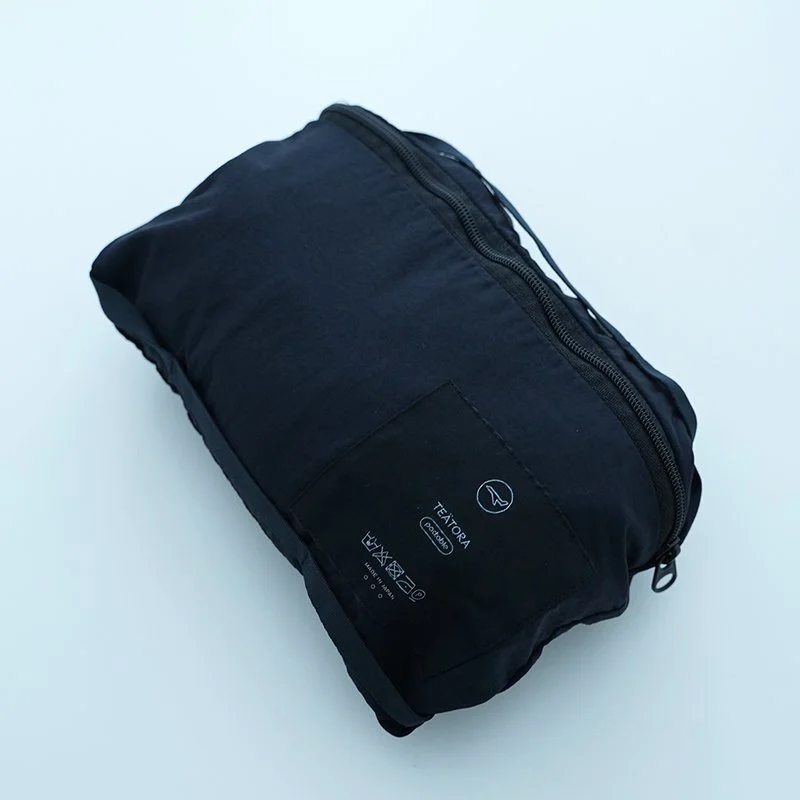 2013年にスタートした、ワークチェアで戦うクリエーターのためのワークウェアメーカーTEATORA。クリエーターのパフォーマンスを向上させることを目的に開発された頭脳職のための機能服。様々なTPOに対して研究、開発されたTEATORAのウェアはあなたの都市生活をよりスマートにしてくれます。 ヒップや股上にゆとりを持たせたゆったりめのシルエットが特徴のWallet Pants RESORT P。 ウエストはゴムと紐によって調整が可能のイージー仕様かつ軽量。 ゆったりとしたワイドテーパードがスタイルに抜け感を出していただけます。 製品染めによって表現された生地はナイロン素材ながら深みのある雰囲気に仕上がっております。 ミクロ単位で起毛したナイロン糸はまるでコットンのような肌触りです。 ベーシックなアイテムはもちろん、上品なアイテムなどとも好相性。 サイドの斜めポケットの向布にロングウォレットサイズに設計された、隠されたファスナーポケットなど収納力も抜群です。 衣服内にある、パッカブルポケットに収納が出来るパッカブルシリーズ。 "旅の荷造りをスマートに。” 衣服内にある、パッカブルポケットに収納が出来るパッカブルシリーズ。 ビジネスに耐える面を持ちながら、畿内ではリラックスでき、雑に扱えるタフさ。 旅の帰路、増えがちな荷物の中にコンパクトに丸めてポンと投げ込めるような、そんなコンセプトから生まれました。 ユニセックス size: 1/2/3 1:ウエスト31~44cm 股上 31cm 股下70cm わたり34cm 裾幅 22.5cm 2:ウエスト32~45cm 股上 31cm 股下71.5cm わたり35cm 裾幅 23cm 3:ウエスト33~46cm 股上 32cm 股下72cm わたり37cm 裾幅 23cm color:DEEP NAVY/BLACK material: nylon 100% model:163cm(BLACK/サイズ2着用,DEEP NAVY/サイズ1着用),173cm(サイズ3着用) 取扱い店舗…dieci芝川ビル店 テキスタイル:PACKABLE パッカブルを可能にしたのは特殊な糸。 ミクロ単位で起毛したナイロン糸は まるでコットンのような肌触りを持ちながら、 シルクのようなハリ・コシを持ち、ナイロンの強度を持つ糸。 その糸をマイクログログラン状の組織に織り上げることで 皺になりにくく、軽く、強く、 天然素材の様な着心地を備えたテキスタイルに。 size_chart