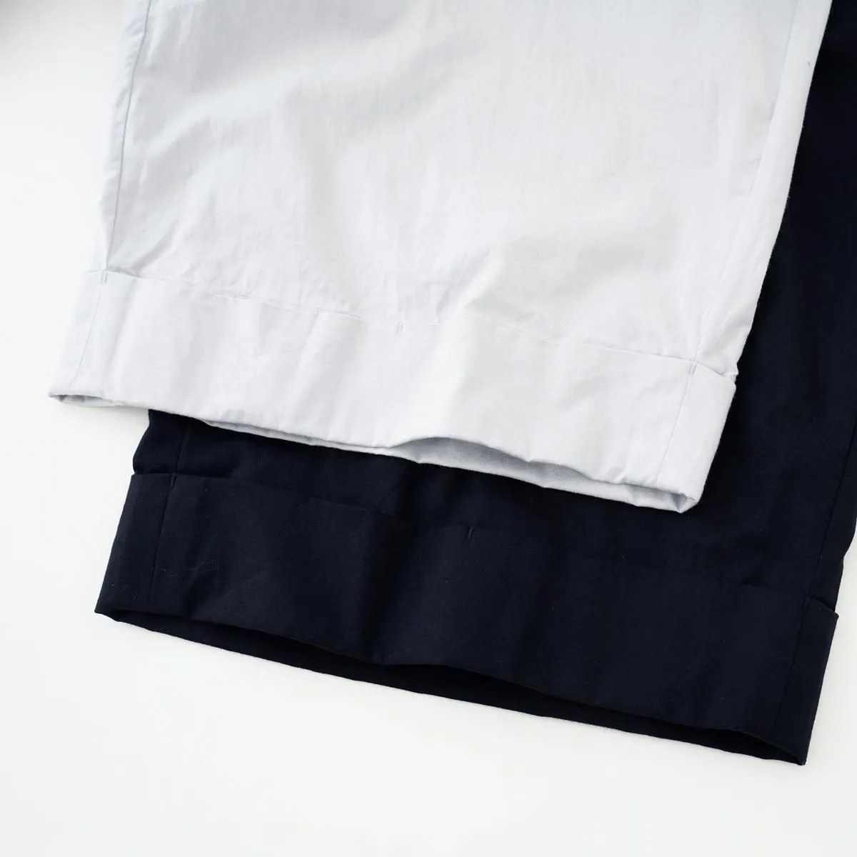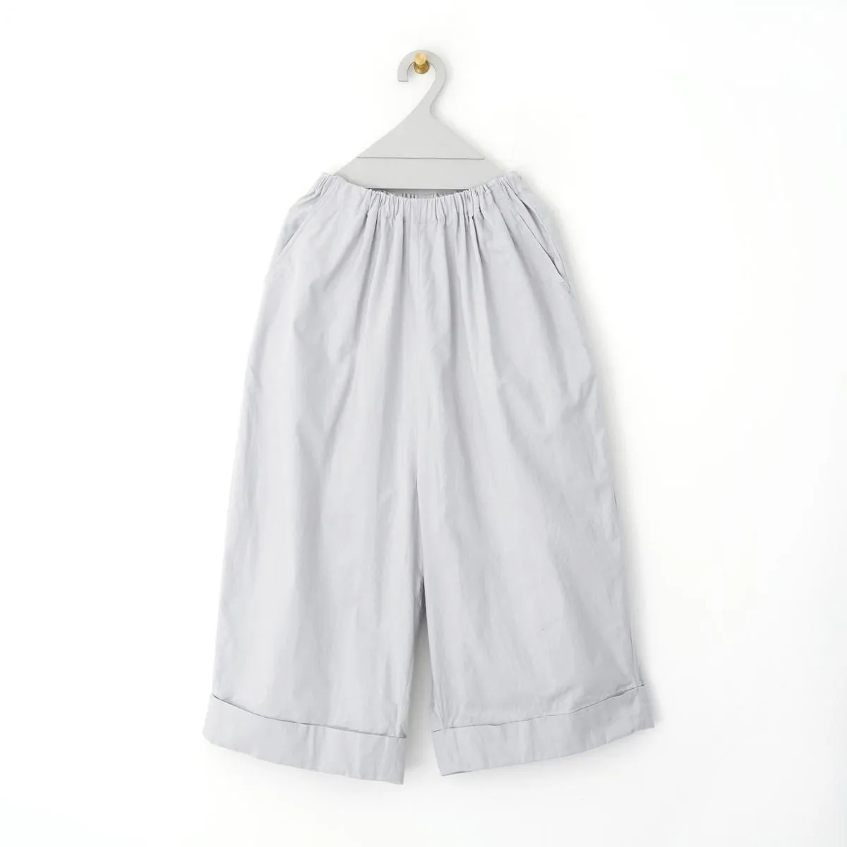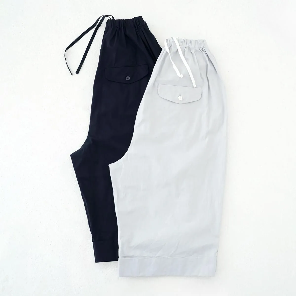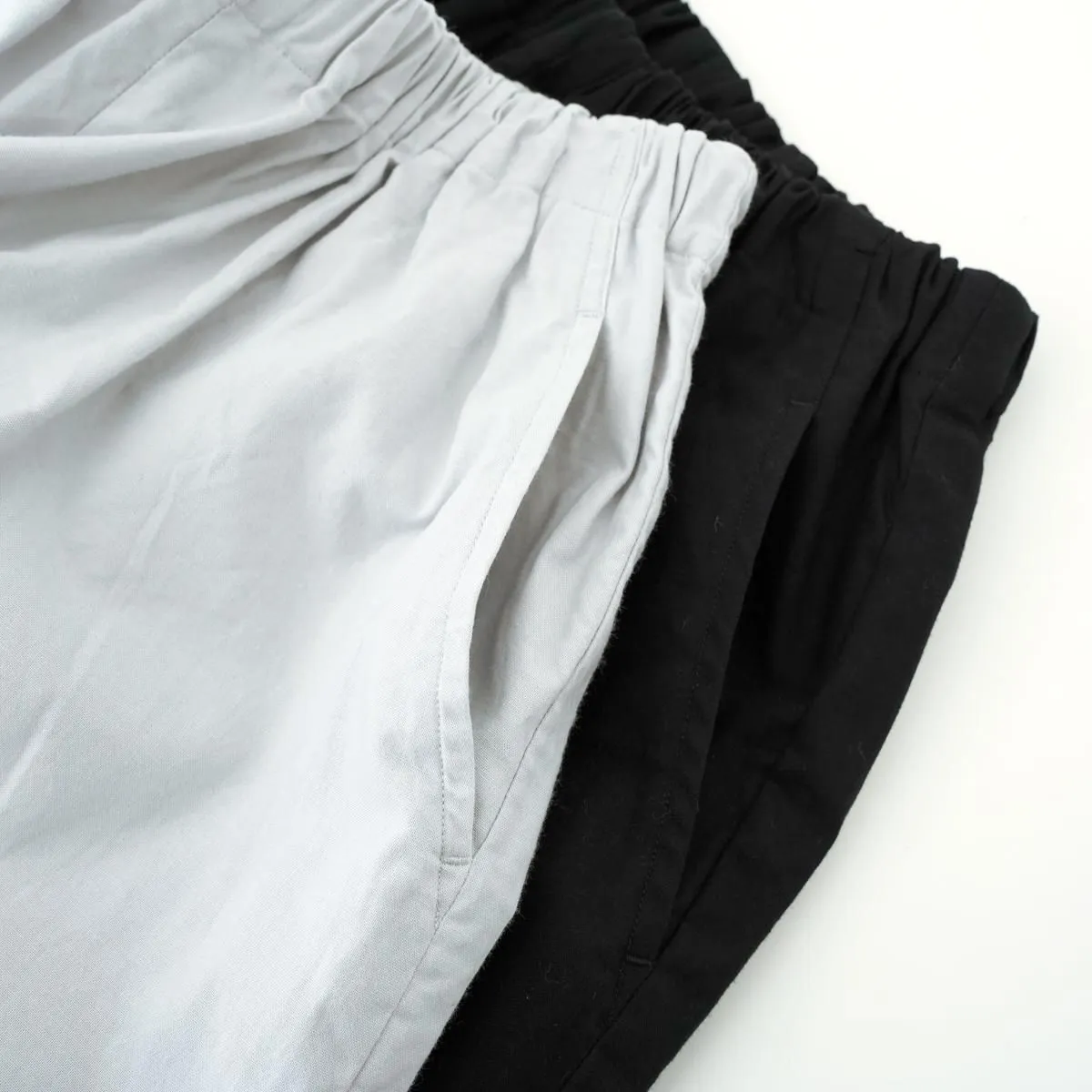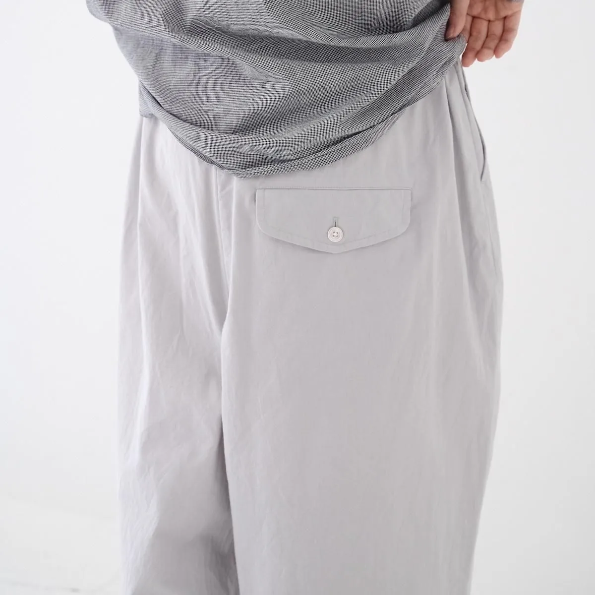 ボクシーなシルエット×8分丈の絶妙なバランスが人気のパンツ。昨年に引き続き登場です。 使用しているポプリンは薄手ながら耐久性が高く、破れにくいタフな生地です。シーズンレスでご着用いただけます。 ウエストはゴム仕様でたっぷりとギャザーが寄せられていますが、生地に落ち感があるので、スッキリとしたシルエット。裾部分は折り返しのデザインになっています。深めの股上で後ろ姿まで愛らしいのもポイントです。8分ほどの短めな丈を活かして、タイツやレギンスのカラーを楽しんでみても。一見個性的ですが実はとてもバランスが取りやすい、おすすめの一枚です。 2025AW size:2(one size) ウエスト〜40cm 股上48.5cm 股下39cm わたり41cm ※サイズ計測の多少の誤差はご了承下さい。 color:ライトグレー/ブラック material:コットン100% model:168cm 取り扱い店舗・・・dieci kyutaro店 2F -------------------------------------------------------- ゴーシュ 普遍的な新しさをテーマに、カッティングやテキスタイルにこだわり、シンプルながらこだわりを感じることが出来る、飽きの来ない衣服を生み出すブランド。日常に寄り添う着心地の良さ、凛とした静かな美しさを追求しています。 size_chart
