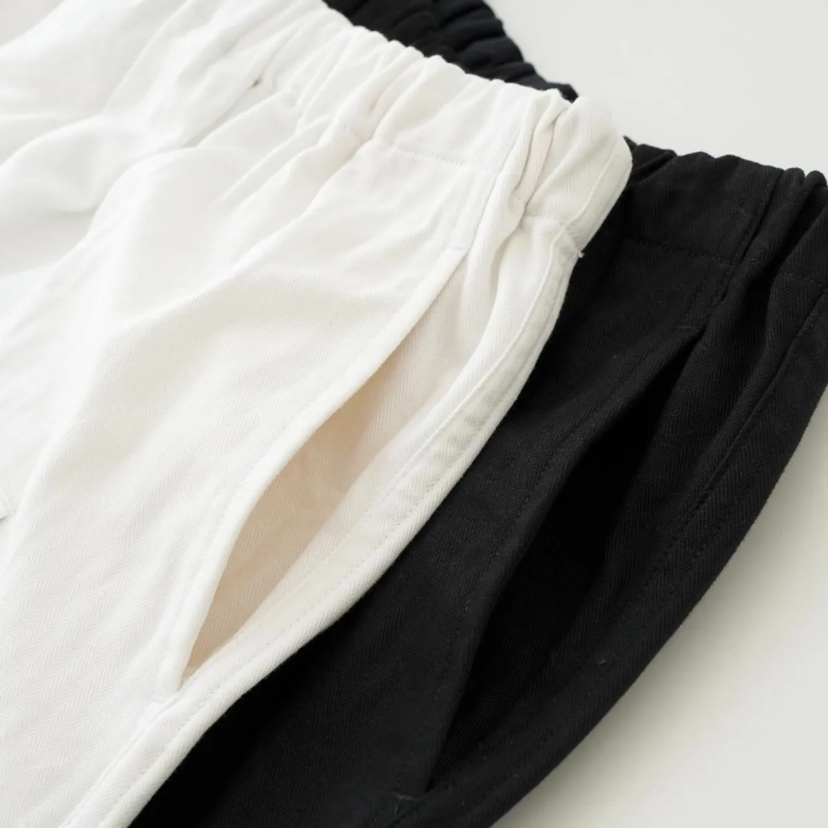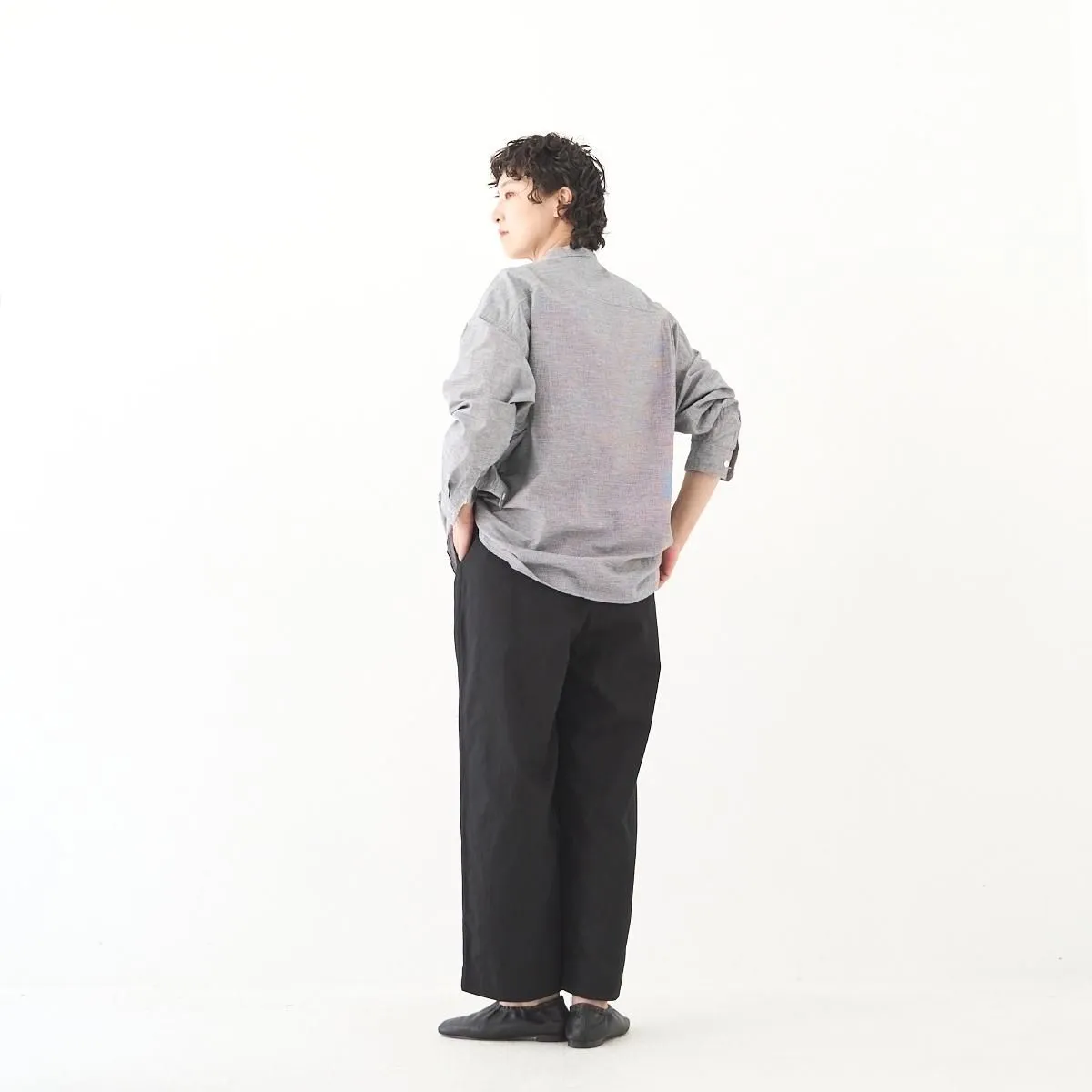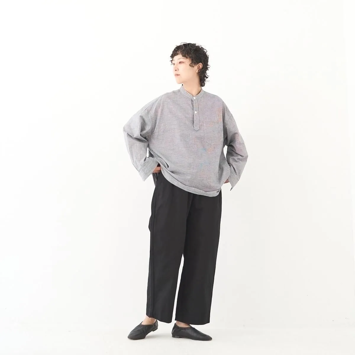 定番のワイドパンツ。前と後ろにそれぞれアクセントとなる小さなポケットがついています。ヘリンボーンの織り模様が入ったコットン素材はハリがありつつも、履き馴染んだような柔らかな風合いがあり、オールシーズンご着用いただけます。 他にない絶妙なシルエットの万能ボトムスは、ゴーシュならではのこだわりが詰まった定番の名作。大人のカジュアルなコーディネートにぜひ取り入れてみては。 「スレン」とは、主に軍服などに用いられる色落ちしにくい染料のこと。この染料で染めたヘリンボーン織りの生地は洗濯を繰り返しても色が長持ちし、美しい発色が保たれるのが特徴です。ゴーシュでは長く人気を博している定番の素材です。(※スレン染色はブラックのみです) 同素材でタイトスカートもございます。合わせてぜひご覧ください。 size:2(one size) ウエスト〜45cm 股上38cm 股下56cm わたり32cm ※サイズ計測の多少の誤差はご了承下さい。 color:ブラック/ホワイト material:コットン100% model:163cm 取り扱い店舗・・・dieci kyutaro店 2F -------------------------------------------------------- ゴーシュ 普遍的な新しさをテーマに、カッティングやテキスタイルにこだわり、シンプルながらこだわりを感じることが出来る、飽きの来ない衣服を生み出すブランド。日常に寄り添う着心地の良さ、凛とした静かな美しさを追求しています。 size_chart