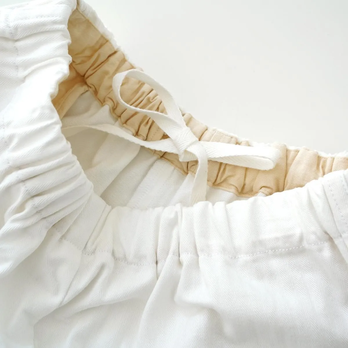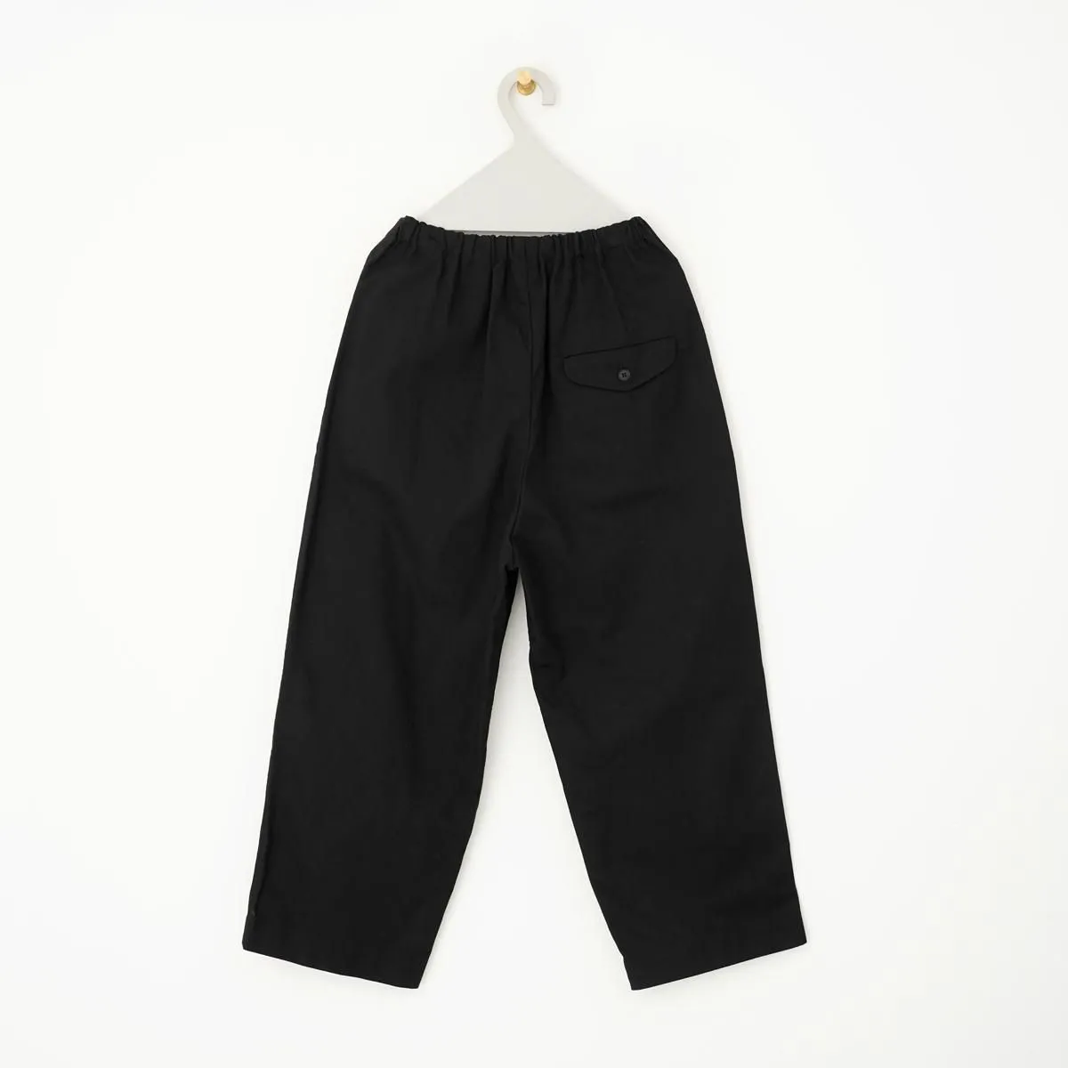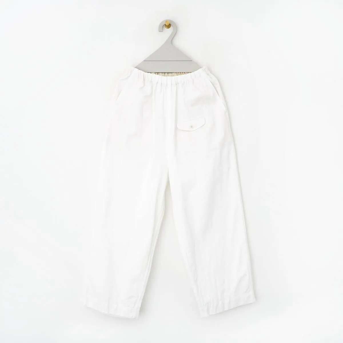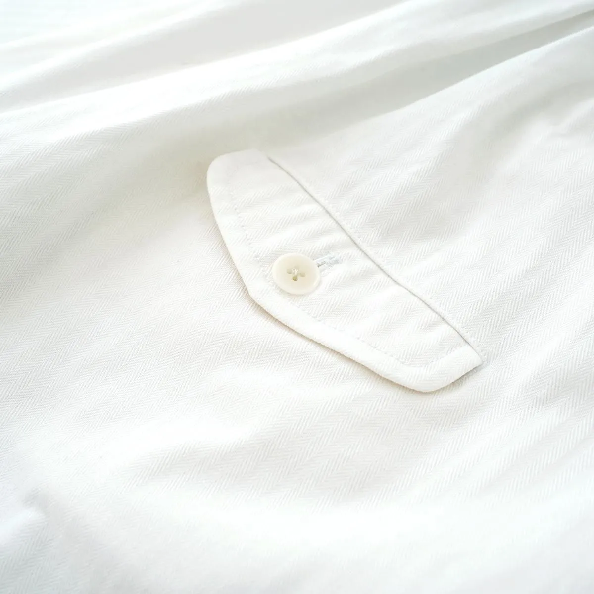 定番のワイドパンツ。前と後ろにそれぞれアクセントとなる小さなポケットがついています。ヘリンボーンの織り模様が入ったコットン素材はハリがありつつも、履き馴染んだような柔らかな風合いがあり、オールシーズンご着用いただけます。 他にない絶妙なシルエットの万能ボトムスは、ゴーシュならではのこだわりが詰まった定番の名作。大人のカジュアルなコーディネートにぜひ取り入れてみては。 「スレン」とは、主に軍服などに用いられる色落ちしにくい染料のこと。この染料で染めたヘリンボーン織りの生地は洗濯を繰り返しても色が長持ちし、美しい発色が保たれるのが特徴です。ゴーシュでは長く人気を博している定番の素材です。(※スレン染色はブラックのみです) 同素材でタイトスカートもございます。合わせてぜひご覧ください。 size:2(one size) ウエスト〜45cm 股上38cm 股下56cm わたり32cm ※サイズ計測の多少の誤差はご了承下さい。 color:ブラック/ホワイト material:コットン100% model:163cm 取り扱い店舗・・・dieci kyutaro店 2F -------------------------------------------------------- ゴーシュ 普遍的な新しさをテーマに、カッティングやテキスタイルにこだわり、シンプルながらこだわりを感じることが出来る、飽きの来ない衣服を生み出すブランド。日常に寄り添う着心地の良さ、凛とした静かな美しさを追求しています。 size_chart
