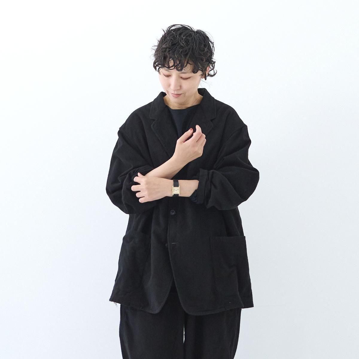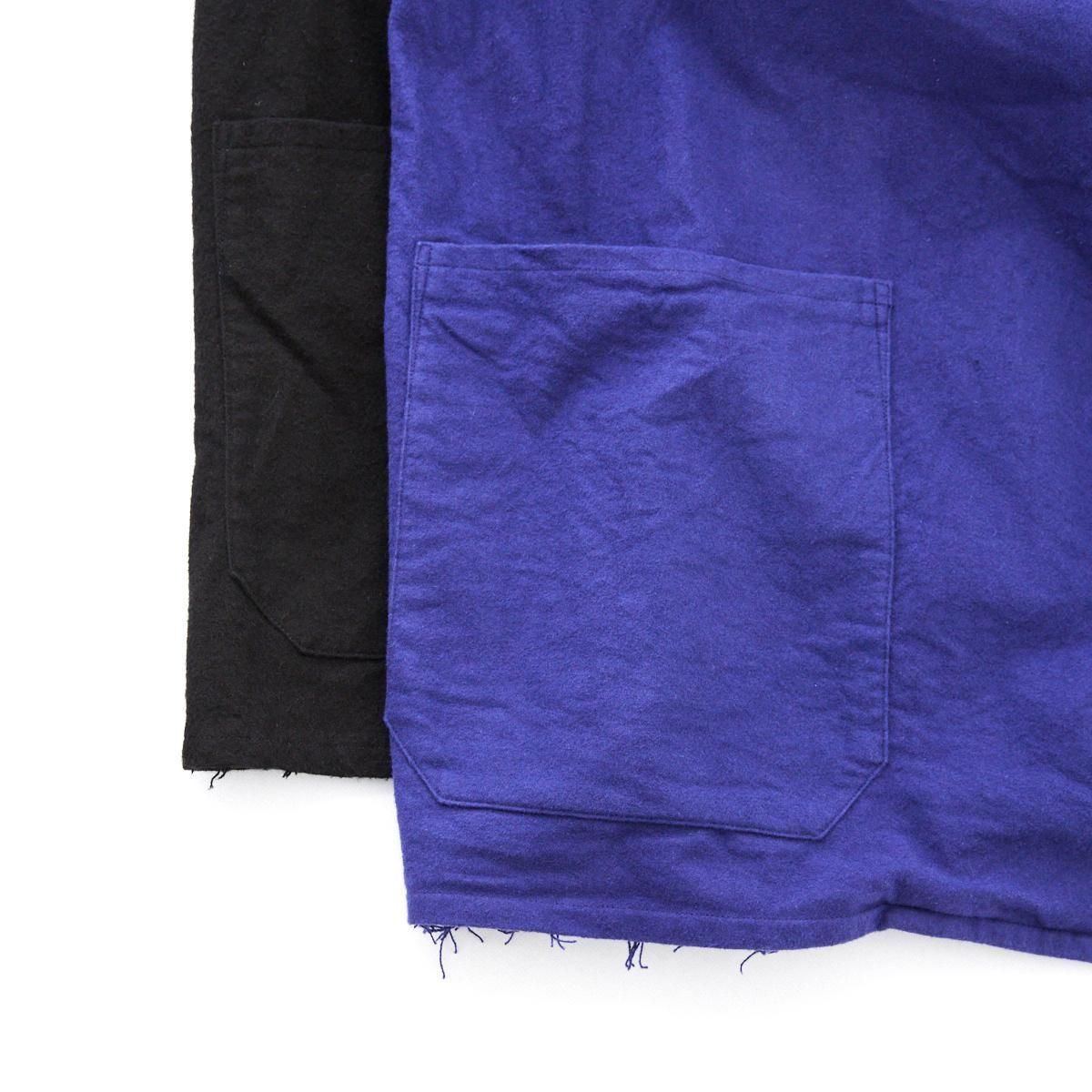 COMOLIは、2011年にデザイナー小森啓二郎が立ち上げたブランド。 全ての洋服の原型は、ある目的の為に作られた物である。 この考えを基に、その時の気分や感覚を取り入れた洋服を提案しています。 2019年9月、南青山に旗艦店をオープン。 少し粗めで乾いた質感のコットンネルのジャケット。 簡易的な制服にあるようなイメージをもとに作られ、裾の処理はあえてラフに仕上げられています。 軽く柔らかで着心地が良く、性別問わず着やすいデザイン、素材感です。 同素材のパンツとセットアップも。 (※ほつれた糸の出る具合には個体差がございます。) この商品は製品加工をしている為、水や汗などで湿った状態、または摩擦により他のものに色移りすることがあります。着用の際はご注意ください。 色落ちしますので、他の物と分けてネットに入れて洗濯してください。 また生地を裁ち切りにしている箇所がある為、ほつれが生じます。 ほつれの長さが気になる場合は無理に引っ張らずにお好みの長さでハサミでカットしてください。 アイロンを掛ける際は、あて布をご使用ください。 25AW size:1,2,3 1:着丈74cm 身幅61cm 肩幅52.5cm 袖丈59cm 2:着丈76.5cm 身幅62cm 肩幅56cm 袖丈62cm 3:着丈79cm 身幅69cm 肩幅62cm 袖丈64cm ※商品には若干の個体差があるため、採寸には誤差がございます。 color:ROYAL BLUE/BLACK material:COTTON100% model:163cm(#1着用) 取扱い店舗…dieci芝川ビル店