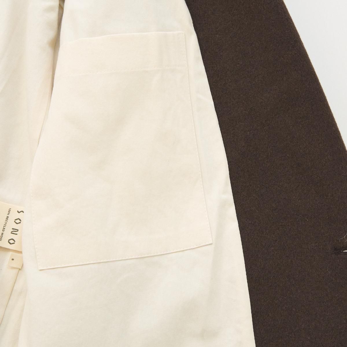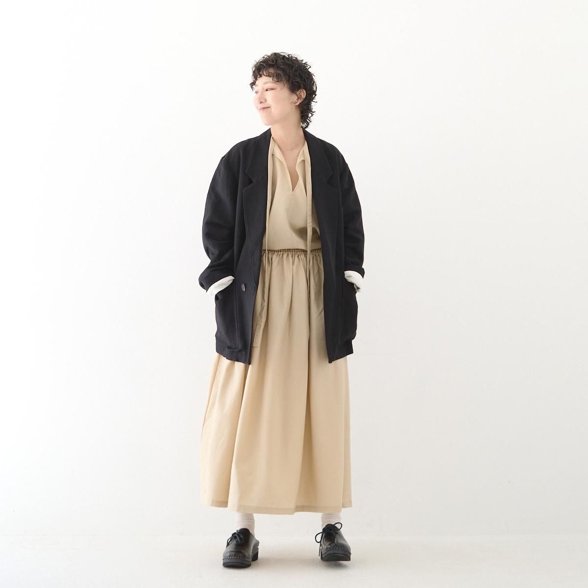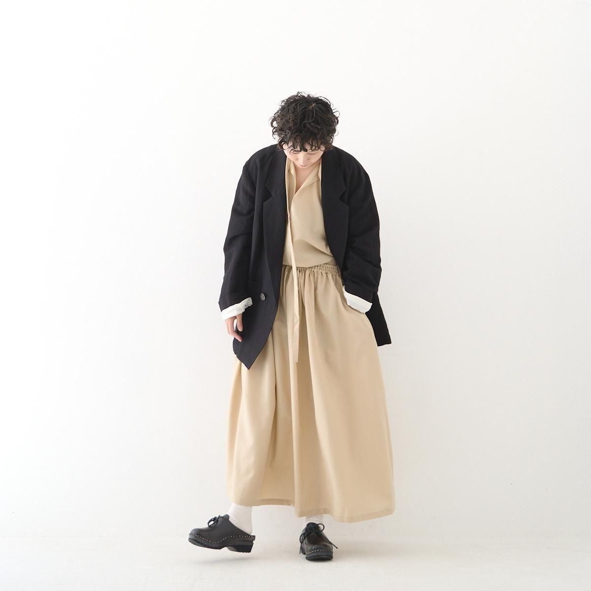 「SONO」はデザイナーStephaie ObergとSimon Homesがロンドンを拠点にするブランドで、2人は「「ザ・ロウ」「クリストフ・ルメール」のデザインに携わりながらキャリアを重ね、その経験から独自の美学や哲学を「SONO」というブランドで表現しています。 フランスやイギリスのアトリエで、服の美しさ、着やすさを追求しながら、熟練の職人の手によって1点1点丁寧な洋服作りを行っています。また、現代社会における役割として、徹底したエコな服作りにもこだわり、全ての素材をオーガニック、化学物質を使わずに収穫されたものだけを使うなど、素材選びにもこだわっています。 シングルブレストのオーバーサイズジャケット。 ブラックはリネン59%,ウールが41%のミックス素材、ブラウンはウール100%です。 性別問わず着やすいジャケット、どちらもとても柔らかく軽い着心地も魅力です。 コットンの総裏地付き。 unsex size:S 着丈75cm 肩幅49cm 身幅56cm 袖丈63cm color:Black(AHR),Earth(AJH) material:(AHR)linen59%,wool41%,(AJH)recycled wool 100% Earth(AJH)ドライクリーニング Black(AHRは手洗い可 Made in London.the UK model:163cm お取り扱い店舗・・・ dieci芝川ビル店