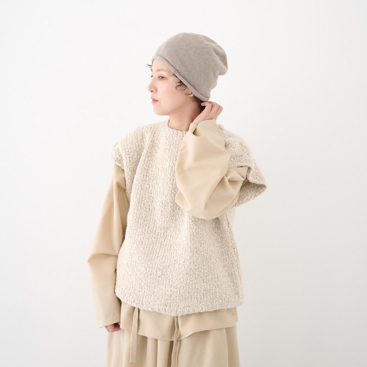 「SONO」はデザイナーStephaie ObergとSimon Homesがロンドンを拠点にするブランドで、2人は「ポールスミス」のクリエイティブディレクターや「ザ・ロウ」「クリストフ・ルメール」のデザインに携わりながらキャリアを重ね、その経験から独自の美学や哲学を「SONO」というブランドで表現しています。 フランスやイギリスのアトリエで、服の美しさ、着やすさを追求しながら、熟練の職人の手によって1点1点丁寧な洋服作りを行っています。また、現代社会における役割として、徹底したエコな服作りにもこだわり、全ての素材をオーガニック、化学物質を使わずに収穫されたものだけを使うなど、素材選びにもこだわっています。 柔らかなウール素材のニット帽。 アウターやニットなどとの色合わせで楽しんでいただけます。 size:one 総丈 約23cm 頭周り 約60cm (ニットの為、個体差がございます。) color:Ash,Smoke material: superfine wool 100% ドライクリーニングもしくは手洗い Made in the UK model:163cm(Ash着用) お取り扱い店舗・・・ dieci芝川ビル店