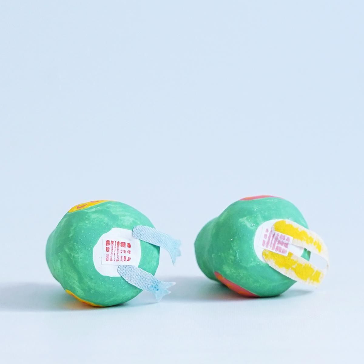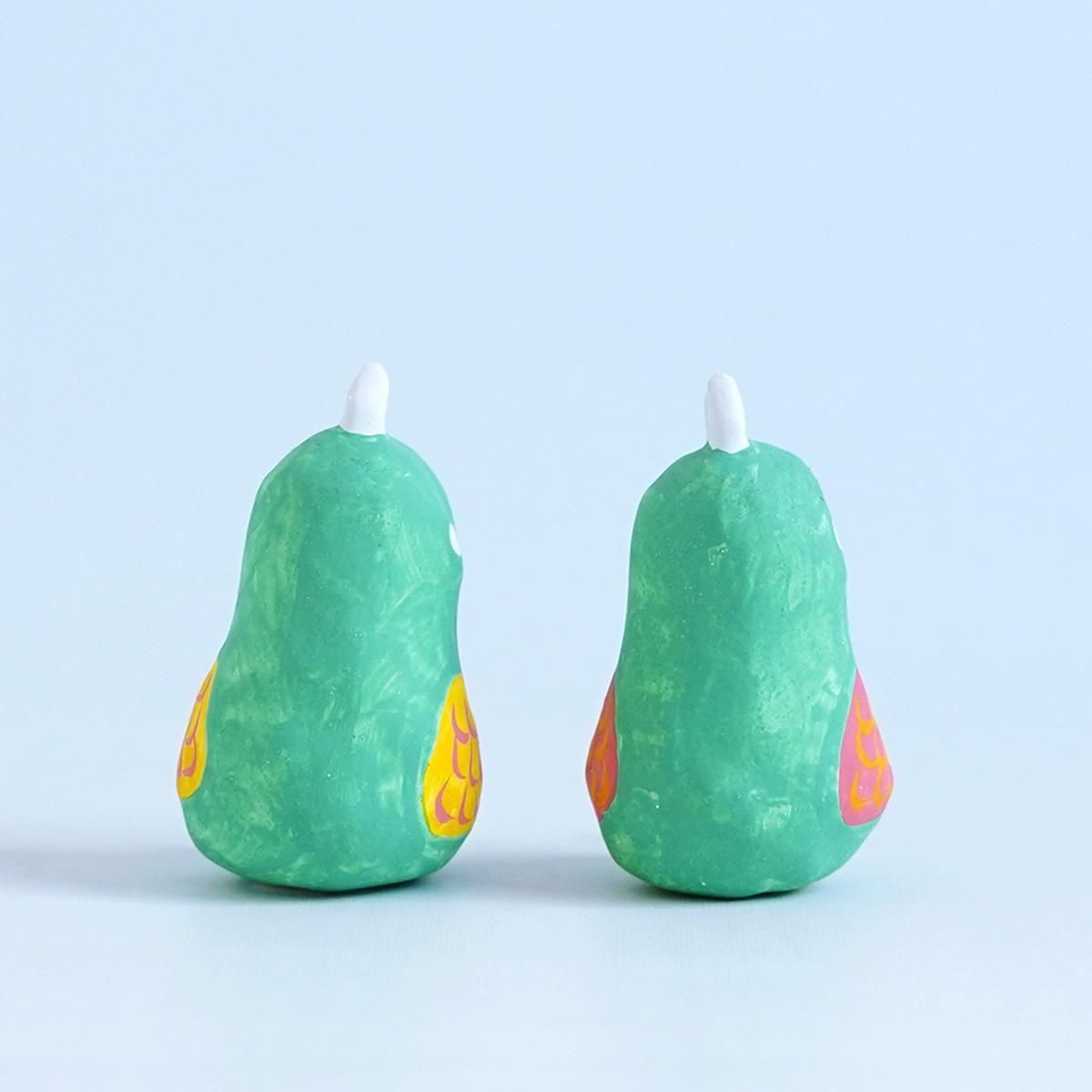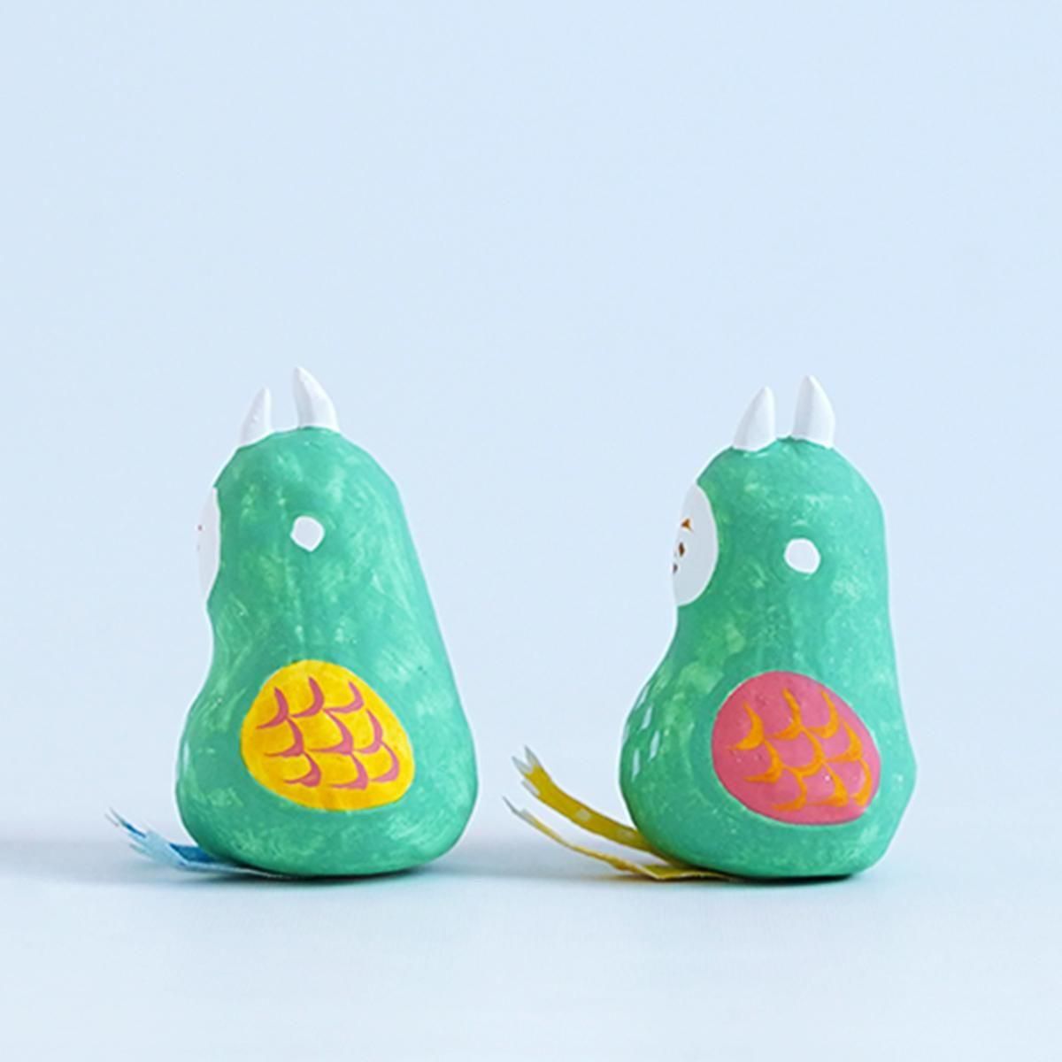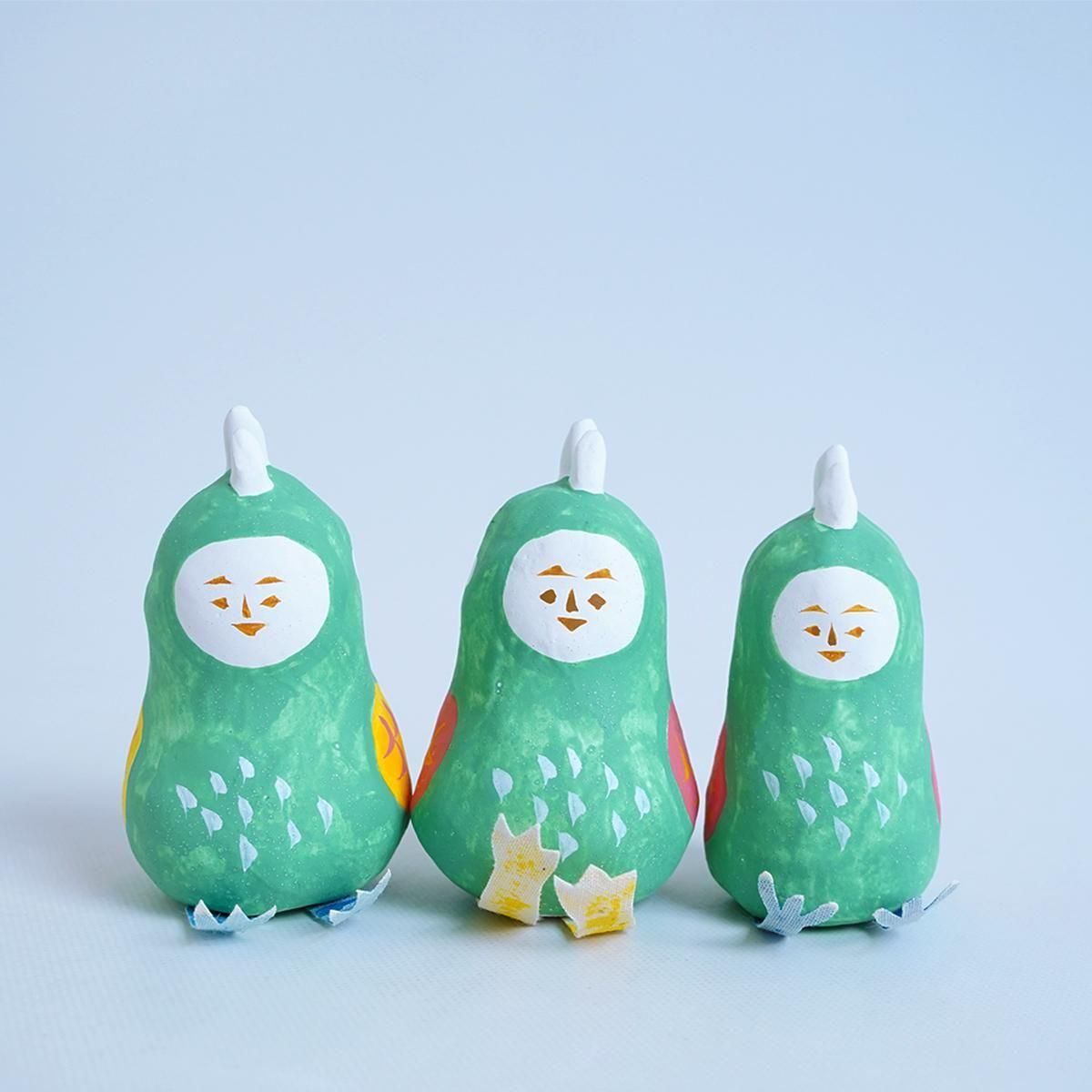 沖縄の豊永盛人さんが作る琉球張り子。 フォルムや表情がなんとも言えない愛おしさが溢れる鳥彦です。 ロードワークスさんらしい人気の張り子となります。 サイズや色の異なる鳥彦を並べて兄弟のように愛でたくなります。 作家:豊永盛人(Roadworks) size:約W4.5cmxD4.5cmxH7.5cm color:(お写真1枚目右から順に)赤、ピンク、黄、白、水色、深緑 *1点1点手作りのため、サイズや色、形や柄など微妙に異なります。 ※張り子玩具は水や湿気に大変弱く、衝撃にも弱いです。 濡れた手で触ると色が落ちることもございます。お取り扱いにはご注意ください。 取扱店舗…dieci天神橋店